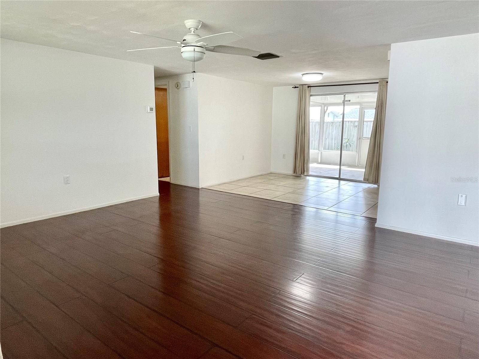 Step inside and enjoy the spacious open concept layout filled with natural light. The kitchen boasts plenty of cabinetry, stainless steel appliances, and a breakfast bar. The large bonus room could easily be converted to a third bedroom. Laminate wood and ceramic tile throughout- no carpet! The large lanai and fully fenced backyard are perfect for entertaining, pets, or simply creating your own private retreat. Say goodbye to your electricity bill with solar that was added in 2018. New roof was installed 2020 and AC 2022. Close to shopping, dining, and more! Don't miss your opportunity to call this one home!