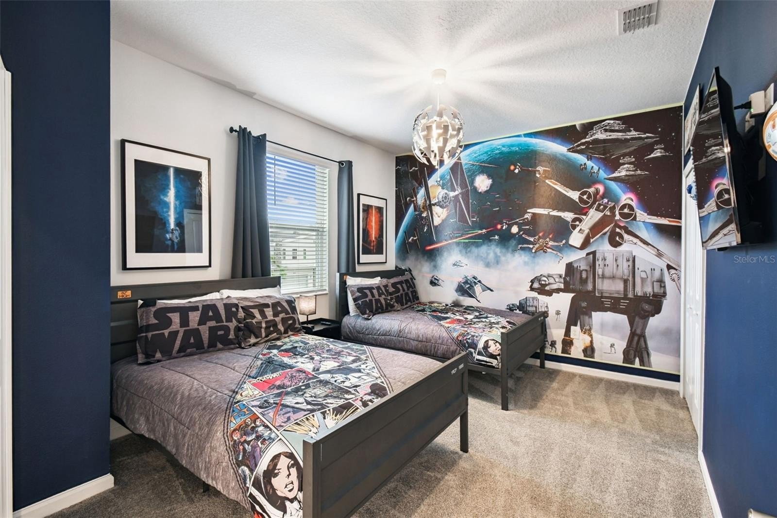 This fully furnished turnkey 3-bedroom, 2-bathroom condo with attached 1-car garage is zoned for short-term rentals or primary residence, making it the perfect turnkey investment or move-in ready home. The open floor plan features a spacious living room, dining area, and large kitchen, plus two beautifully themed bedrooms—Mickey Mouse and Star Wars—that guests will love.