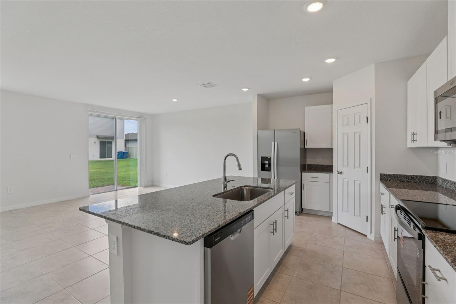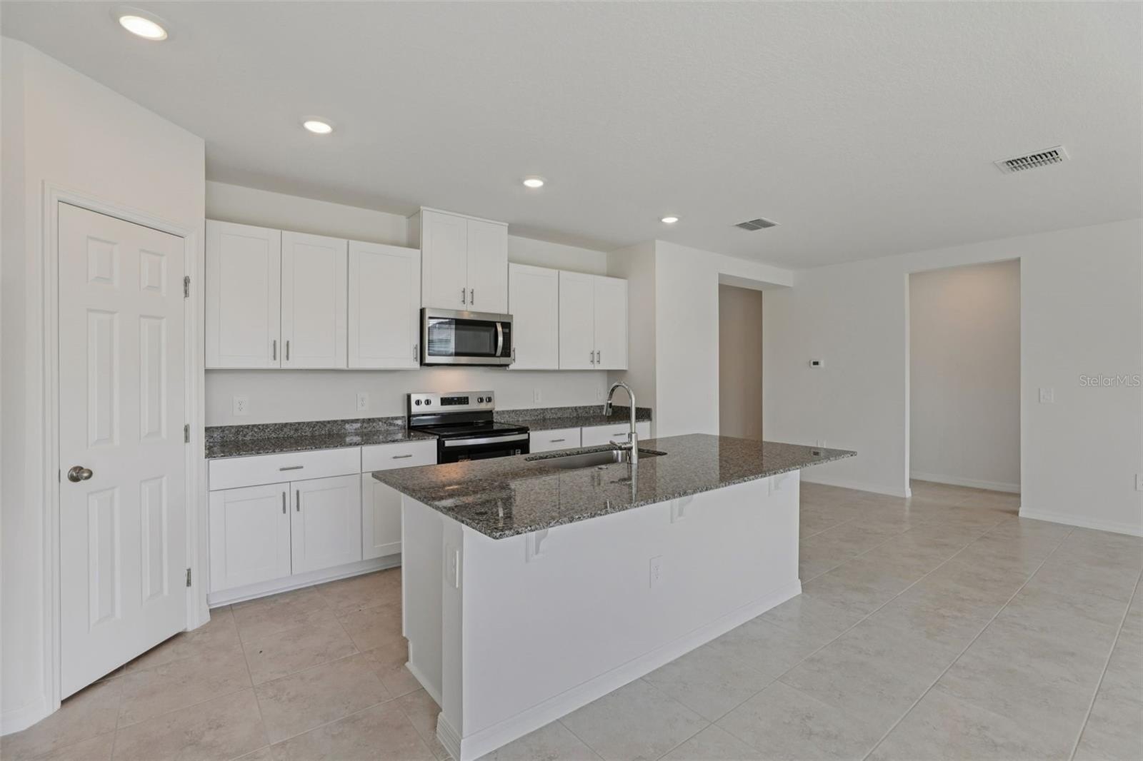 • Kitchen island with counter-height bar seating, open to the dining area and spacious Great Room