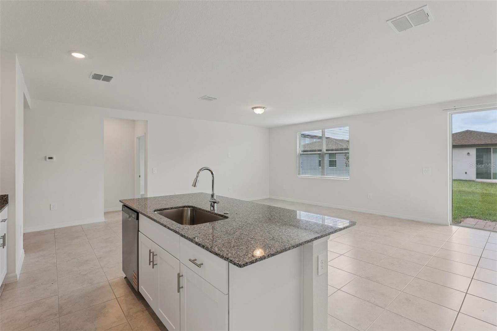 • Kitchen sink view overlooking the backyard and living space—ideal for entertaining