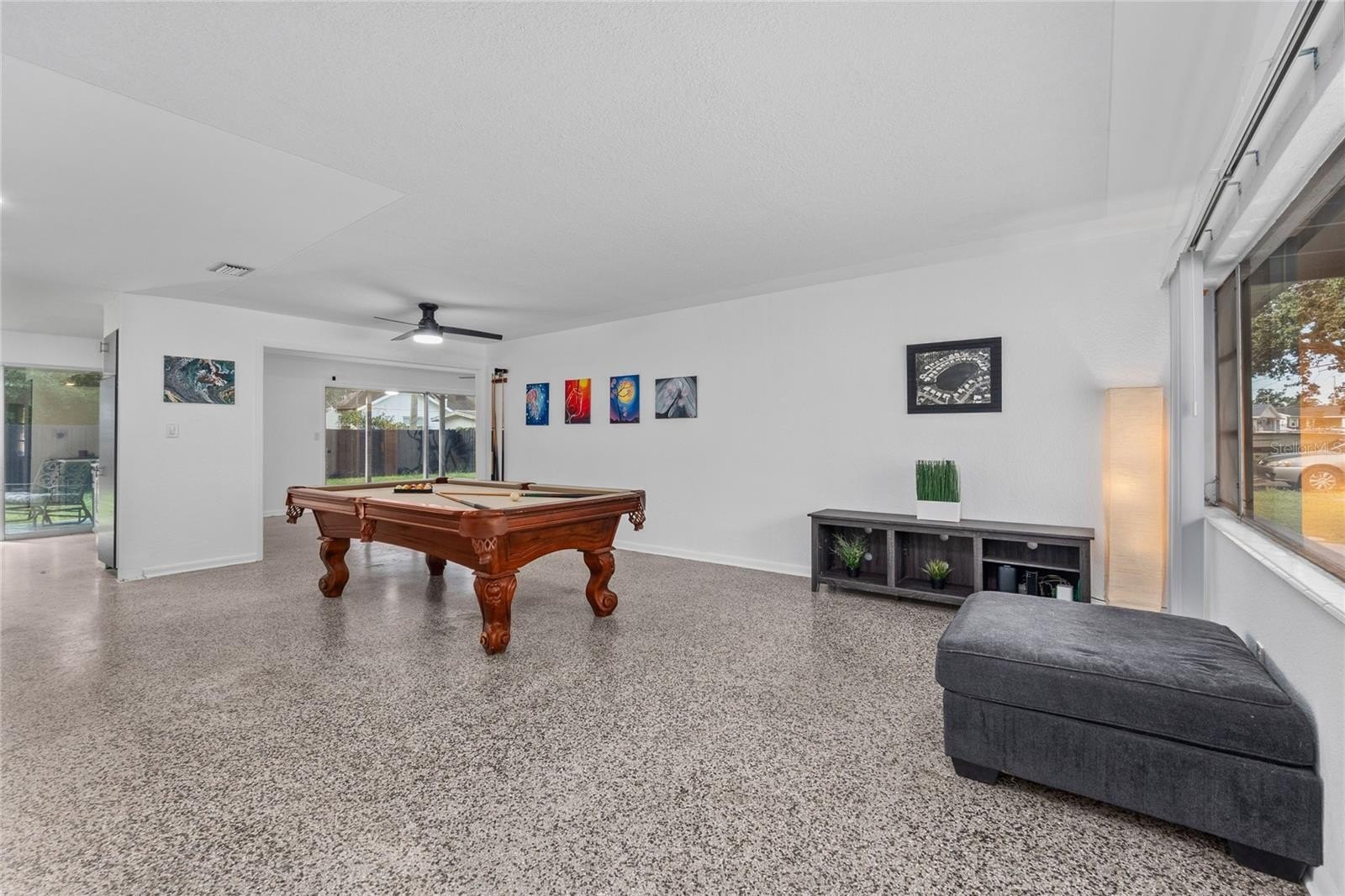 Inside, you'll find an open-concept layout with a spacious living room and a cozy family room complete with a wood-burning fireplace—perfect for relaxing or entertaining. The oversized garage offers ample storage and workspace.