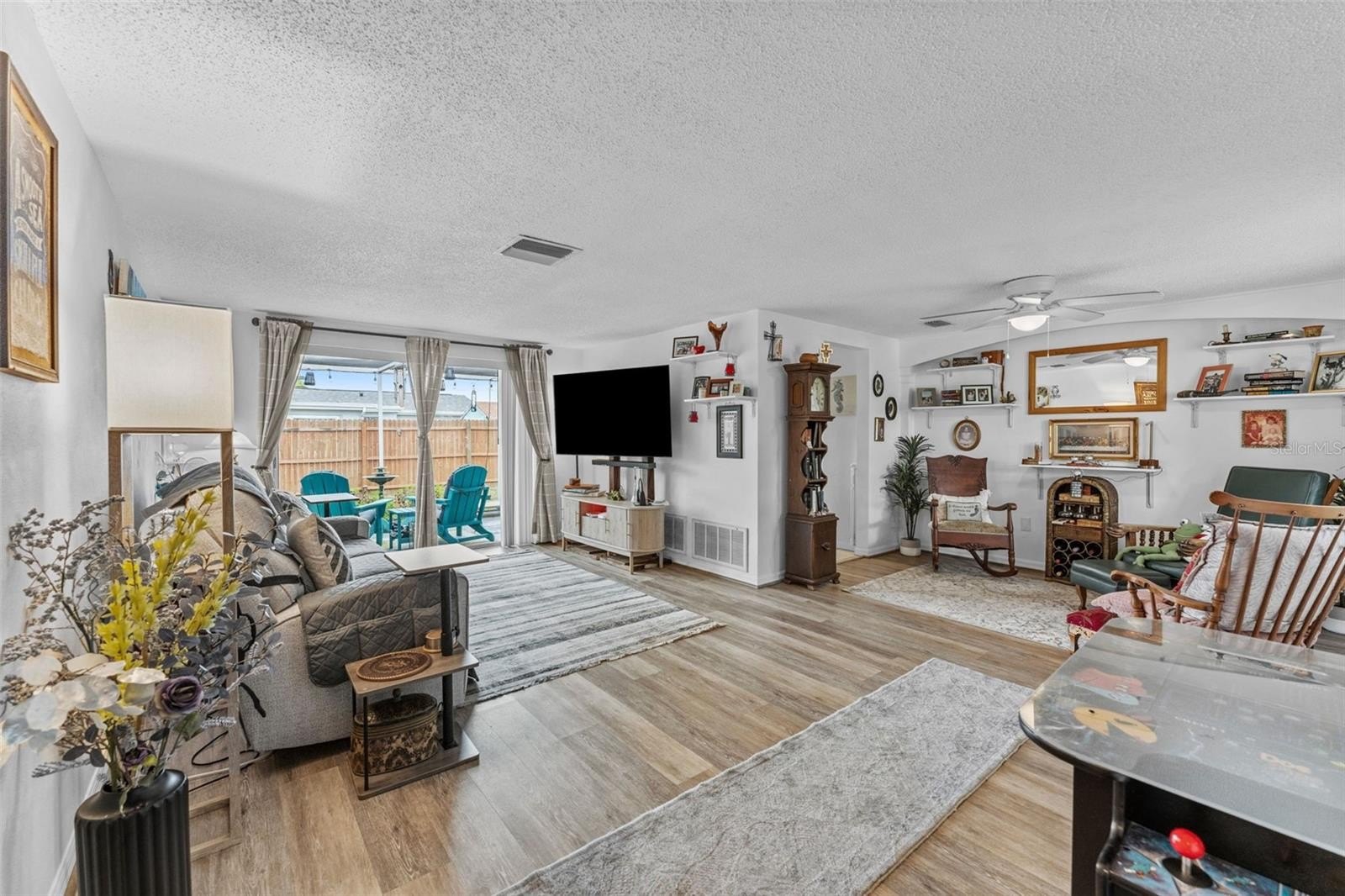 Assumable mortgage at 3.75%, low down payment! This cozy, bright, and quiet home is move-in ready and offers an exceptional lifestyle in an established neighborhood just minutes from the Gulf, downtown New Port Richey, and Tarpon Springs Sponge Docks. The updated eat-in kitchen features granite countertops, stainless steel appliances, and plenty of cabinet space. Spacious bedrooms with large walk-in closets easily fit king-sized beds, and the thoughtful layout places bedrooms away from living areas for privacy. Enjoy Florida living with a huge screened-in back patio with privacy fencing, café lights, a built-in fan, and space for dining, lounging, and barbecuing. Access the patio from both the kitchen and living room and enjoy views of the fully fenced backyard, complete with a dog run, landscaped flower beds, and a backyard fire ring. The front patio is perfect for morning coffee or evening relaxation. Recent updates include a new drainage system, reglazed hall bathtub, storm doors, gutter filters, new water heater, landscaped flower beds, and a transferrable home warranty through June 2026. This home offers abundant storage, including walk-in closets, a kitchen pantry, and an oversized garage. Situated higher than much of coastal New Port Richey, the property offers peace of mind during storm season and is surrounded by wildlife and wetlands. With easy access to beaches, dining, and community amenities, this home blends comfort, charm, and convenience.