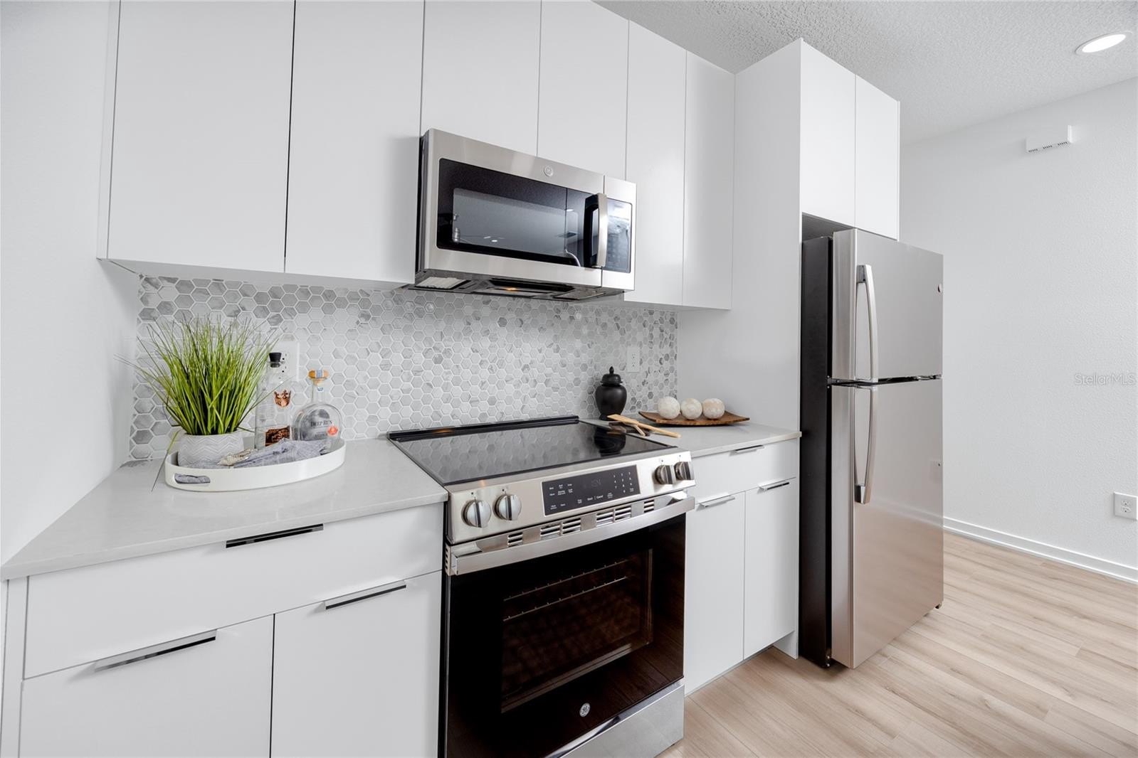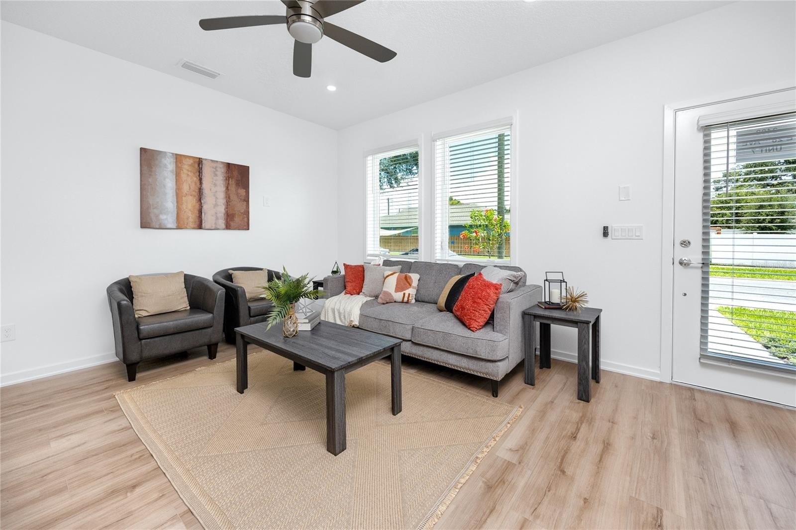 One or more photo(s) has been virtually staged. Ready to move in today! Experience modern elegance and unbeatable urban convenience in this brand-new, thoughtfully designed townhome. Offering 3 spacious bedrooms and 3 stylish bathrooms, this home is perfectly located just moments from downtown Tampa. The gourmet kitchen is a true showstopper, boasting custom flat-panel cabinetry, gleaming quartz countertops, stainless steel appliances, designer tile backsplash, and a chic breakfast bar—perfect for culinary adventures and effortless entertaining. Looking for flexibility? The downstairs bedroom transforms easily into a home office, creative space, or cozy retreat, while both upstairs bedrooms come with private en-suite baths for ultimate comfort. Step outside and unwind on your private fenced-in patio, just off the back door—the perfect spot to enjoy morning coffee or relax after a long day. Designed with sustainability at heart, this eco-friendly, green-certified home helps lower utility costs while promoting a smart, energy-efficient lifestyle. Plus, enjoy peace of mind with a 2-10 builder warranty, ensuring lasting quality. Minutes from Tamps's best attractions, including Y'bor, Armature Works, Ulele Restaurant, Water Works Park, Straz Performing Arts Center, Museum of Art, Glazer Museum, Curtis Hixon Waterfront Park, and a vibrant selection of restaurants and bars. Plus, enjoy quick access to the Selmon Expressway, I-275, and I-4.