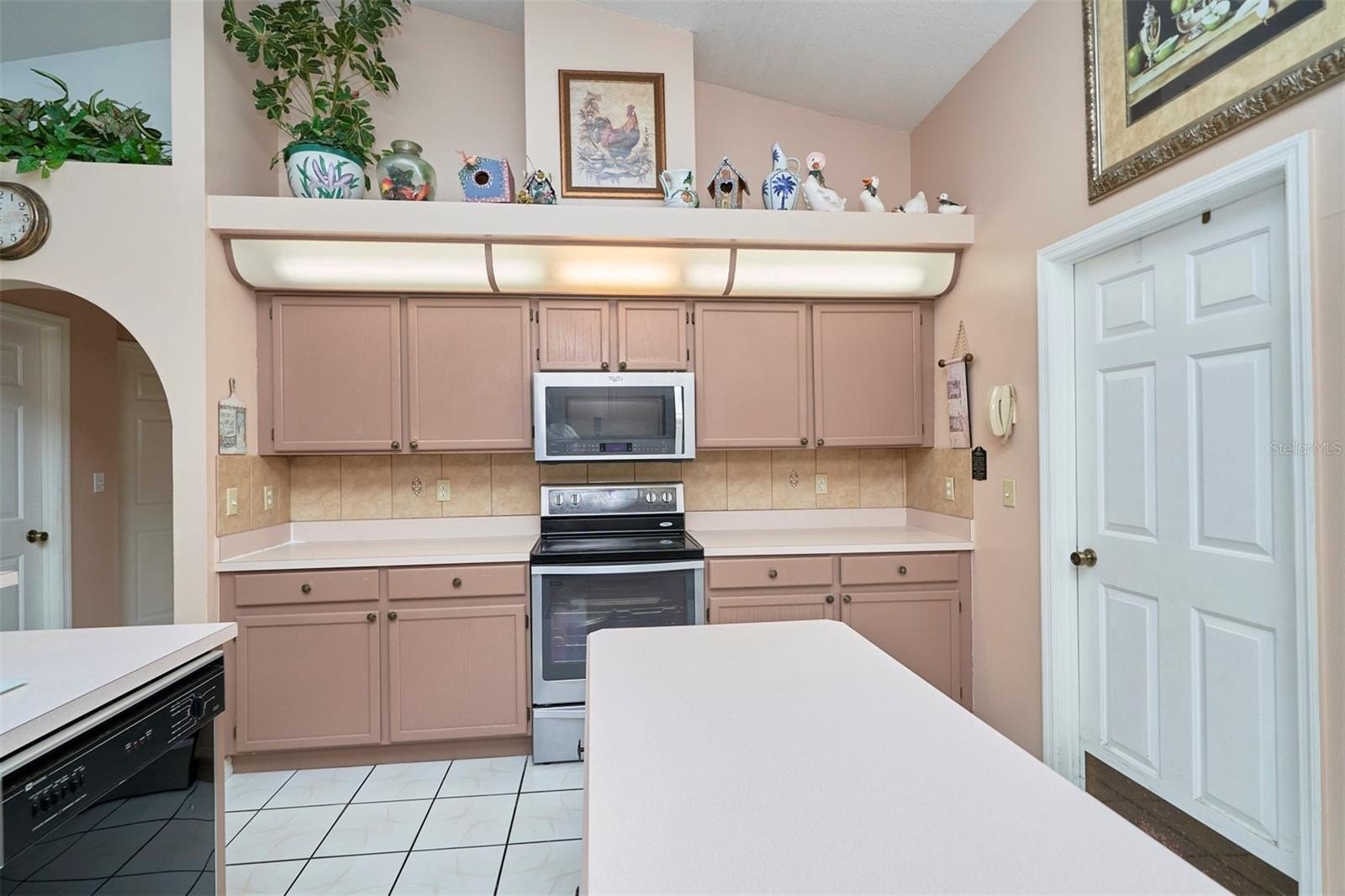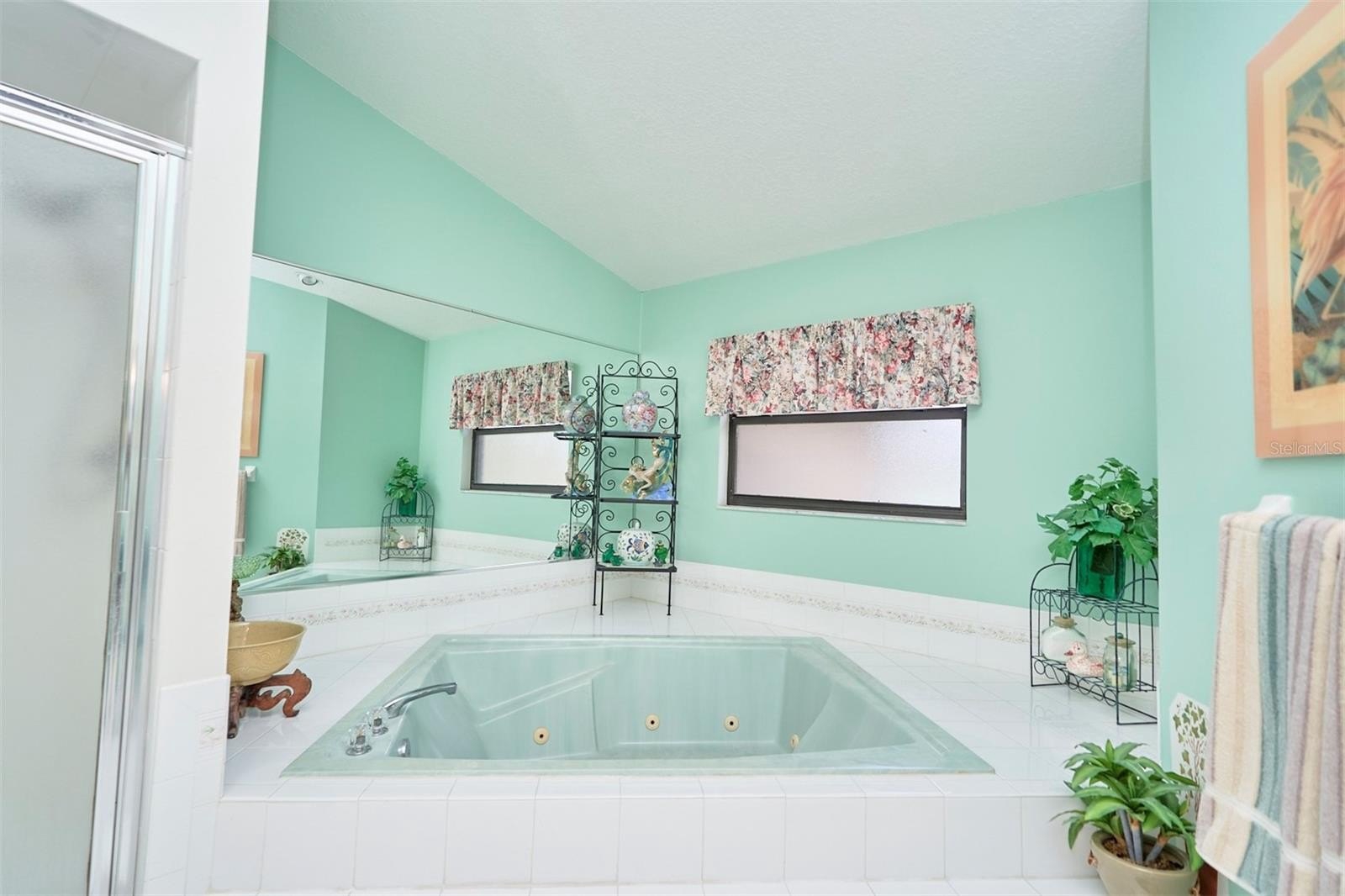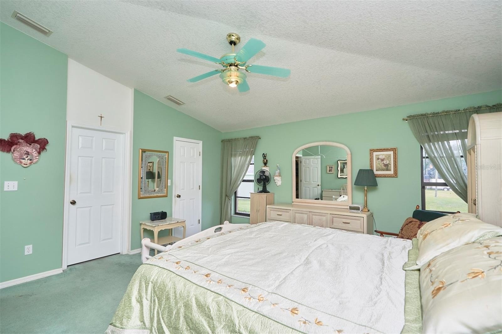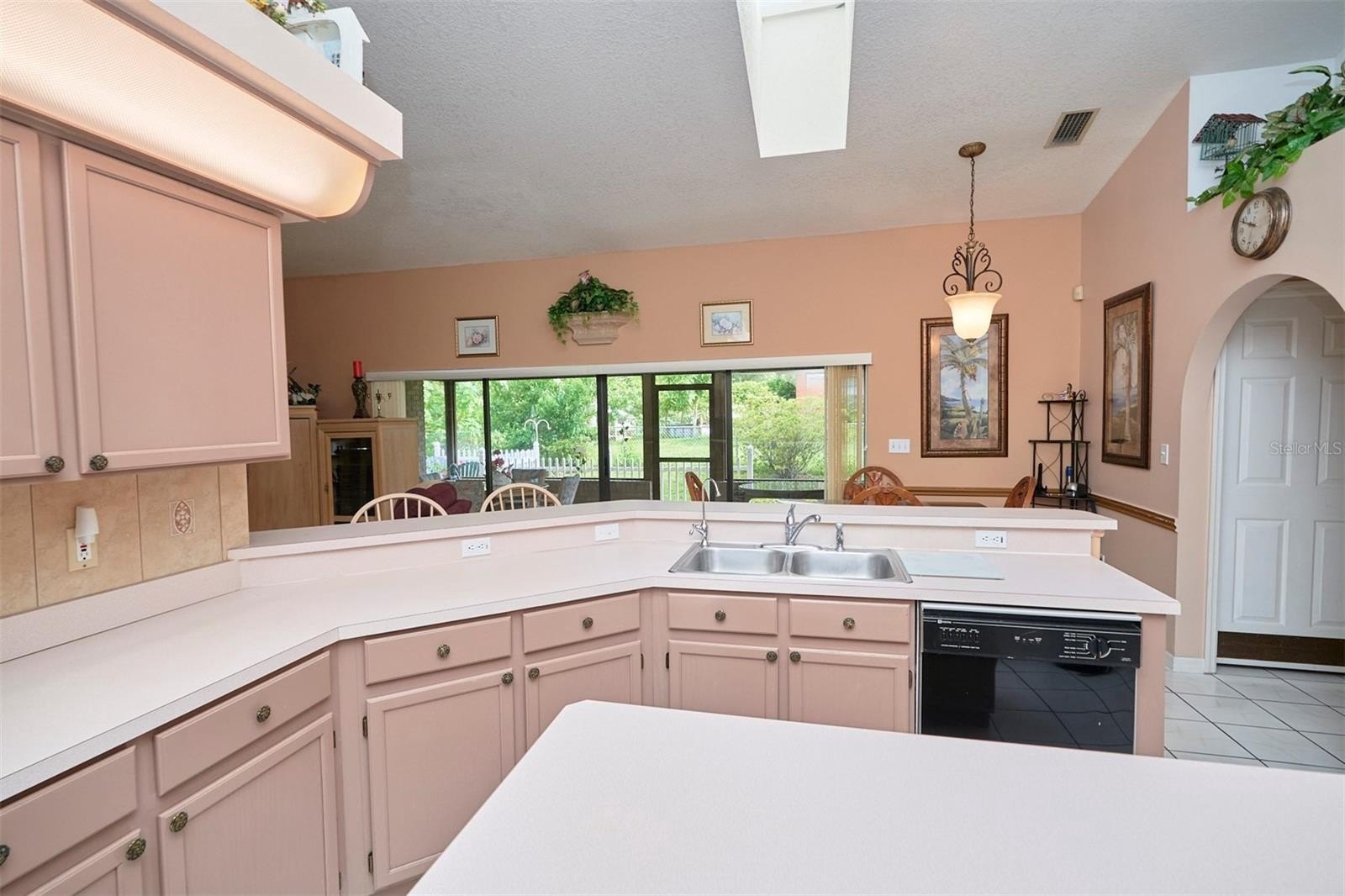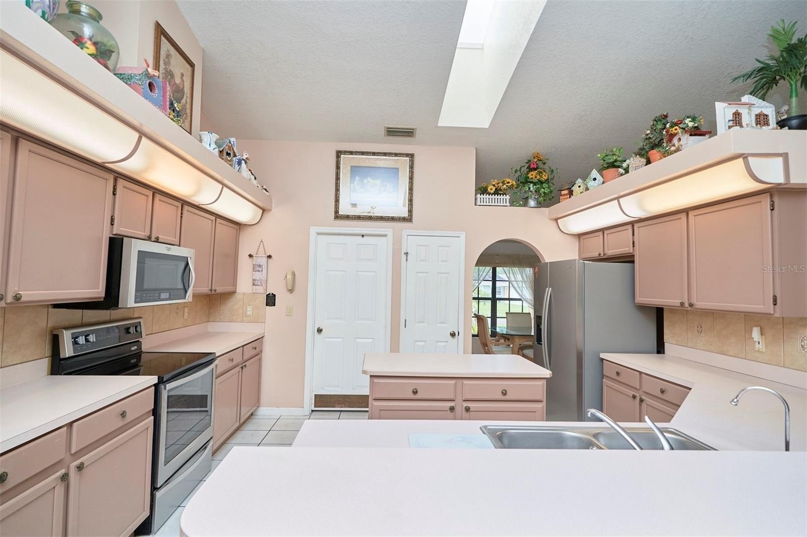 Skylights and vaulted ceilings create a light-filled and airy environment. The split layout offers privacy, and the spacious master suite includes a large walk-in closet and a spa-like bathroom with a soaking tub and separate shower. The second bath is wheelchair accessible, adding thoughtful functionality for guests or multigenerational living.