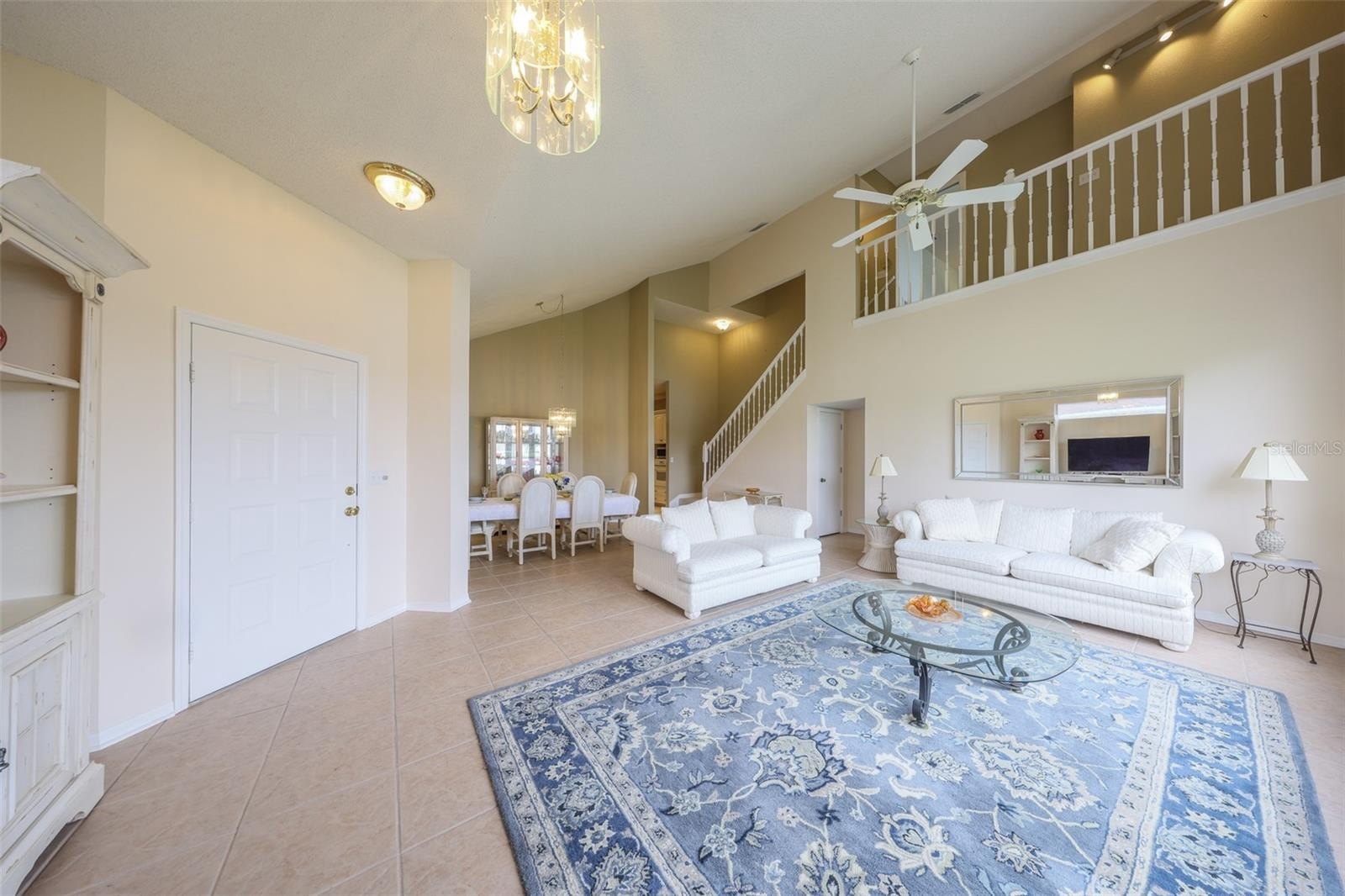 Upstairs, a private guest suite offers a walk-in closet, a full bath with tub and shower, and access to a newly screened balcony overlooking the lake—ideal for reading, relaxing, or enjoying morning coffee. The air-conditioned and enclosed lanai with sliding windows extends the living space year-round, featuring tile flooring and tranquil water views.