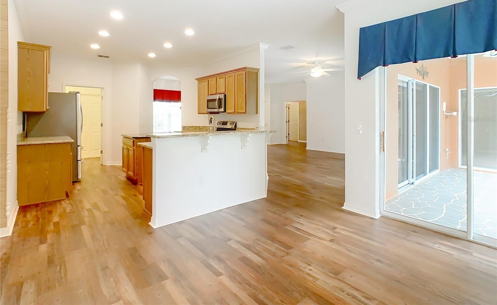 HUGE List Price REDUCTION on this Carnegie Model located on a CORNER Lot in the Terra Vista subdivision. Check out two views from the Front Porch to include a POND View and the GOLF COURSE View. This home includes two bedrooms, two baths, a Florida/Flex room, BREAKFAST Nook, Phantom Screen at the front door, a Front PORCH, a LARGER GARAGE, HURRICANE Shutters, ROOF was replaced in 2021, HVAC was replaced in 2017, and CROWN MOLDING. Observe Vinyl Plank Flooring throughout the home with Carpet in the two bedrooms and Florida Room. Design for comfort, it features a SPACIOUS Open-Concept, great room, dining area, and a functional KITCHEN. Step into the extended screened LANAI and relax after a long day. The KITCHEN features GRANITE counters, a BAR, NEWER Appliances, Cam lights, and an ISLAND. Check out the Primary BEDROOM with a "Bump Out", two WALK-IN Closets, a TUB in the Primary BATHROOM, and DUAL sinks. The Florida Room can be used as a Flex Room, DEN, Office, or TV Room. Included in the sale is the Washer and Dryer. Solivita is an active adult 55+ community located in Kissimmee, Florida. It is approximately 50 minutes from Disney World & the Orlando International Airport. Solivita has a total of 5,470 homes. Approximately 10,000 - 11,000 people live in Solivita during the winter while approximately 7,500 live in Solivita during the summer. Enjoy your active years in this piece of paradise. Solivita's amenities include: - a manicured SOFTBALL diamond & field - 36 holes of CHAMPIONSHIP GOLF that can be played by joining the Stonegate Golf Club or paying as you go - 2 STATE of the Art AMENITY centers with updated exercise equipment, yoga studio & meeting rooms - 3 restaurants - 14 HEATED POOLS - 17 PICKLEBALL courts - 9 TENNIS courts - 4 BOCCE BALL courts - 4 SHUFFLEBOARD courts - 3 HORSESHOE pits - a BILLIARDS room - miles of bike paths - 2 DOG PARKS (Small & Large Dogs) - Corn Hole - Tot Lot PLAYGROUND - COMMUNITY GARDEN - over 250 resident clubs. The HOA: - maintains the LANDSCAPING & IRRIGATION systems in the common areas as well as at individual homesites - maintains the roads throughout the community - PROVIDES SECURITY with gate guards and mobile patrols including the Polk County Sheriff - allows AUTOMATED GATE ACCESS for residents via license plate readers - provides residents with Fiber Optic Internet & TV service.***Poinciana Lakes Plaza is a MAJOR NEW SHOPPING CENTER that opened directly across from the Solivita Main Gate in Summer of 2024. It features Sprouts Grocery, TJ MAXX, Ross, Burlington, Rack Room Shoes, 5 Below, Ulta, Outback, First Watch, 5 Guys, Urgent Care, Dentist, TD Bank, Petco & Hair Cuttery PLUS MORE TO COME.***