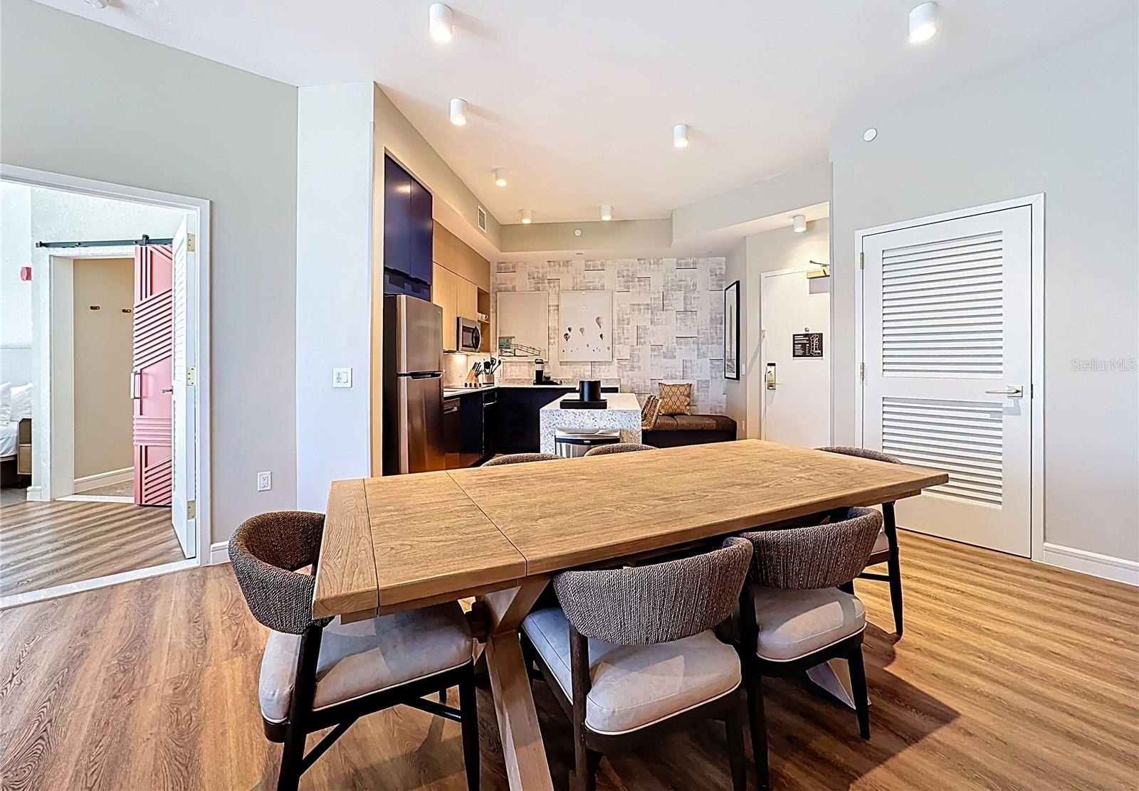 Step inside to discover a bright, open-concept living space designed for comfort and convenience. The condo features a spacious living and dining area, a kitchenette equipped with a refrigerator, microwave, sink, and ample cabinetry, and two well-appointed bedrooms, each paired with a modern bathroom featuring sleek finishes and a walk-in shower. A private balcony provides the perfect spot to relax and enjoy the Florida sunshine.
