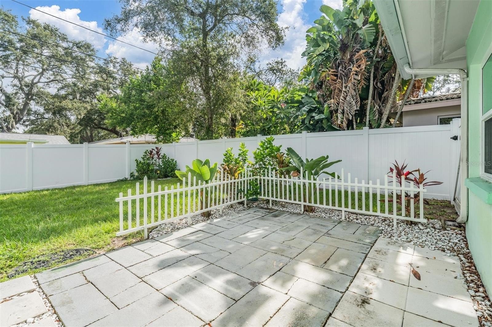 Enjoy outdoor living on the renovated front patio with a ceiling fan, or unwind in the private backyard enclosed by a white vinyl privacy fence. It’s the perfect space for relaxing or entertaining.