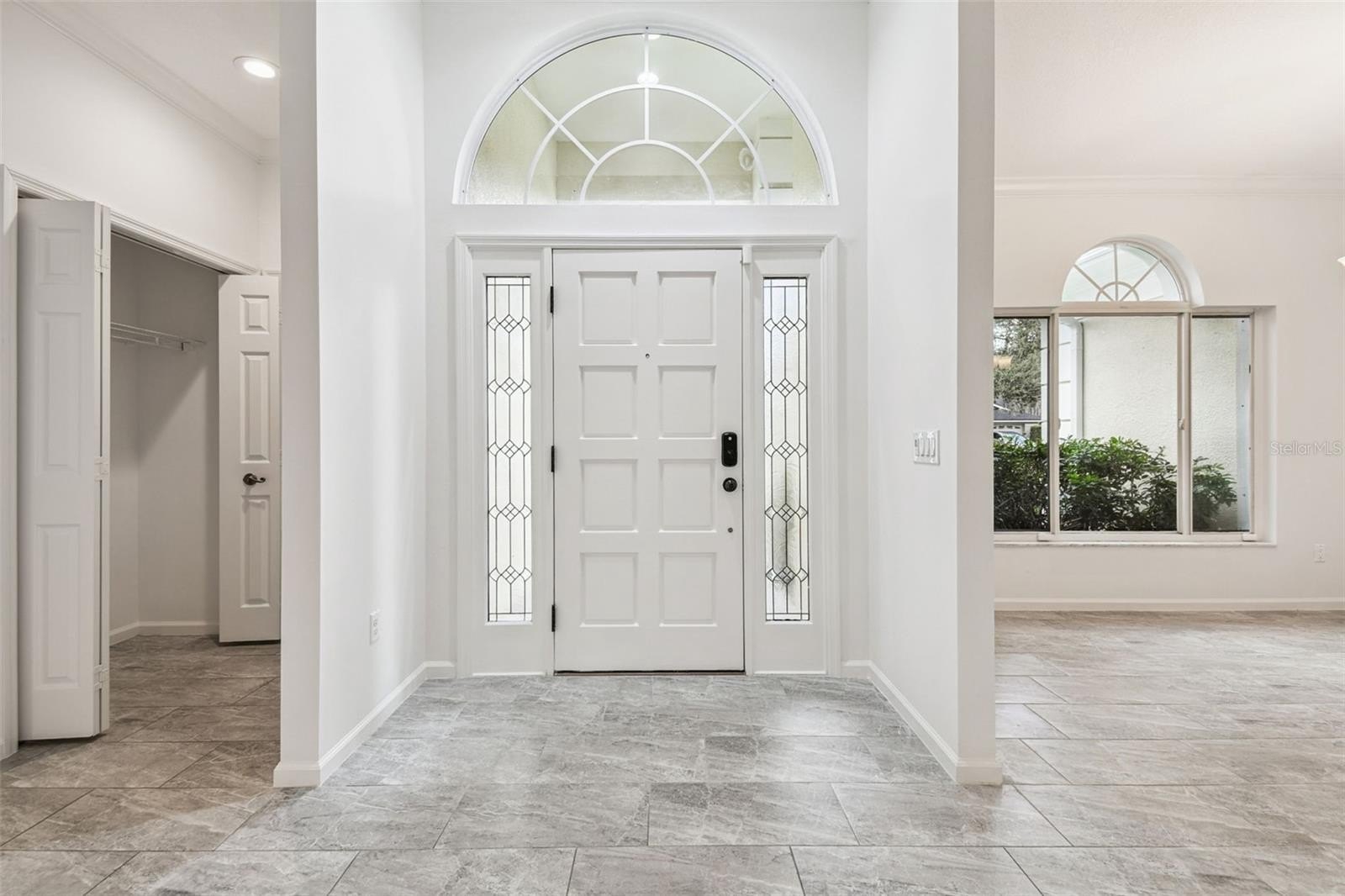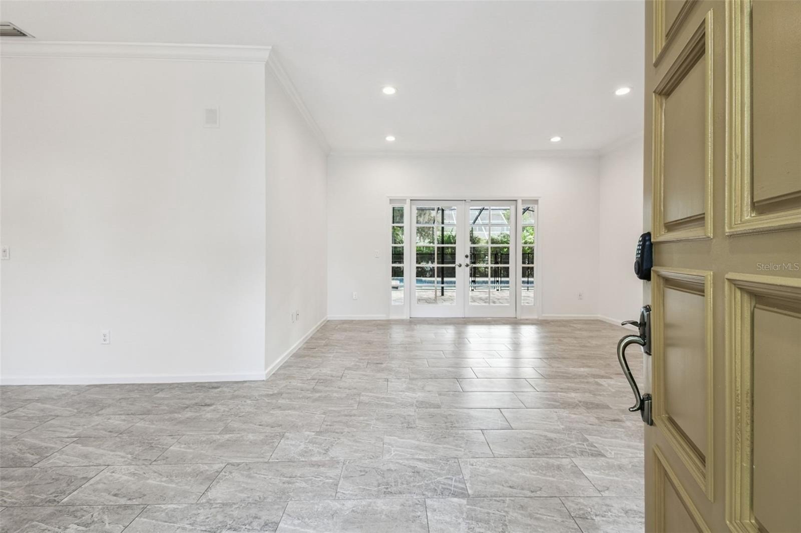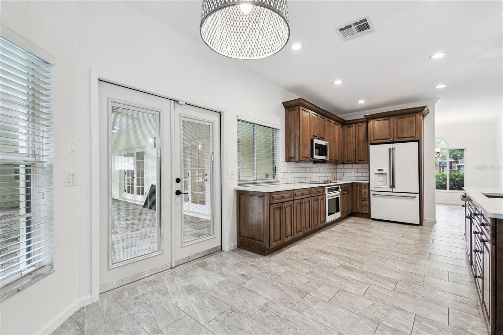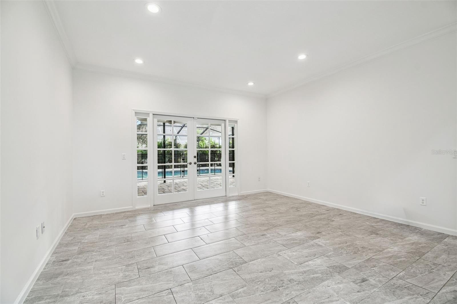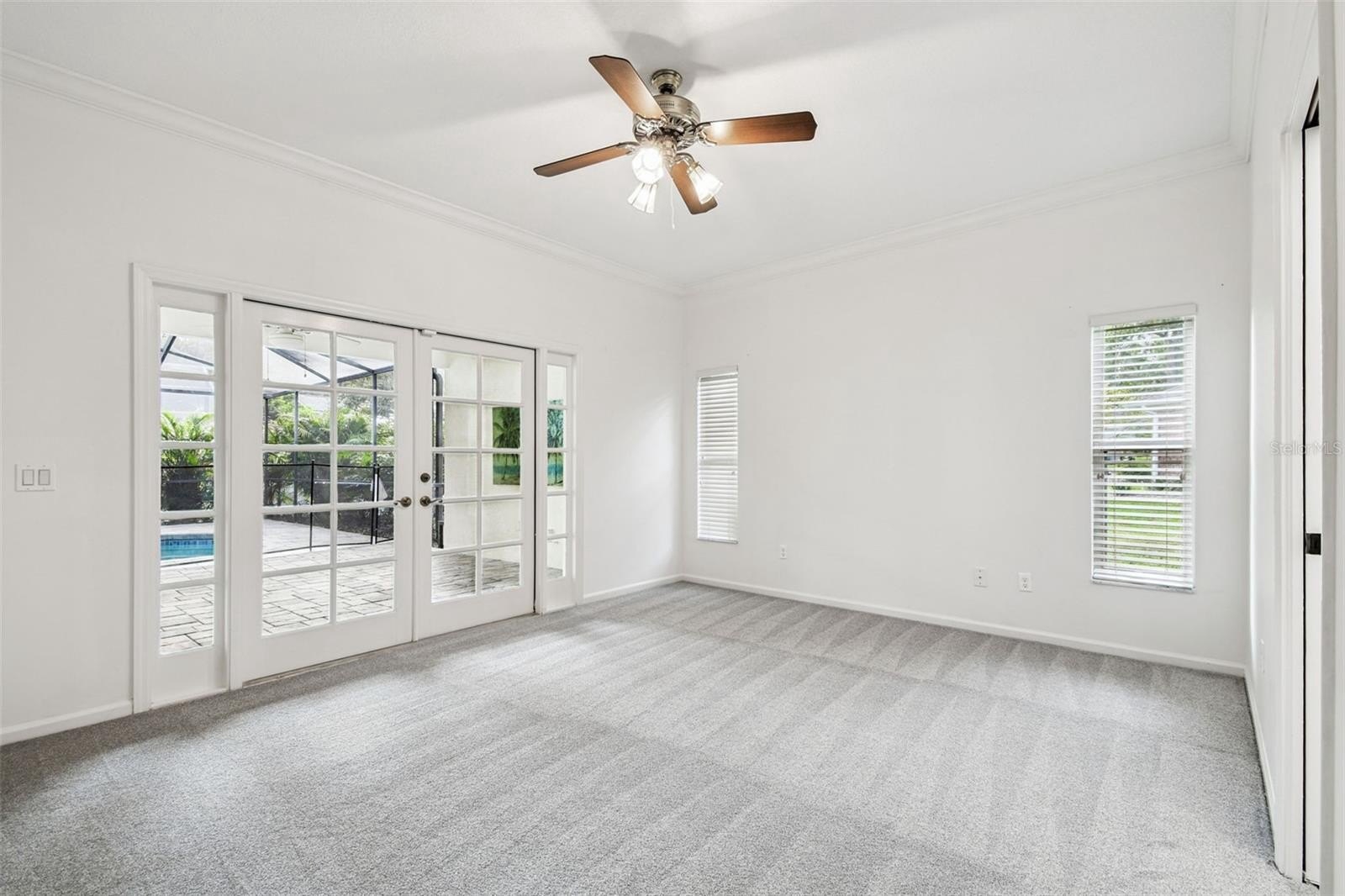 The primary suite boasts a spacious walk-in closet and french doors leading out to the backyard retreat with a sparkling screened-in pool, complete with new heater, and paver deck—perfect for relaxing or hosting family and friends.