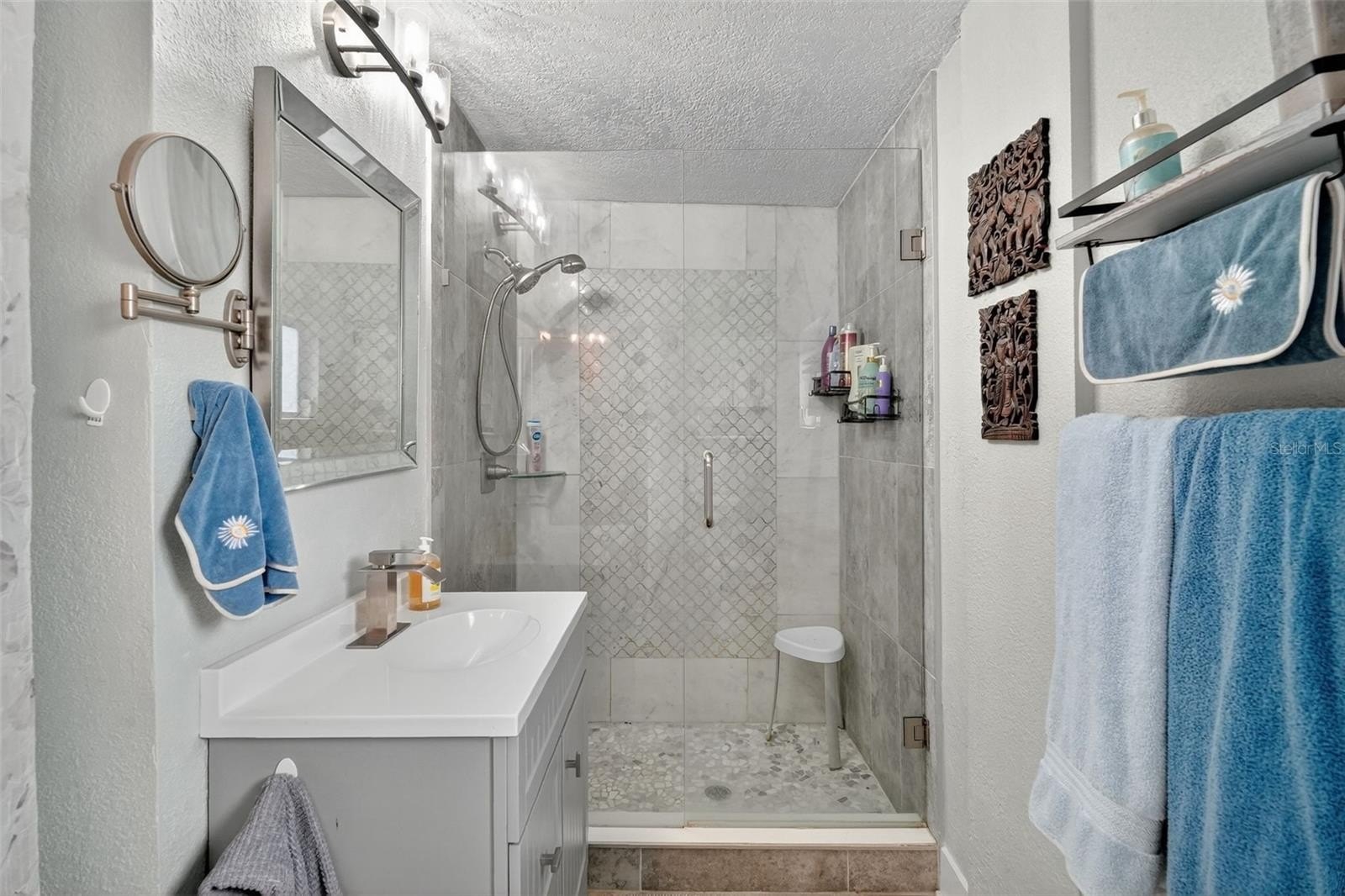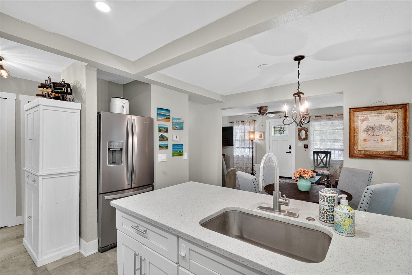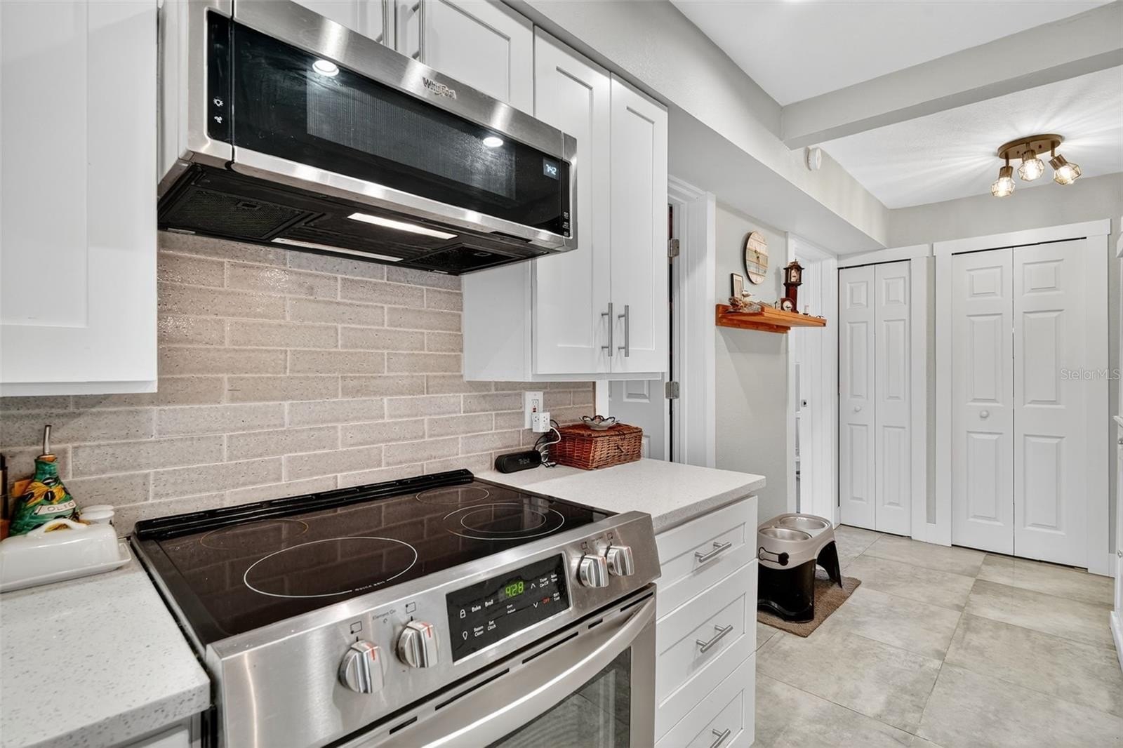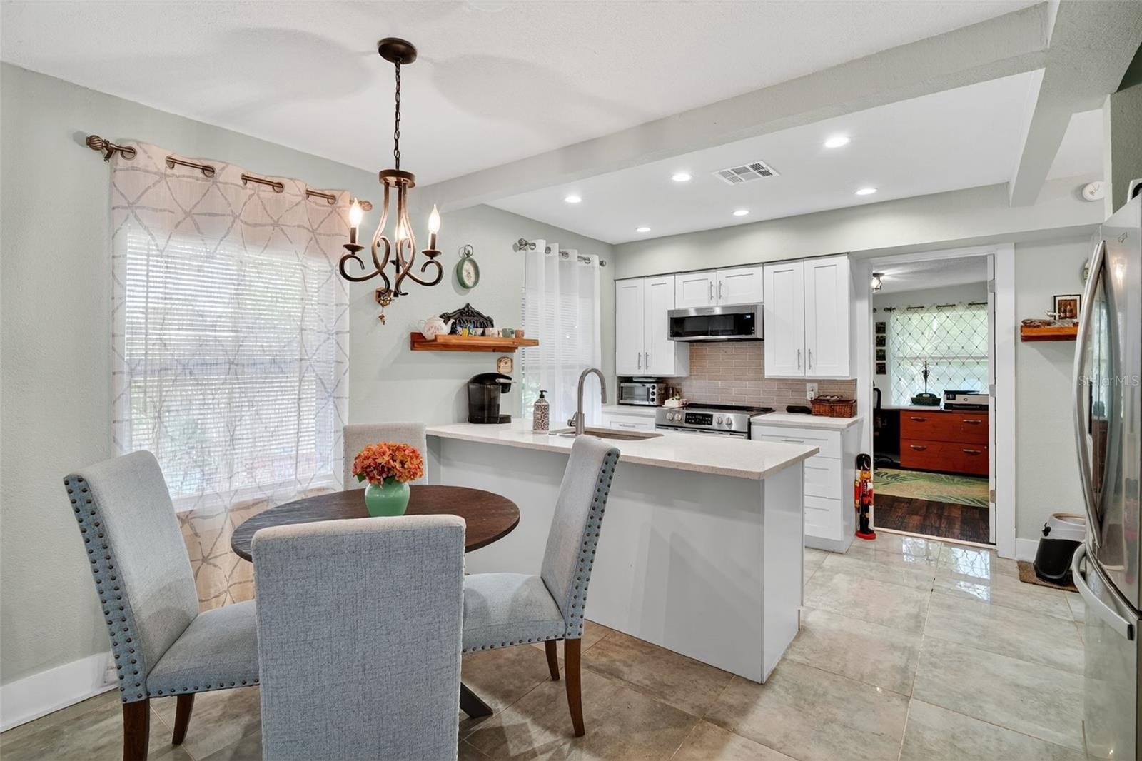 Inside, you’ll find a thoughtfully remodeled interior designed for both comfort and style. The bright and open kitchen is the centerpiece of the home, showcasing white shaker cabinetry, quartz countertops, and stainless-steel appliances. Whether you’re preparing family meals or entertaining guests, this space is as functional as it is beautiful. Both bathrooms have been completely updated with fresh finishes, while new flooring runs throughout, tying the home together with a clean, modern feel. Roof replacement was done in 2020.