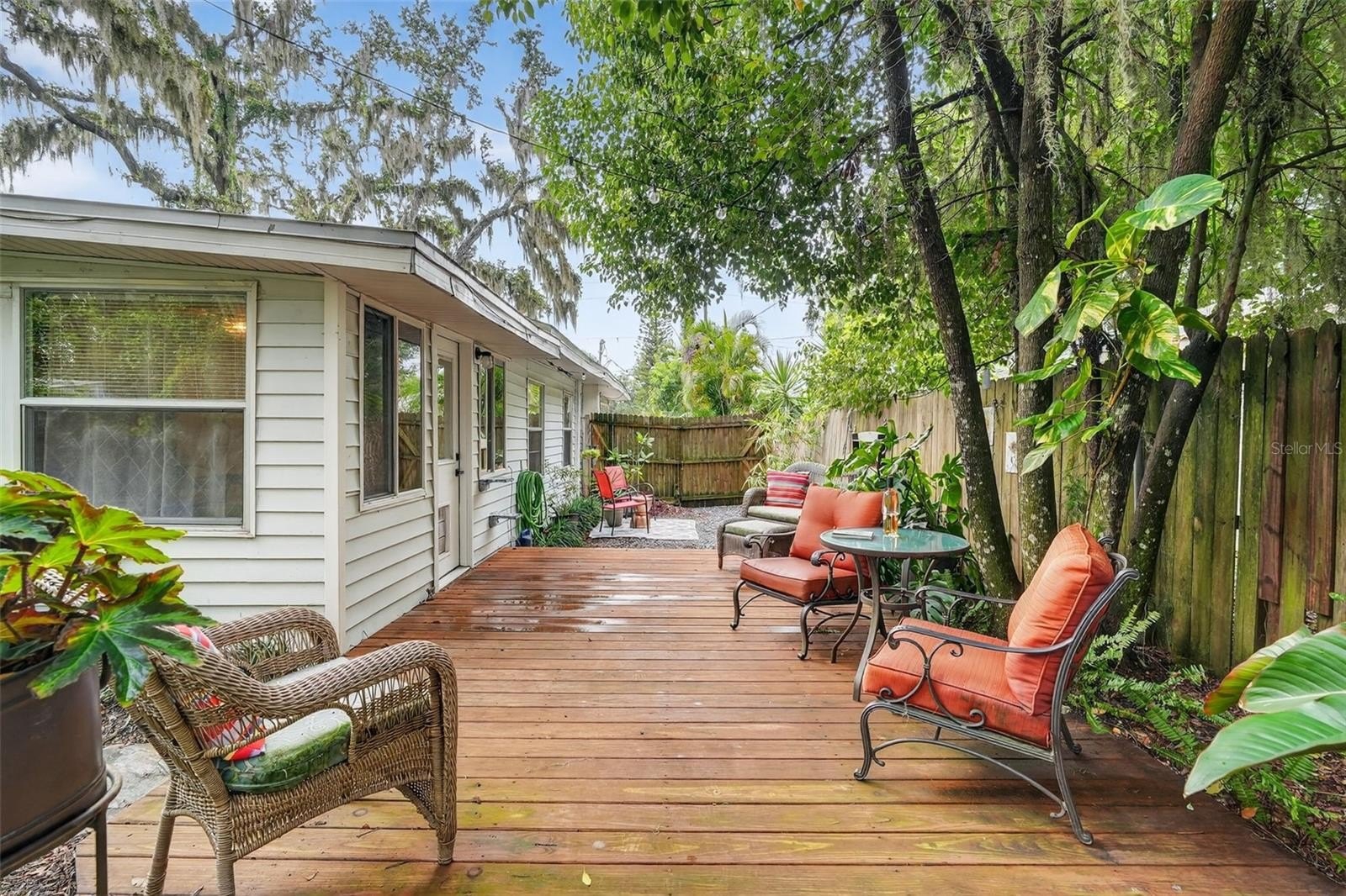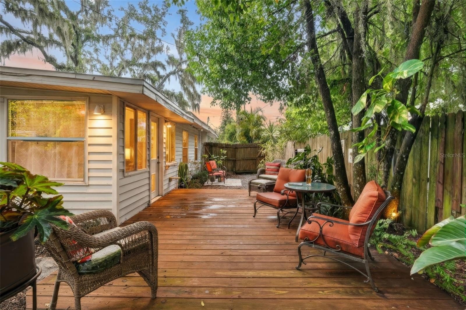 The home’s charm extends outdoors, step outside and discover your private oasis where a spacious deck overlooks a fully landscaped backyard filled with mature trees. Imagine evenings spent gathering around the fire pit, afternoons relaxing with a good book under the shade, or weekends hosting friends and family in this inviting outdoor retreat.