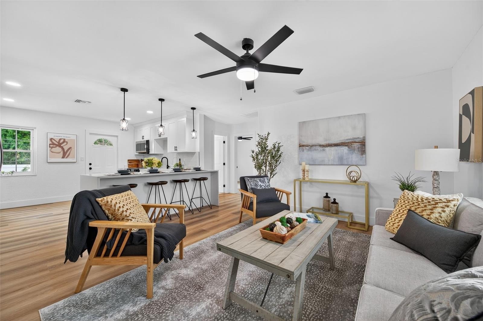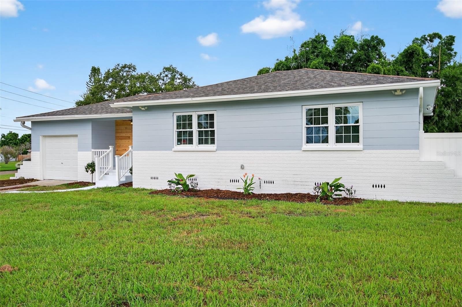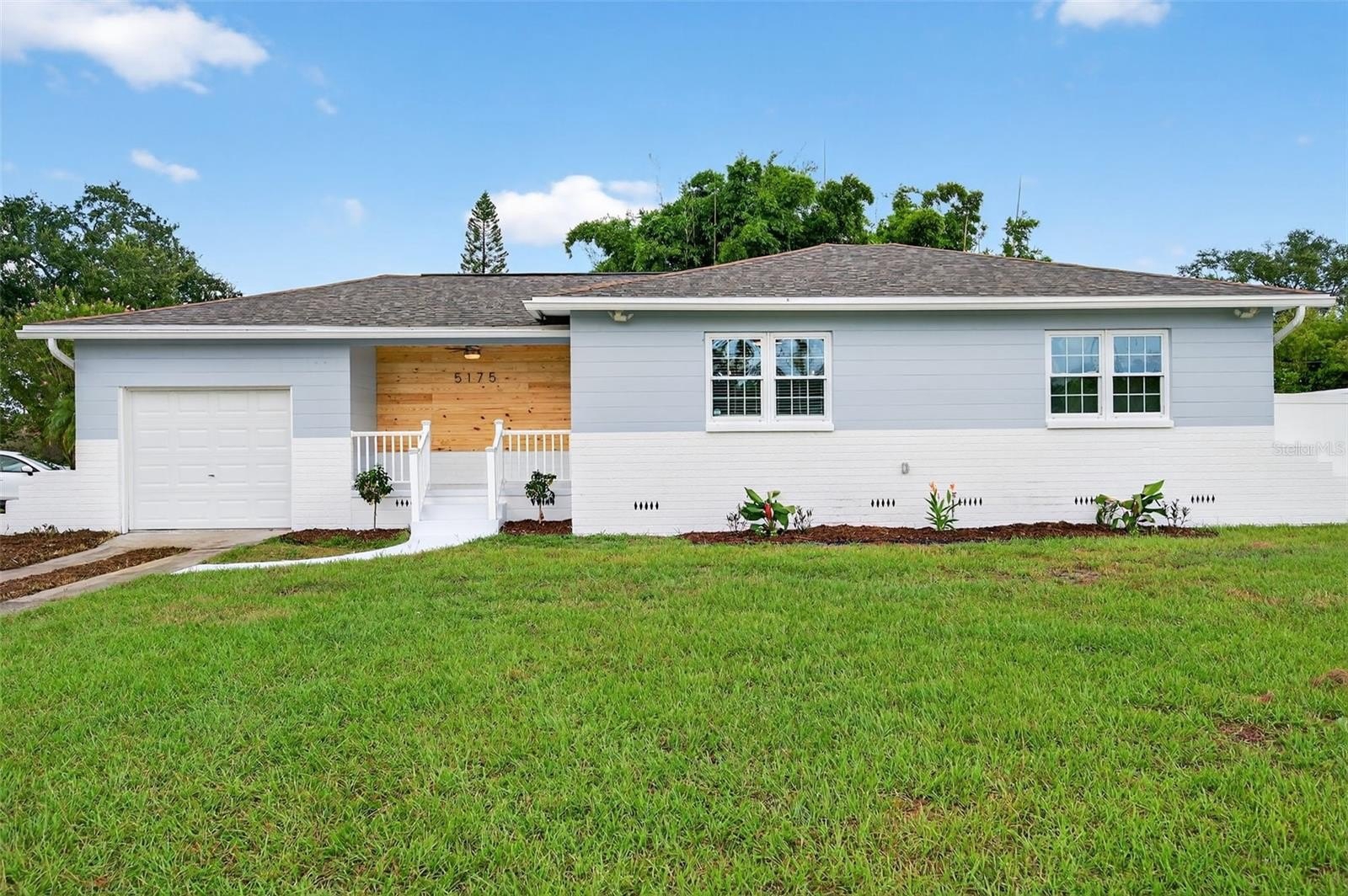 Located in one of St. Petersburg’s established neighborhoods, this move-in-ready 3-bedroom, 2-bath home sits on a desirable corner lot and offers complete modern updates. Inside, you’ll find an open-concept layout and a beautifully updated kitchen featuring waterfall-edge quartz countertops and stainless steel appliances. Both bathrooms have been fully renovated with modern finishes, and luxury vinyl plank flooring runs throughout for a clean, cohesive look. The home offers an abundance of natural light. Step outside to a spacious, fully vinyl-fenced backyard—perfect for entertaining, pets, or play—with mature landscaping and room for future additions. Conveniently located just minutes from shopping, dining, and the beaches. Located in Flood Zone X—no flood insurance required and no damage from last year's storms. Major updates include a new roof (2025), all-new ductwork, serviced HVAC (2025), and updated electrical and plumbing.