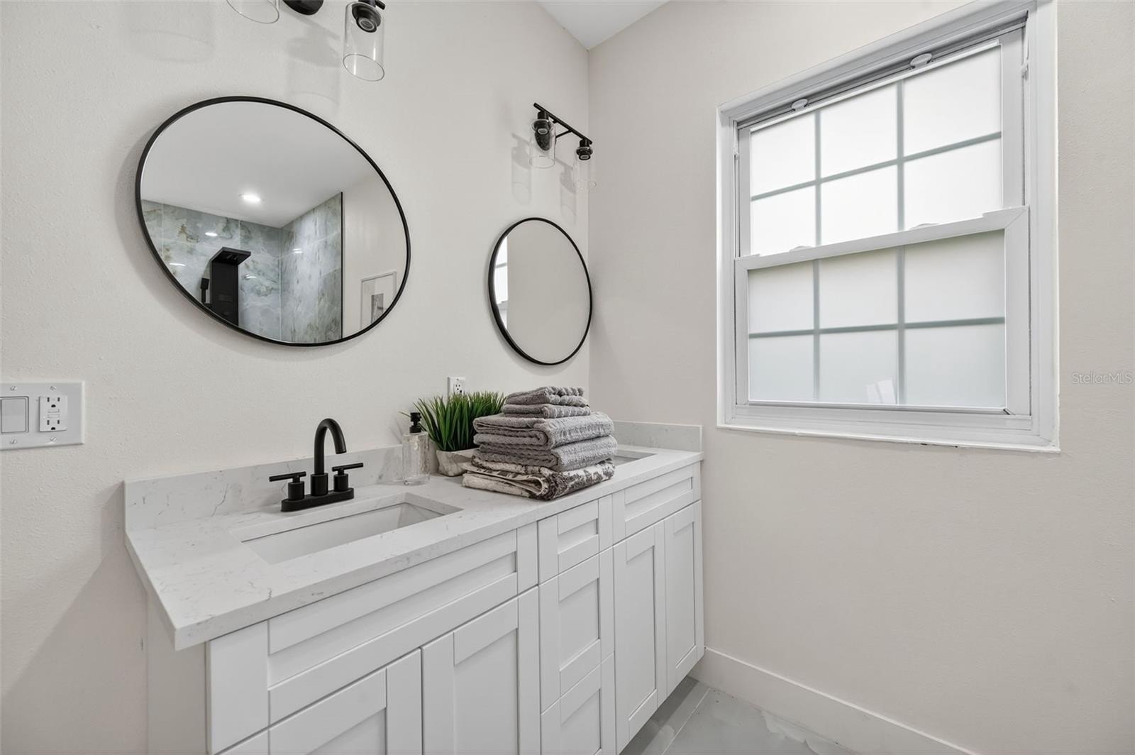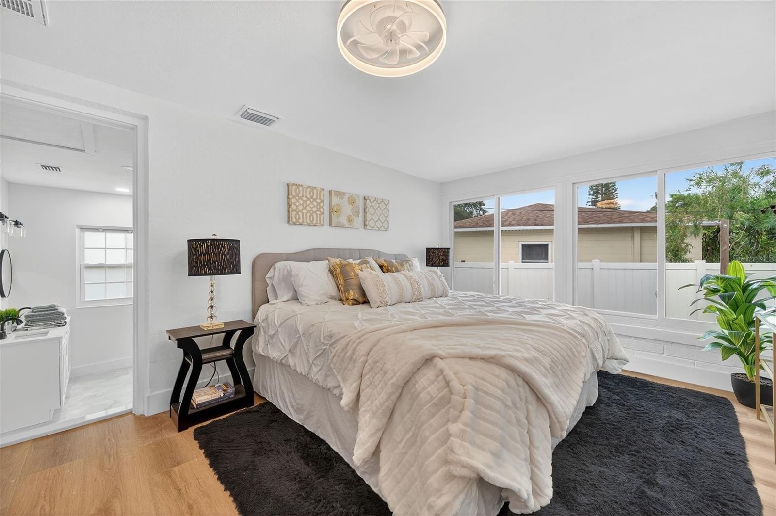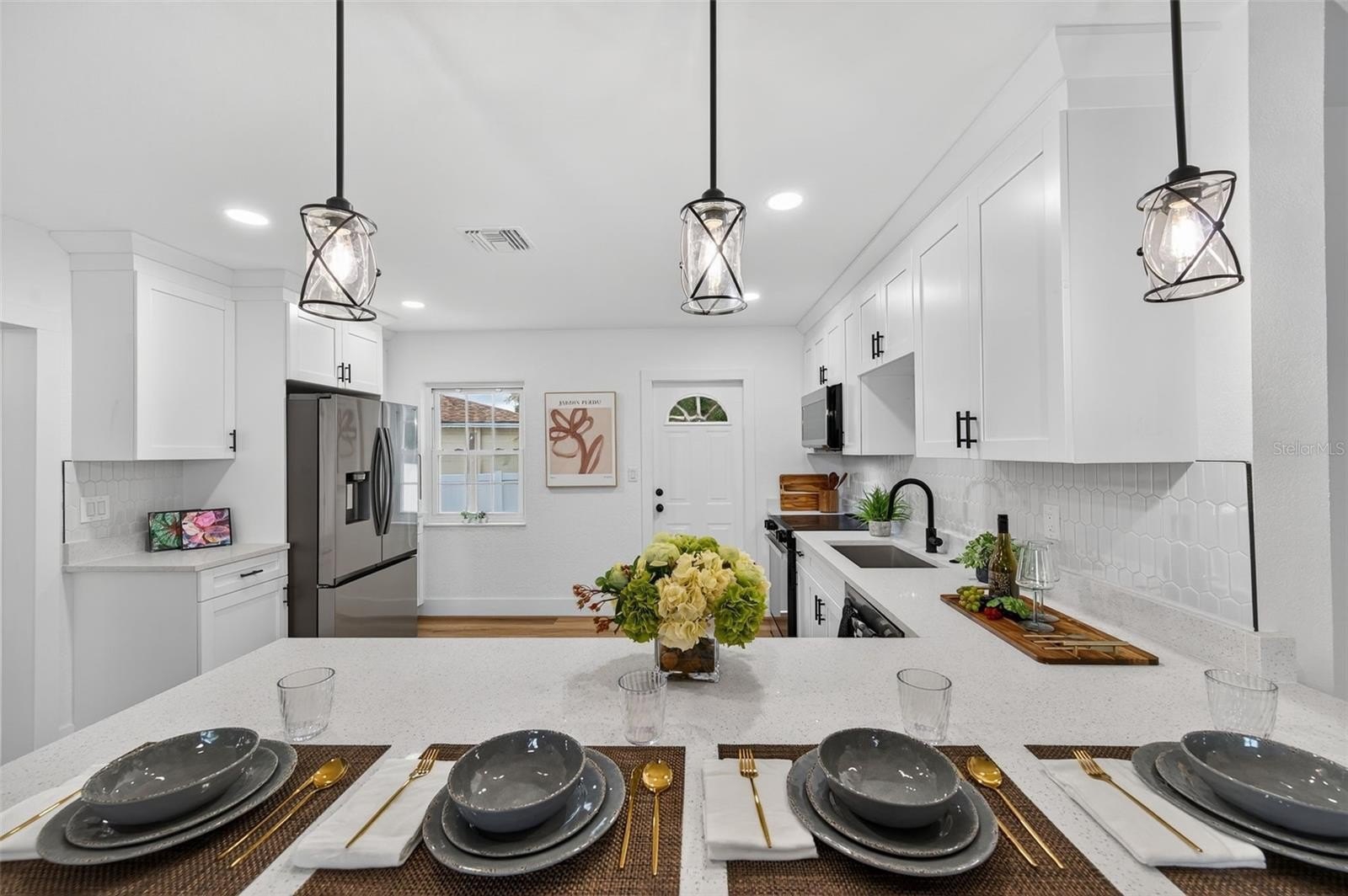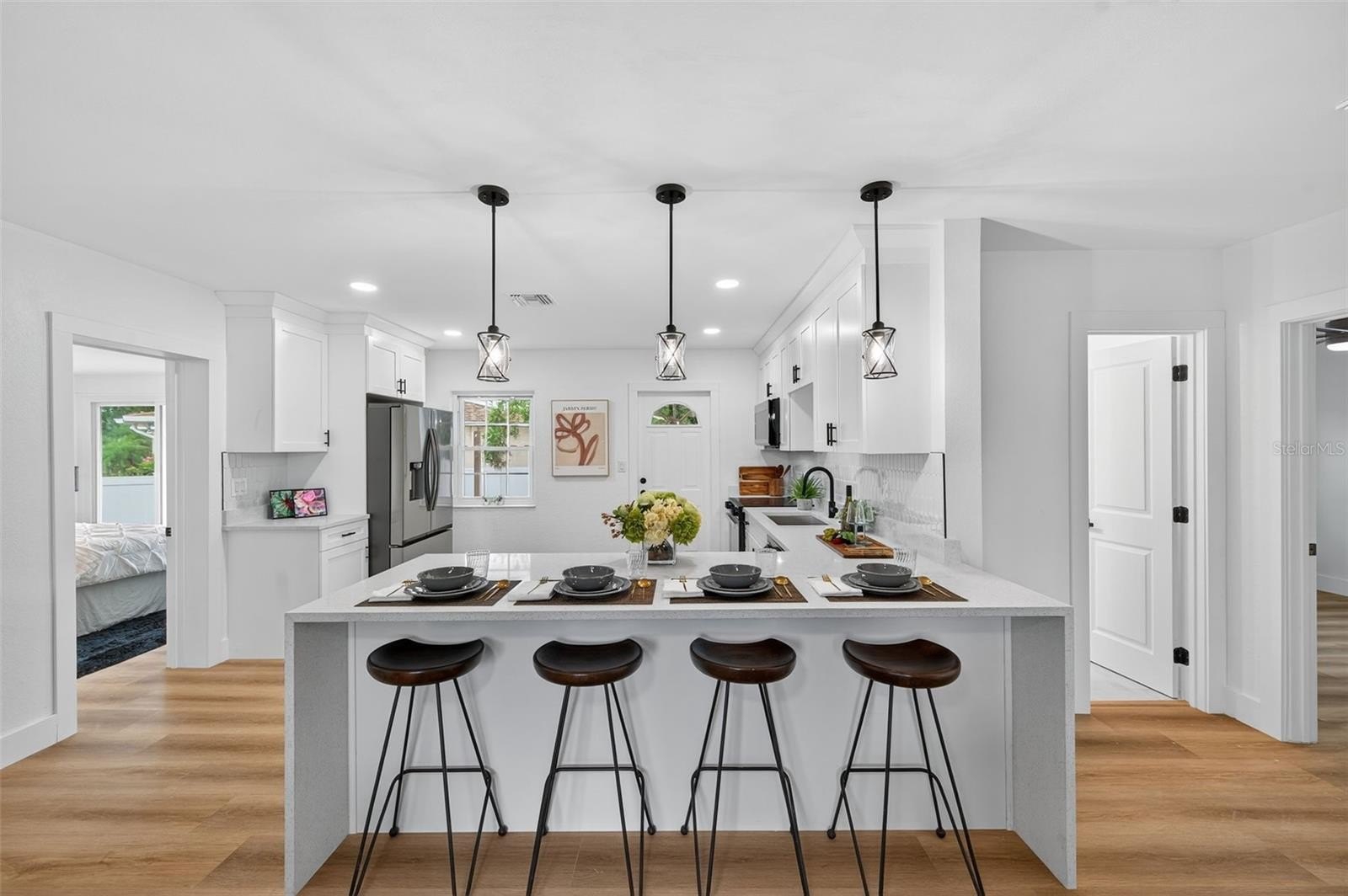Located in one of St. Petersburg’s established neighborhoods, this move-in-ready 3-bedroom, 2-bath home sits on a desirable corner lot and offers complete modern updates. Inside, you’ll find an open-concept layout and a beautifully updated kitchen featuring waterfall-edge quartz countertops and stainless steel appliances. Both bathrooms have been fully renovated with modern finishes, and luxury vinyl plank flooring runs throughout for a clean, cohesive look. The home offers an abundance of natural light. Step outside to a spacious, fully vinyl-fenced backyard—perfect for entertaining, pets, or play—with mature landscaping and room for future additions. Conveniently located just minutes from shopping, dining, and the beaches. Located in Flood Zone X—no flood insurance required and no damage from last year's storms. Major updates include a new roof (2025), all-new ductwork, serviced HVAC (2025), and updated electrical and plumbing.