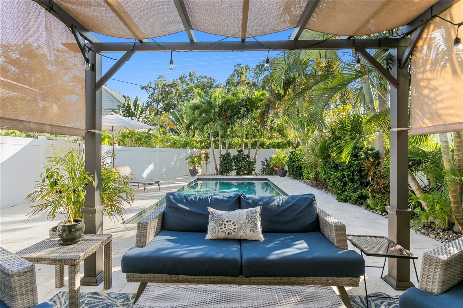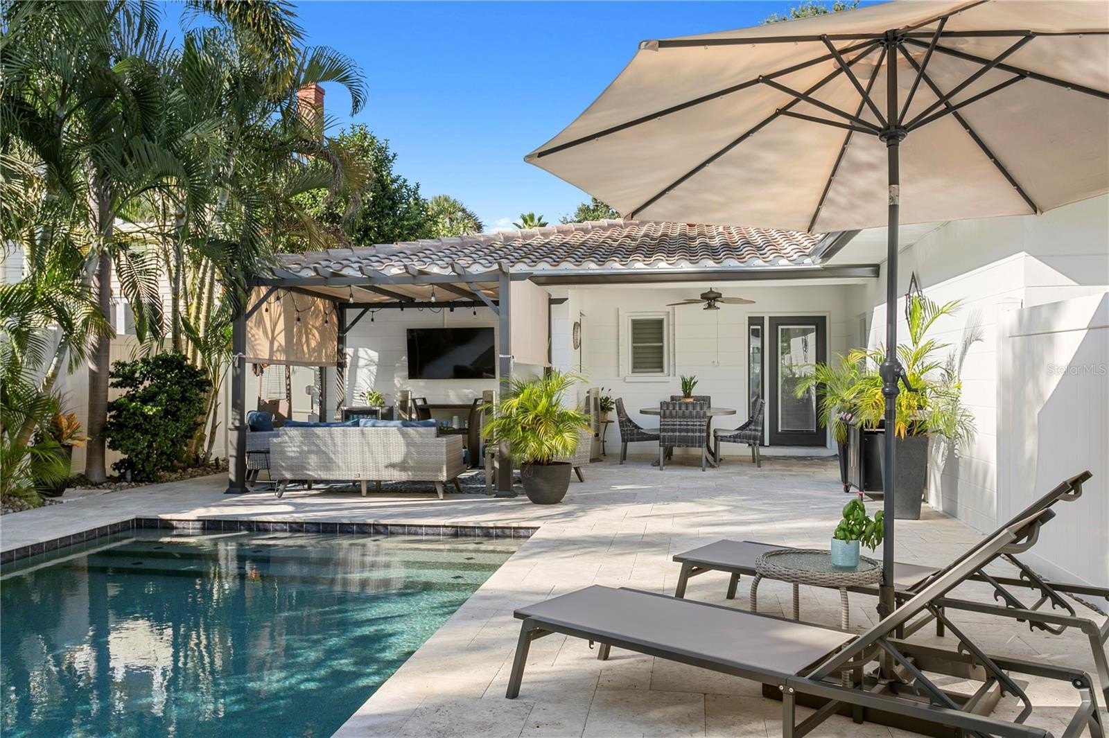 Palm Beach vibes in the heart of Euclid St. Paul, one of St. Pete’s most beloved and walkable neighborhoods. This chic concrete block home sits high and dry (no flood insurance required) on one of the most naturally elevated lots in Pinellas County. A brand-new tile roof, whole-house generator, tankless gas hot water heater, and natural gas range bring peace-of-mind and convenience, while the original terrazzo floors add that perfect touch of Florida mid-century style. The backyard is a true retreat with heated saltwater pool, multiple outdoor living, dining, and lounging zones, and landscape lighting that transforms the space into a glowing private resort by night. It’s the ultimate bonus living space, and where everyone will want to gather. Inside, the floor plan is bright and comfortable, and the attached 1-car garage adds everyday practicality. Set along the grand, tree-lined boulevard of 14th Ave N, you’ll love the friendly, active community vibe with neighbors out walking, biking, and chatting all day long. Just a short stroll or quick ride to Crescent Lake, and all the restaurants, cafés, and boutiques along Central Ave and Downtown St. Pete.