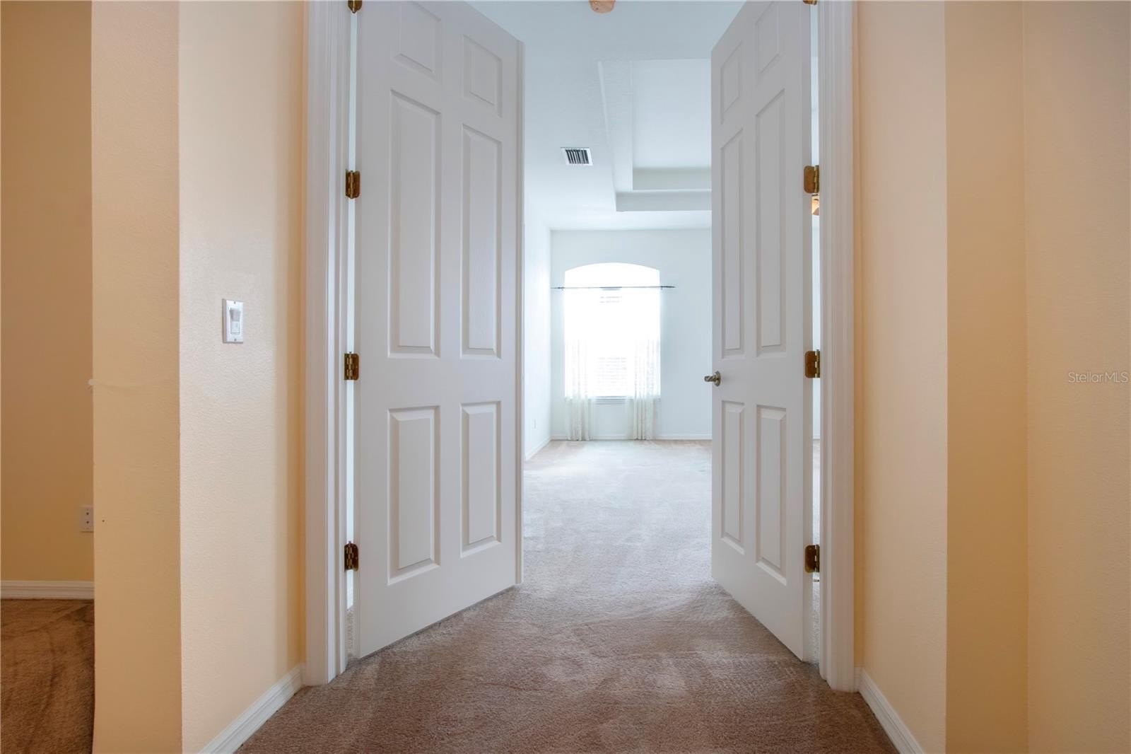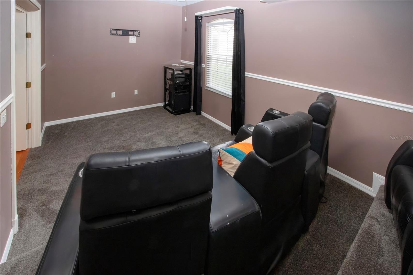 floor and staircase. There is a separate media room that includes 6 leather reclining chairs as well as a surround sound system. Perfect for watching your favorite sports team or a movie. Also on the first floor is a laundry room with washer and dryer and storage under the stairs. The second floor has 4 bedrooms and an office. The enormous primary bedroom has a huge walk-in closet, trey ceilings, and primary bath that has a remodeled shower and garden tub...a beautiful retreat. A second full bath completes the 2nd story as well as the office.