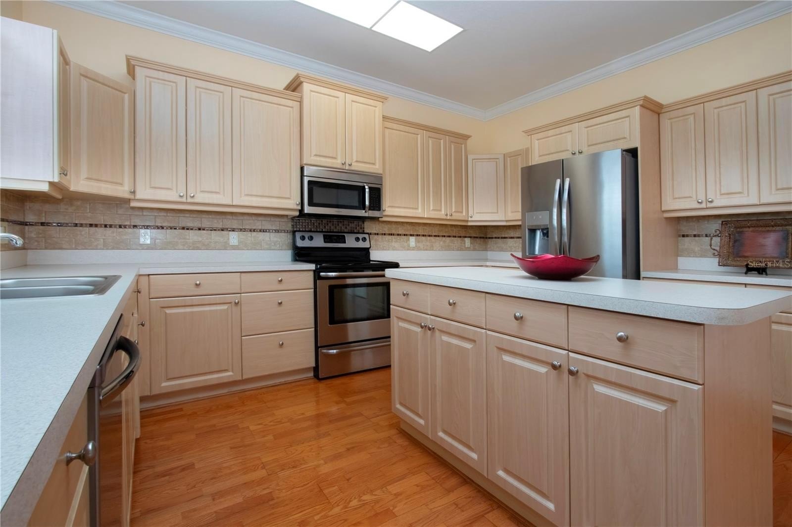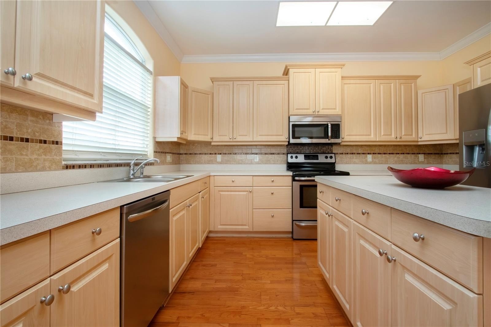 room for table, and an abundance of cabinets, all overlooks backyard and screened porch. The adjacent 3rd bath is handy for guests. Gleaming wood floors highlight the first