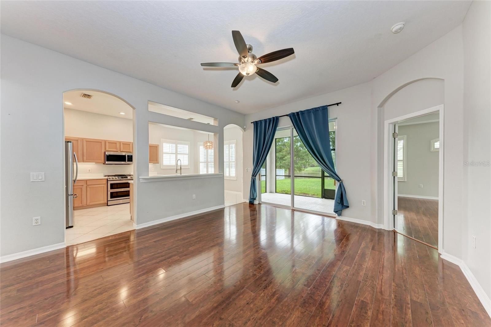 The open and airy floorplan includes stainless steel appliances in the modern kitchen, perfect for entertaining. Unwind on the covered lanai while enjoying breathtaking views of the serene lake—a wonderful retreat for relaxation. Located just minutes from Greenbrook Adventure Park, residents have access to a playground, basketball courts, soccer fields, a hockey rink, dual dog parks, and scenic walking and biking trails.