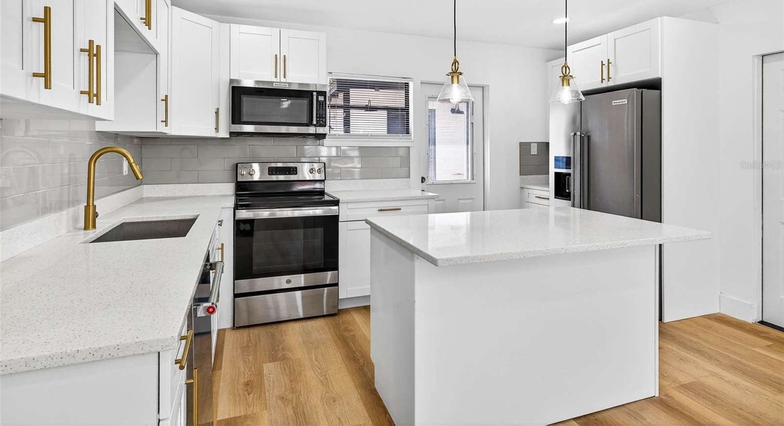 Looking for a home that’s been completely updated and ready for you? This 3-bedroom, 1-bath charmer sits on a spacious corner lot and has it all. Inside, you’ll find luxury vinyl floors, a freshly redone bathroom with porcelain tile, and a kitchen that pops with white cabinets, quartz counters, golden fixtures, a deep sink, and backsplash.