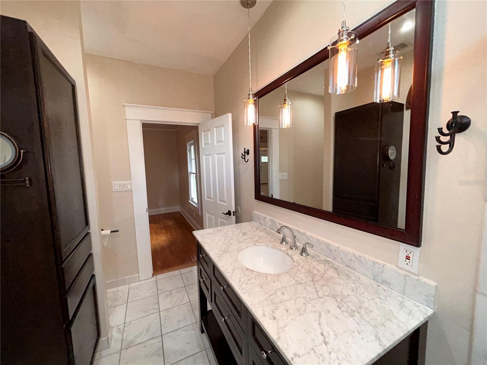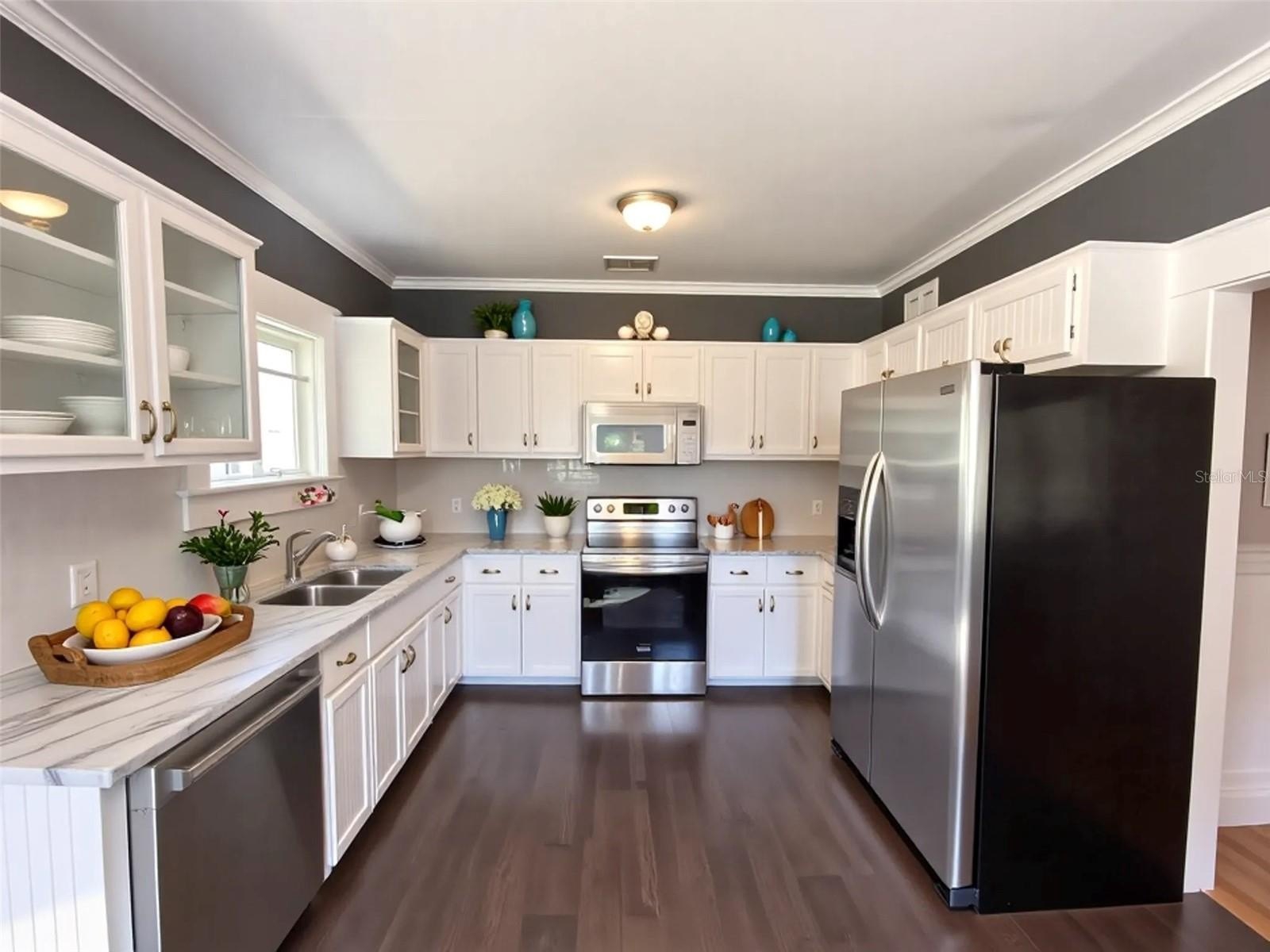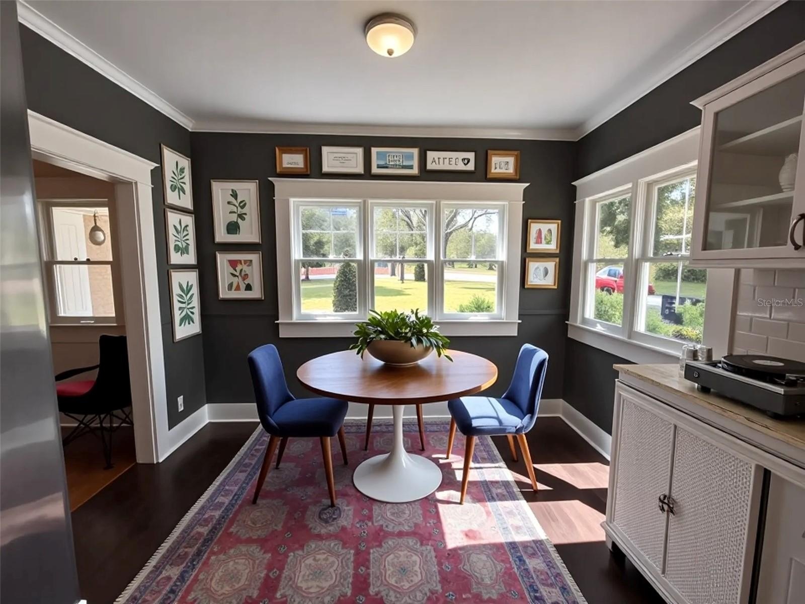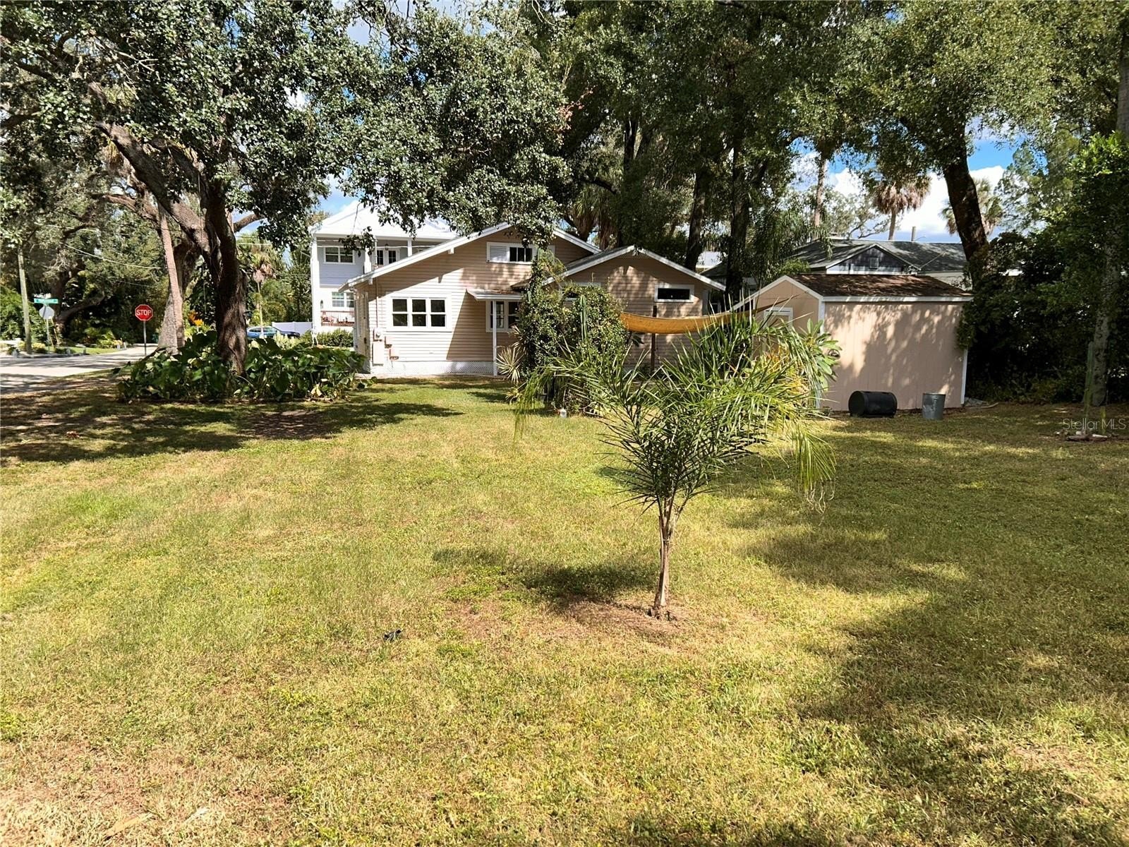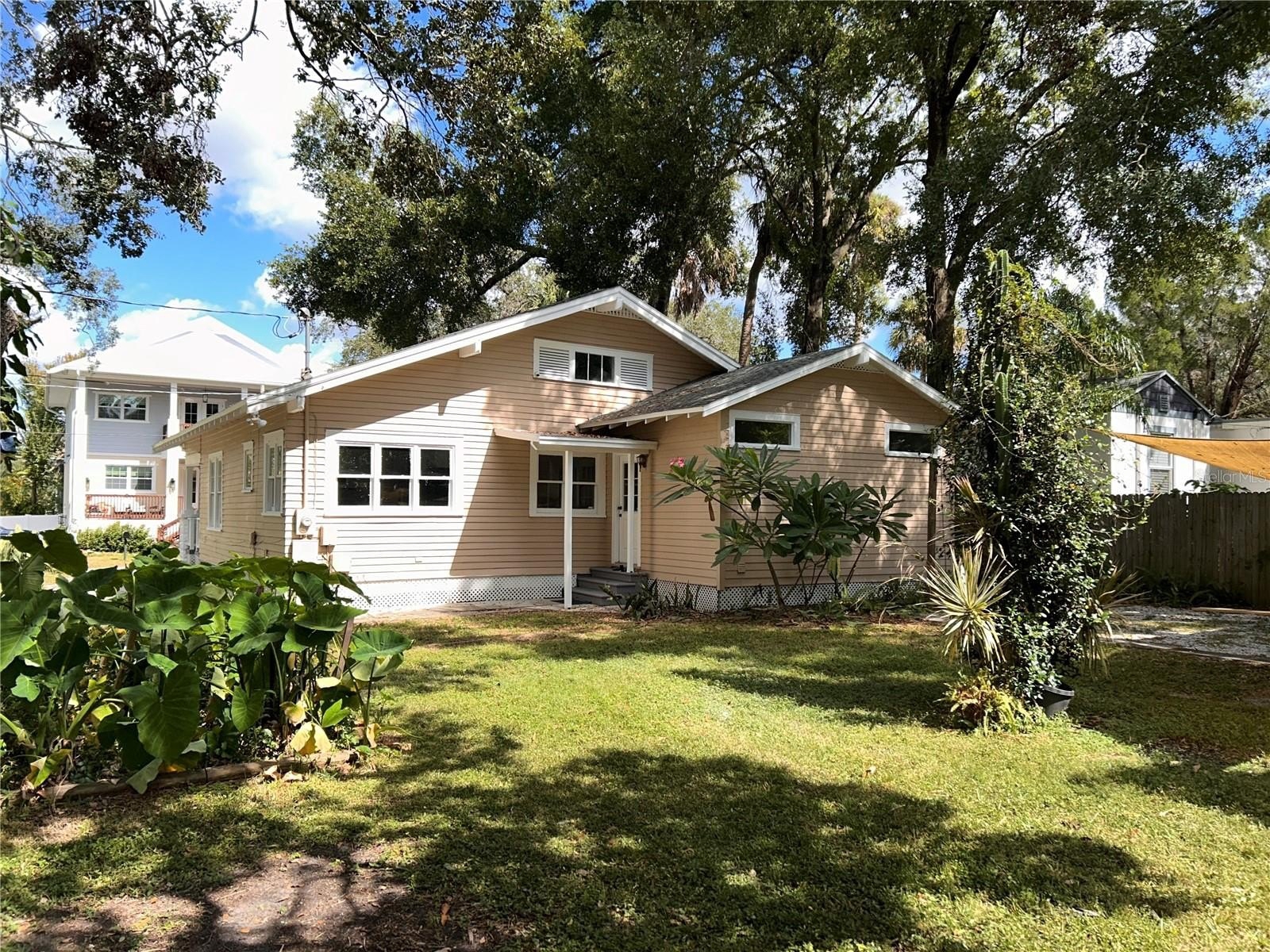 One or more photo(s) has been virtually staged. Charming Updated Bungalow in Seminole Heights on a Double Corner Lot. This beautifully maintained bungalow blends timeless character with modern comfort in the heart of Seminole Heights. Set on a large double corner lot with mature landscaping, the home welcomes you with a spacious front porch featuring wood ceilings and flooring—perfect for relaxing and greeting neighbours. Inside, enjoy original hardwood floors, classic mouldings, and glass-front built-ins separating the living and dining rooms. The living room features a cozy fireplace, while the dining area showcases rich wood wainscoting and warm natural tones. The updated eat-in kitchen offers stainless steel appliances, modern cabinetry, and abundant natural light from numerous windows overlooking the backyard—ideal for breakfast or quiet reflection. The primary suite features a walk-in closet and a beautifully updated bathroom with marble-style tile, a large storage cabinet, and an elegant single vanity. The second bedroom features French doors, while the second bathroom exudes old-world charm with wainscoting, modern fixtures, and a claw-foot tub. Additional highlights include a large laundry room with a utility sink, outdoor storage shed, updated fixtures, fresh paint inside and out, roof (2017), and AC (2021). High and dry—no flooding. Just minutes to Armature Works and Downtown Tampa.