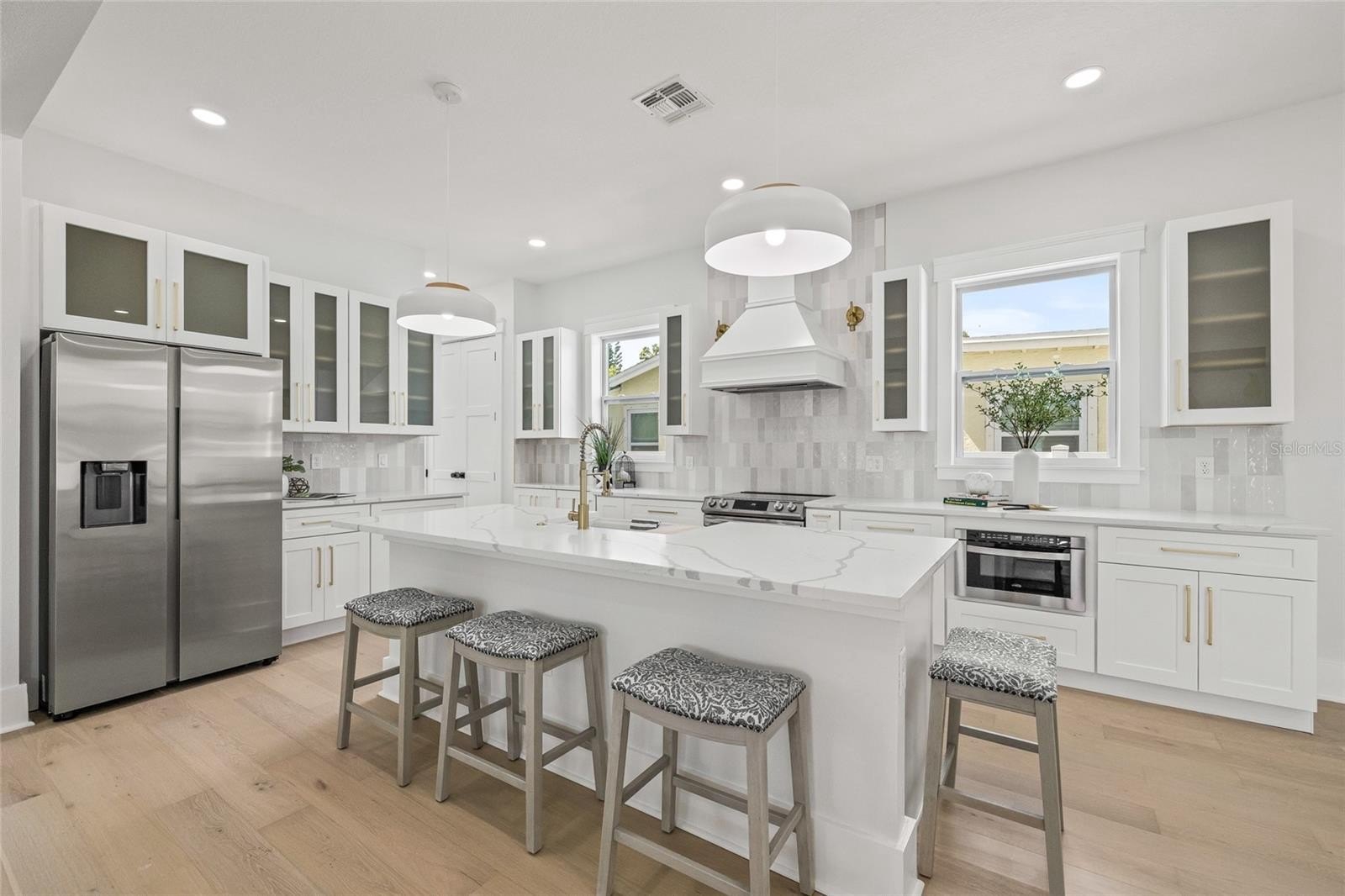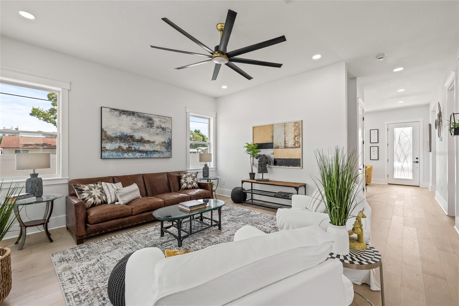 Brand-New Construction in Prime St. Pete Location by Coastline Home! Situated at the intersection of the Eagle Crest, Lake Pasadena, and Azalea neighborhoods, this stunning new-construction home offers refined living in one of West St. Petersburg’s most sought-after areas. Fully completed and move-in ready, this thoughtfully designed residence features 4 bedrooms, 3.5 bathrooms, and an attached 2-car garage with rear alley access. Inside, you'll find 10’ ceilings, rich engineered hardwood flooring, 8’ interior doors, and high-end designer finishes throughout. Elegant trim work, oversized baseboards, and cased windows add to the home’s timeless charm. The custom kitchen is a chef’s dream with abundant cabinetry, a walk-in pantry, and stylish finishes, seamlessly connecting to two dining areas and two distinct living spaces. The main living room offers flexibility to serve as a playroom, home office, or additional lounging area, while the separate family room provides a comfortable space to relax or entertain. The Master Suite is a private retreat with a luxurious en-suite bathroom featuring an oversized double-sink vanity and a spa-like walk-in shower. Step outside to enjoy the covered front and rear porches and a fully fenced backyard with white vinyl fencing—perfectly private and offering ample space to add a future pool. Whether you're entertaining guests or enjoying a quiet evening at home, this outdoor space is ready to grow with your vision. Located just minutes from vibrant Downtown St. Pete, Gulf beaches, parks, and top-rated schools, this home blends luxury, comfort, and convenience in a location you’ll love. Don’t miss your chance to own this exceptional new home—schedule your private tour today! **Rendering of pool is included for reference purposes only, and new pool is not included with purchase.**