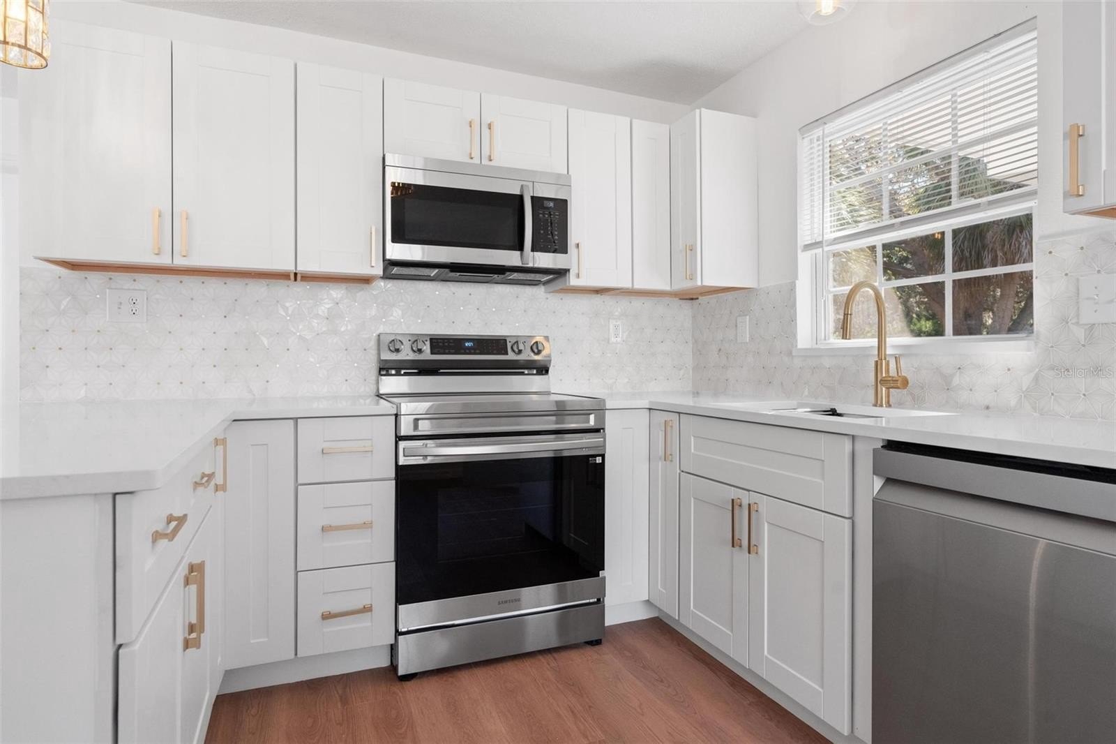 Welcome to your adorable new home on the brick streets of Pasadena Estates. No flood insurance required in this flood zone X charmer just minutes from the beaches. With the open concept layout, this home feels much bigger than the sf suggests and with a generous sized lot, the backyard provides plenty of space to get creative on a backyard oasis or add on. With a new roof (2024), new AC (2025), new Hot Water Heater (2025) & interior/exterior paint (2025), have peace of mind that the major expensives have been taken care of. The interior boasts a brand new kitchen with solid wood shaker cabinets and all brand new appliances (2025) to go with the beautiful quartz countertops and luxury vinyl floors. With this location and highly desired neighborhood, you will need to act quickly as homes average much lower days on market than others. All of your shopping is just 5 minutes aways to Tyrone Square as well as a quick 5-10 minute drive to the beaches. Get into your new home just before the holidays!