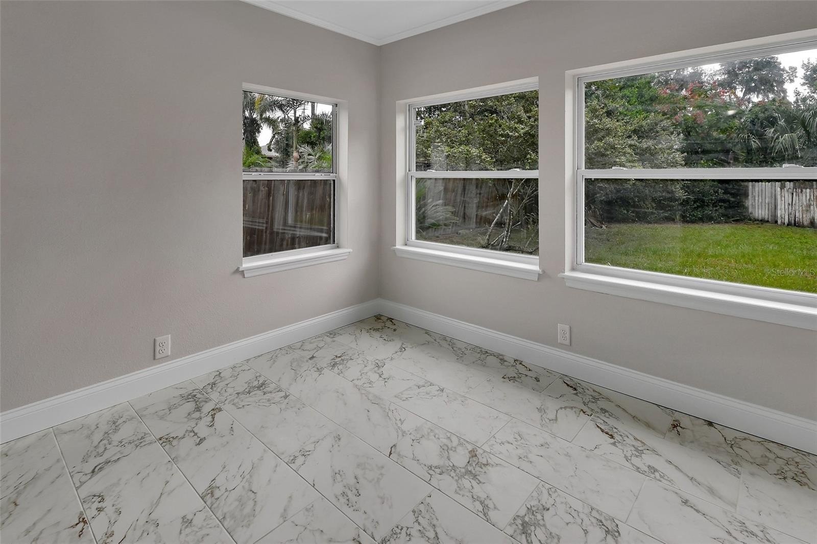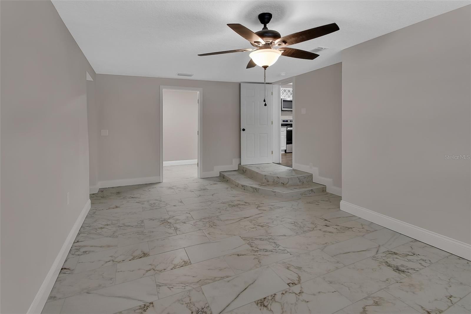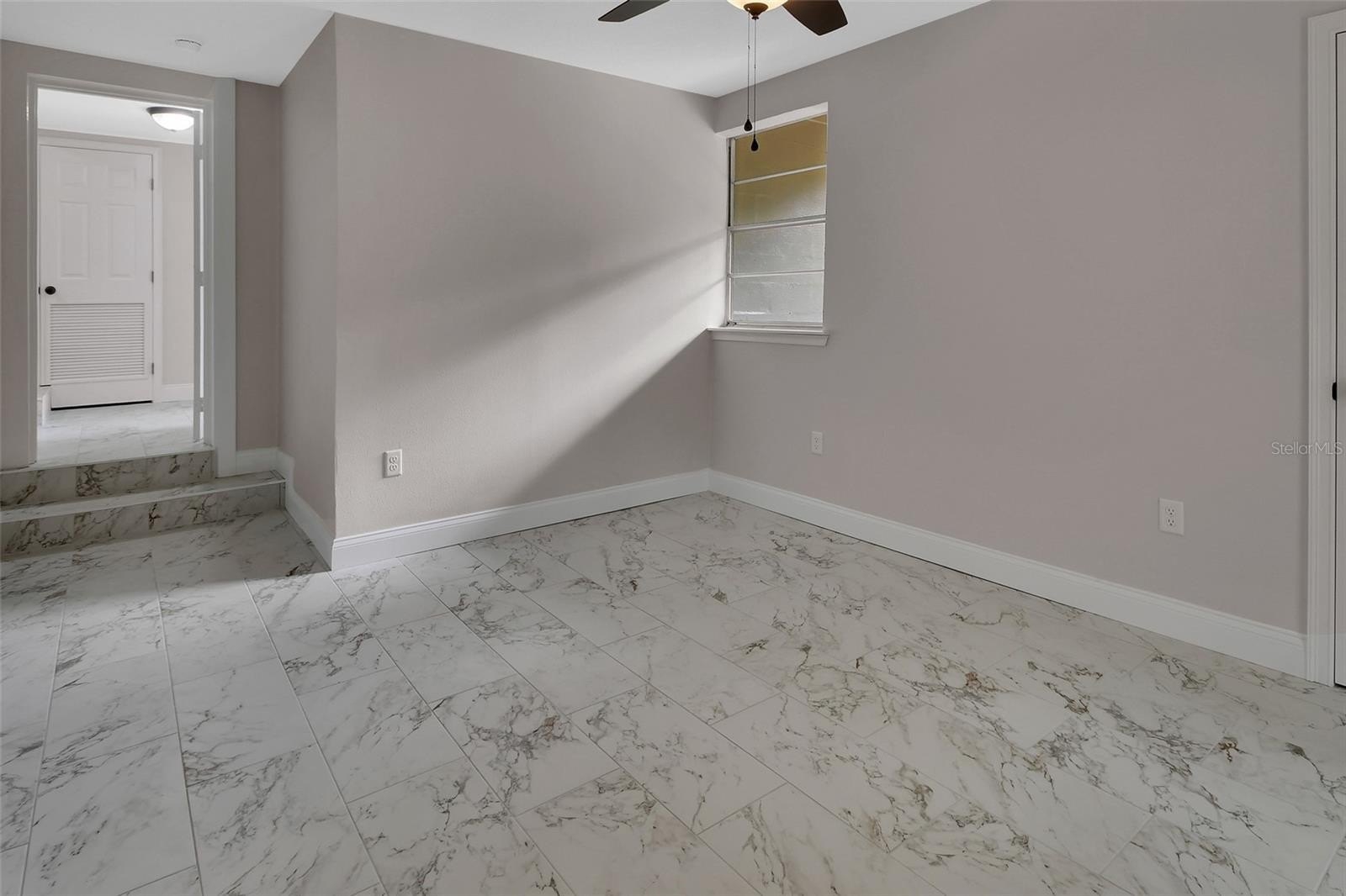This updated block home offers 4 bedrooms, 2 bathrooms, as well as a formal dining room or bonus room, conveniently located near Downtown Deland. The property has been thoroughly renovated, including a new roof, a complete electrical rewire with a new service and panels, new plumbing, and a new hot water heater. The kitchen is equipped with quiet-close cabinetry, granite countertops, recessed lighting, and new GE stainless steel appliances. Bathrooms feature neutral subway tile showers and premium fixtures. An attached storage room provides additional space for outdoor equipment and tools. With its generous layout, this home is suitable for large or multi-generational families. The property is within walking distance of downtown events and is just a 10-minute drive from both I-4 and International Speedway.