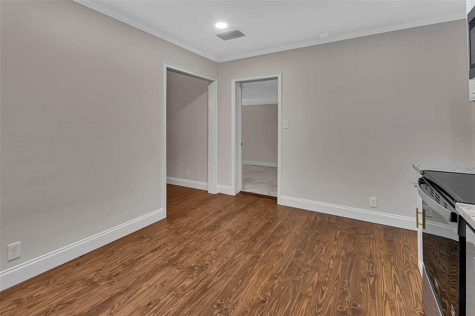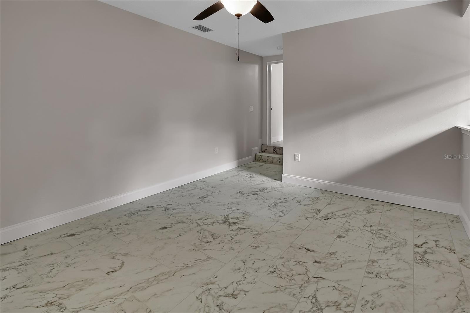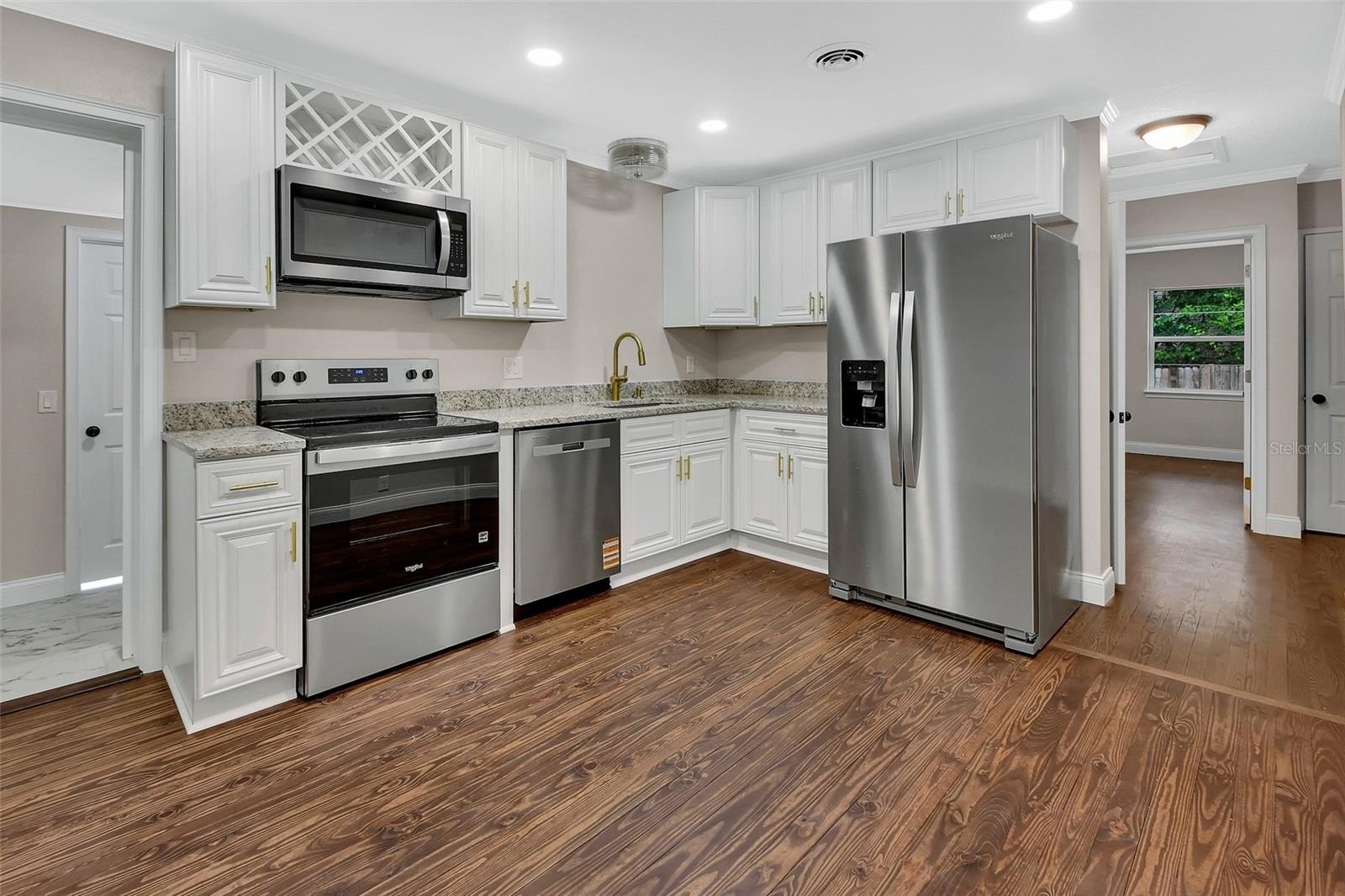 This updated block home offers 4 bedrooms, 2 bathrooms, as well as a formal dining room or bonus room, conveniently located near Downtown Deland. The property has been thoroughly renovated, including a new roof, a complete electrical rewire with a new service and panels, new plumbing, and a new hot water heater. The kitchen is equipped with quiet-close cabinetry, granite countertops, recessed lighting, and new GE stainless steel appliances. Bathrooms feature neutral subway tile showers and premium fixtures. An attached storage room provides additional space for outdoor equipment and tools. With its generous layout, this home is suitable for large or multi-generational families. The property is within walking distance of downtown events and is just a 10-minute drive from both I-4 and International Speedway.