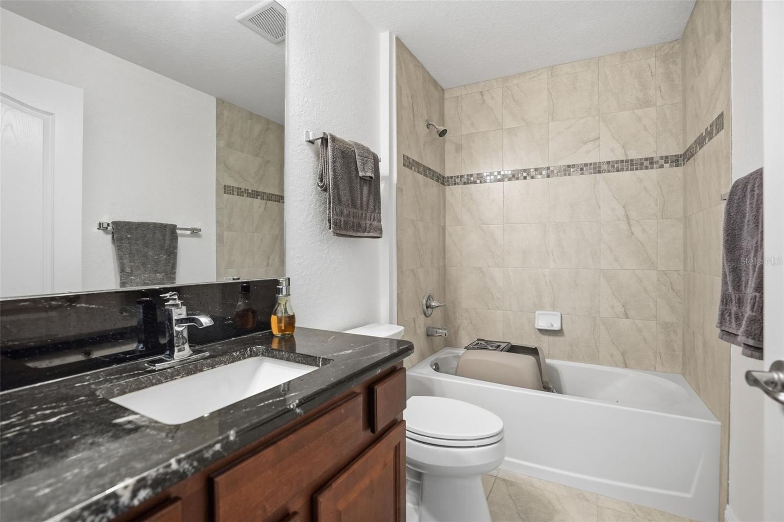 The master bedroom is LARGE with ensuite upgraded master bathroom!! The master bathroom has matching upgraded cabinets and granite countertops with soaking tub and separate shower! Large walk-in closet, too! The other 3 bedrooms are all great sizes - no one gets a small bedroom in the home!! The second bathroom has all matching upgraded finishes, too!!