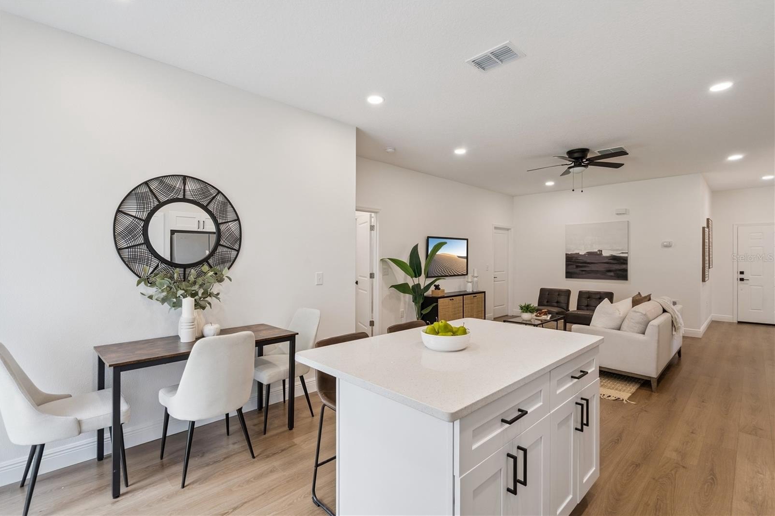 Step inside to a bright, open layout with neutral colors that create a warm and inviting feel. The heart of the home is the modern kitchen, showcasing quartz countertops, shaker cabinets, and plenty of space for family meals and gatherings. The adjoining living and dining areas flow together seamlessly, making entertaining and everyday living a breeze.