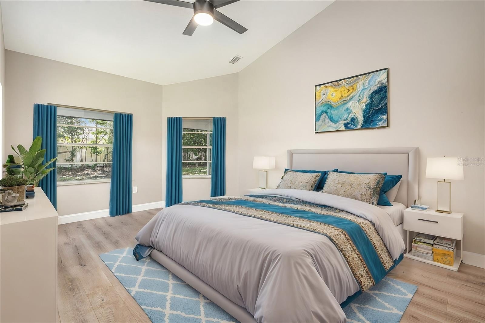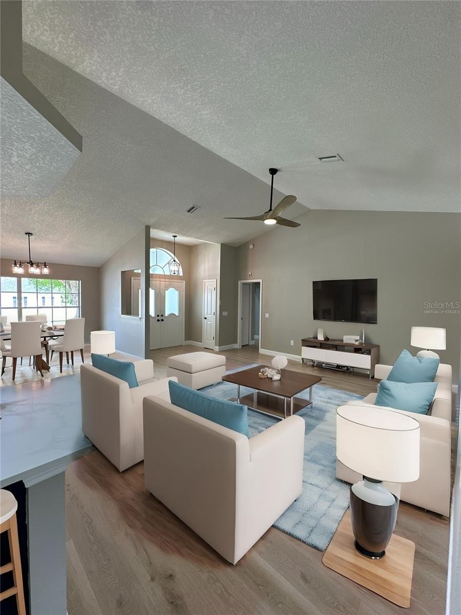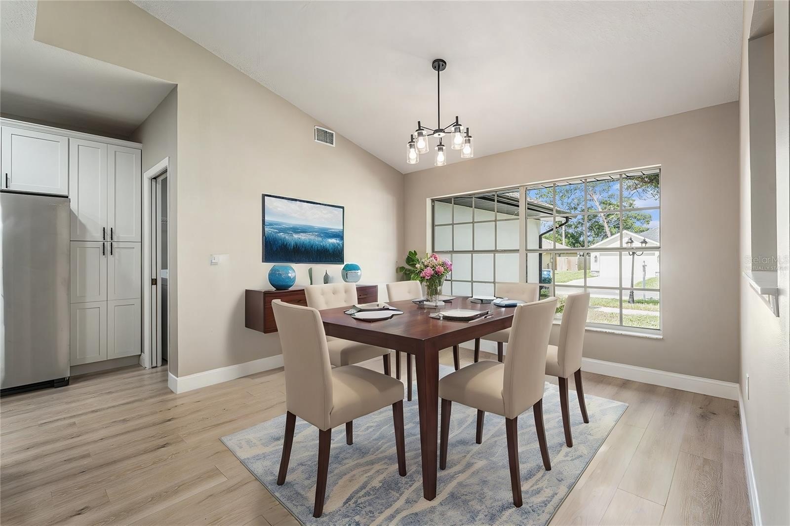 This stunning property has been completely updated with NEW LUXURY LAMINATED FLOORING, a fully renovated kitchen, remodeled bathrooms, modern fixtures, fans, and updated lighting. The kitchen features custom cabinets white, shakers, and royal blue, Large size island with Quartz countertops, Newer stainless-steel appliances, abundant counter space, and plenty of storage. The layout flows seamlessly with a cozy breakfast nook, a formal dining room for gatherings, and a spacious living area.