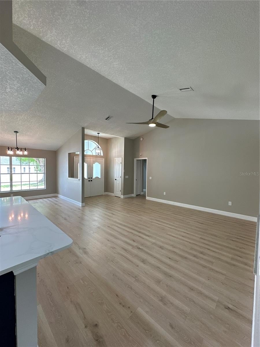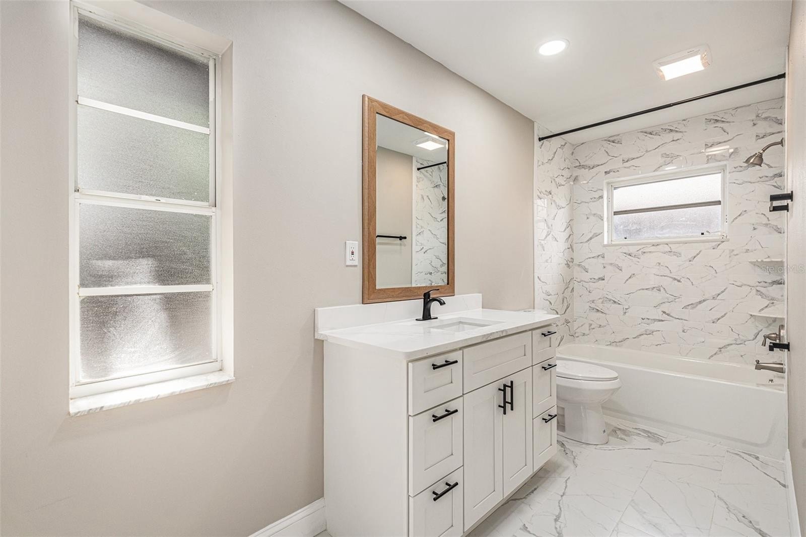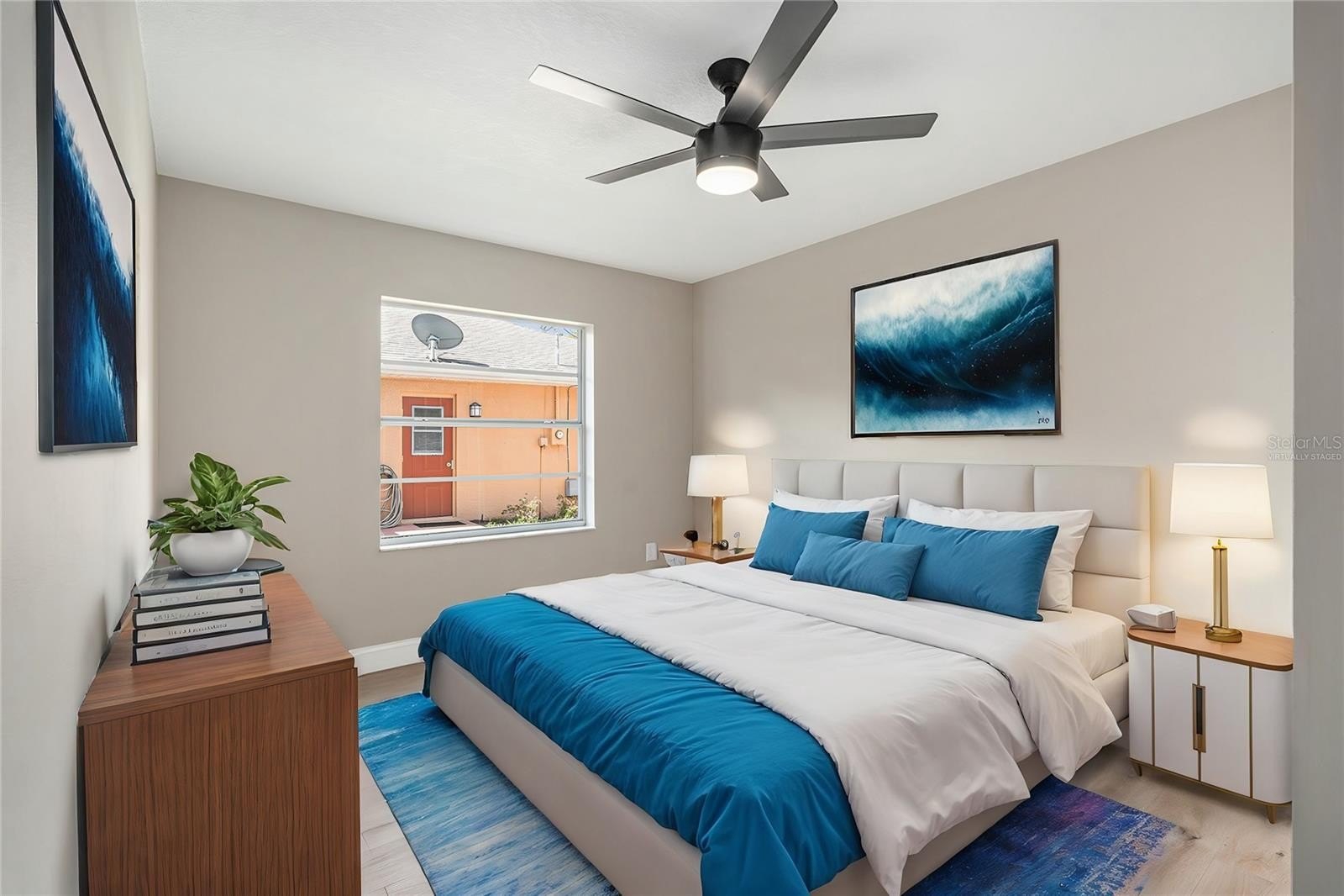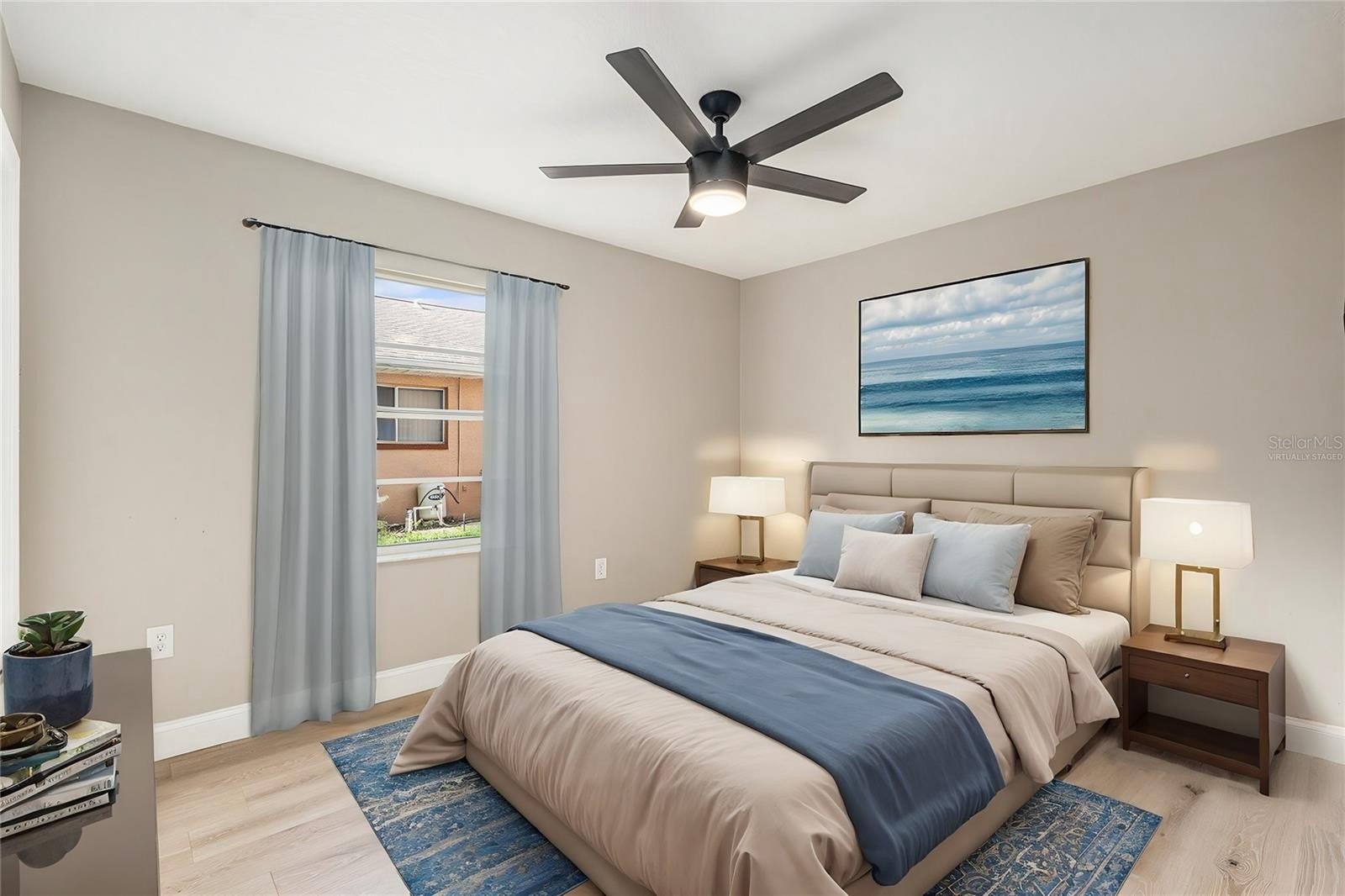 This stunning property has been completely updated with NEW LUXURY LAMINATED FLOORING, a fully renovated kitchen, remodeled bathrooms, modern fixtures, fans, and updated lighting. The kitchen features custom cabinets white, shakers, and royal blue, Large size island with Quartz countertops, Newer stainless-steel appliances, abundant counter space, and plenty of storage. The layout flows seamlessly with a cozy breakfast nook, a formal dining room for gatherings, and a spacious living area.