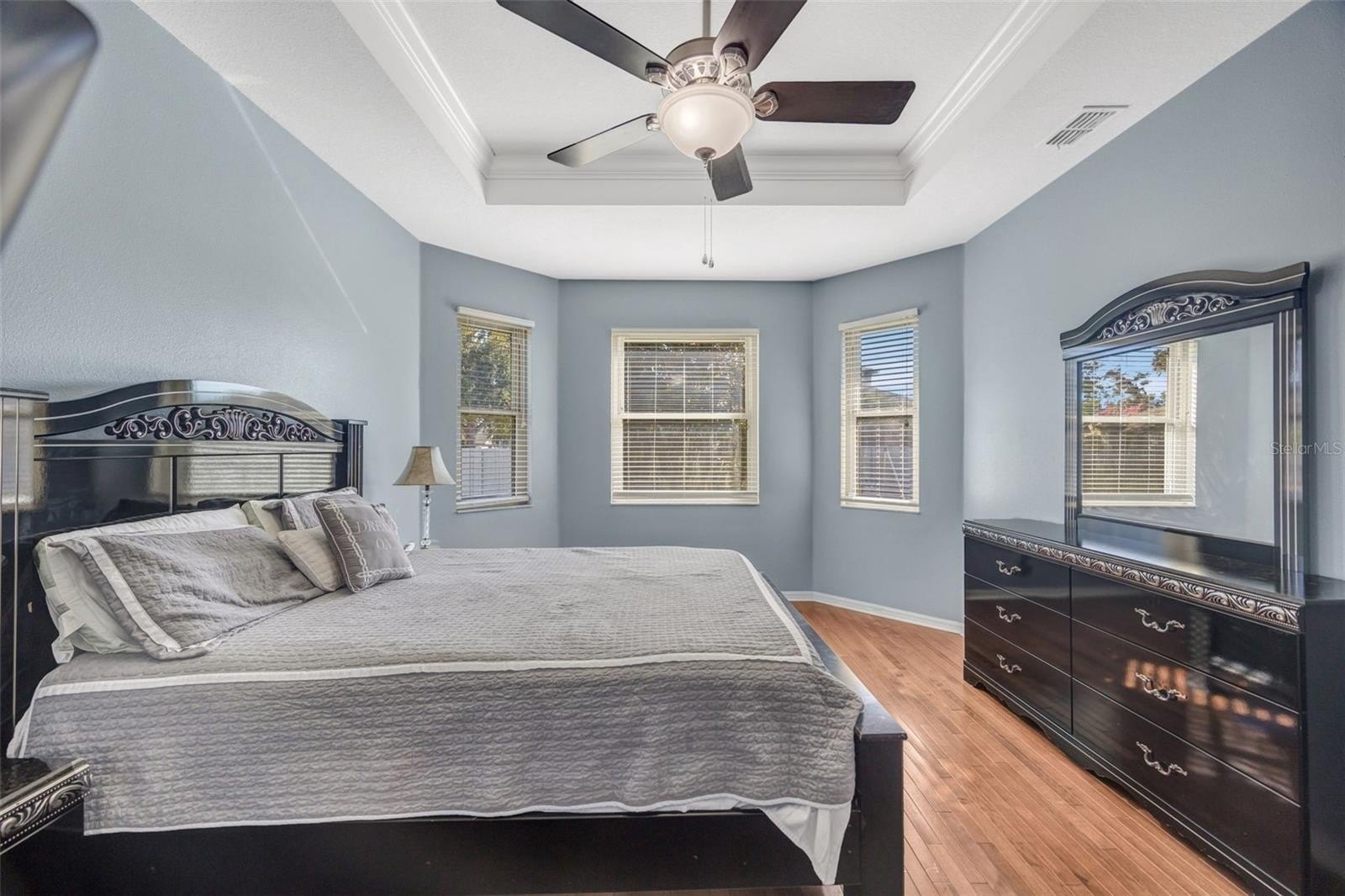 Inside, the open and flowing floor plan welcomes you with an expansive living area that seamlessly connects to the chef’s kitchen—complete with stainless-steel appliances, ample cabinetry, a center island, and views of the covered lanai, perfect for indoor-outdoor entertaining. The spacious primary suite features a private bath and walk-in closet, while one of the secondary bedrooms can serve as a flex space, den, or playroom (note: no closet). The three-car garage has been partially converted, with one bay transformed into a fully finished home office featuring a mini-split A/C unit, ideal for remote work or a small business setup. The remaining garage space offers epoxy flooring and excellent storage. Additional upgrades include a 2-year-old central A/C system, high-impact sliding glass door, fenced backyard, smart Deko light switches throughout, and a lush yard offering plenty of space to relax or play. Located just minutes from top-rated Hillsborough County schools, shopping, dining, medical services, and major roadways, this home provides the perfect balance of convenience and comfort.