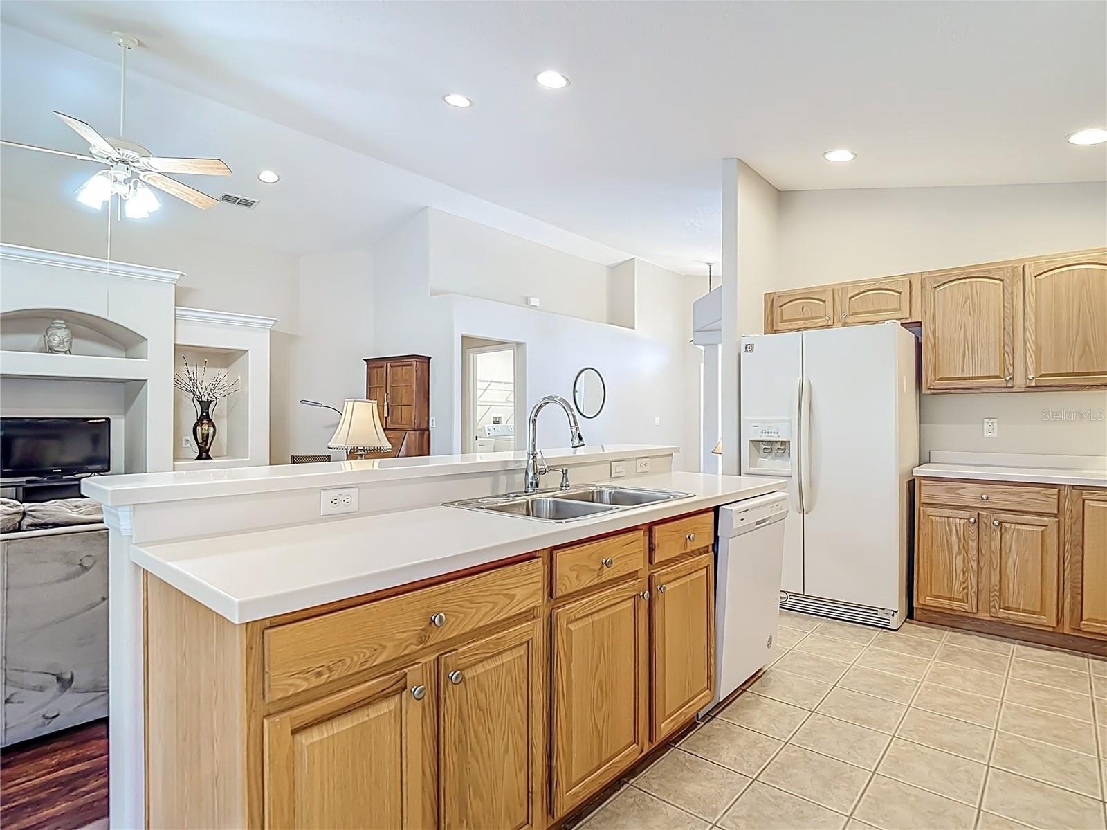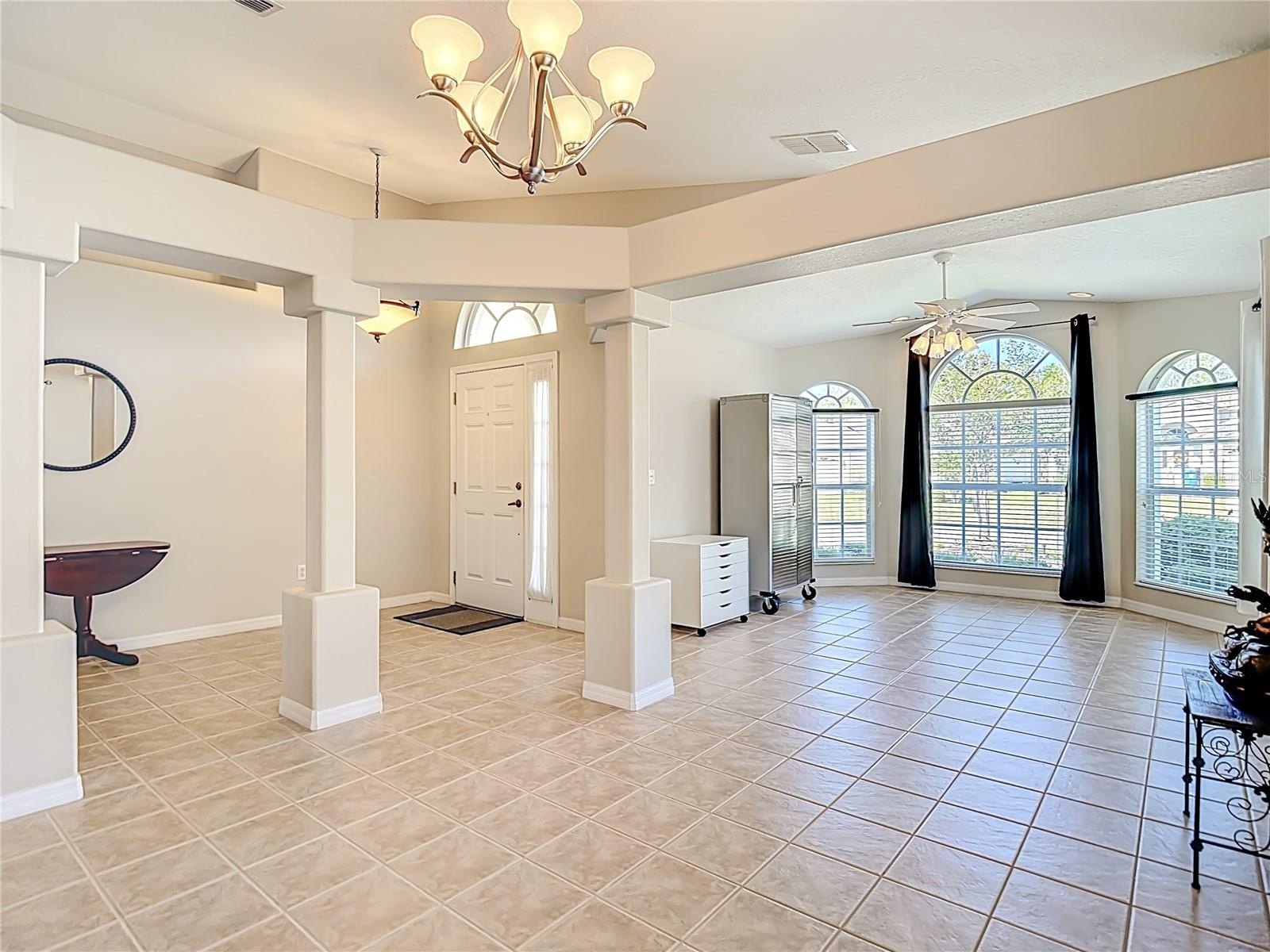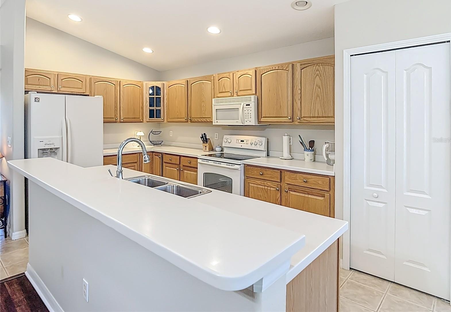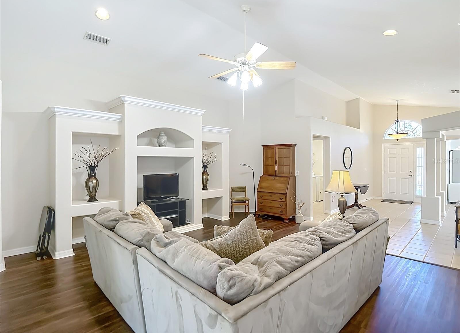 Spring Hill - The Wellington at Seven Hills is an active 55+ community where resort-style living meets everyday comfort. This beautifully maintained 3-bedroom, 2-bath Bluebird model offers 1,991 sq. ft. of inviting living space with high ceilings that create an open and airy atmosphere. From the moment you arrive, you’ll appreciate the home's great curb appeal, lush landscaping, and peaceful setting, which backs up to a tree-lined green space—perfect for enjoying morning coffee or soaking in the Florida vibes from your screened lanai. Step inside to discover a light-filled open floor plan featuring both formal and informal living areas. The front space serves as a formal living and dining area but is currently used as an artist’s studio. The spacious family room includes a built-in entertainment center and flows seamlessly into the kitchen, which is equipped with a breakfast bar, closet pantry, and cozy dining nook. The primary suite serves as a private retreat, featuring an en suite bath, plenty of natural light, and a spacious walk-in closet. The private bath boasts a dual sink vanity, a relaxing garden tub, and a separate walk-in shower. Two guest bedrooms and a full guest bath provide ample space for visitors. Additional features include a screened two-car garage, a water softener, an upgraded storm door, as well as wiring for a generator providing peace of mind - even though this area is high and dry (X Flood Zone) with no issues from the recent storms. The Wellington at Seven Hills community offers unparalleled amenities, including a beautiful clubhouse, a year-round heated pool and spa, an on-site bar and grill, pickleball and tennis courts, bocce ball, billiards, a library, a computer center, and countless social events and clubs. The HOA covers lawn maintenance, exterior pest control, cable, internet, and exterior painting every ten years, making this a truly worry-free lifestyle. Recent updates include stunning new vinyl plank flooring in the family and bedroom areas, fresh interior paint (2023), a new HVAC system (2024), and a new roof (5/2025). Conveniently located near shopping, restaurants, and entertainment. Come experience this wonderful community and discover the lifestyle you deserve!