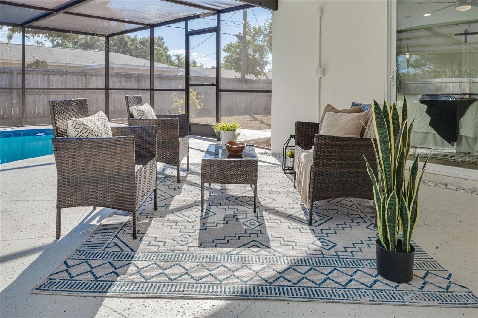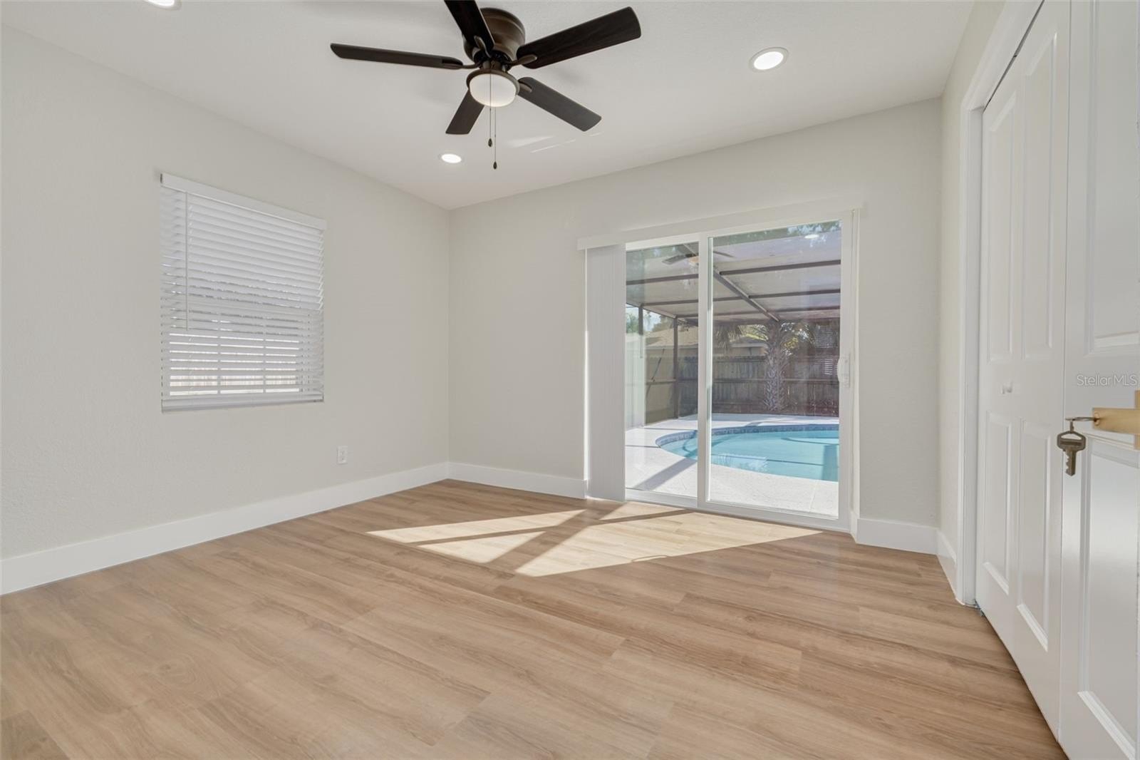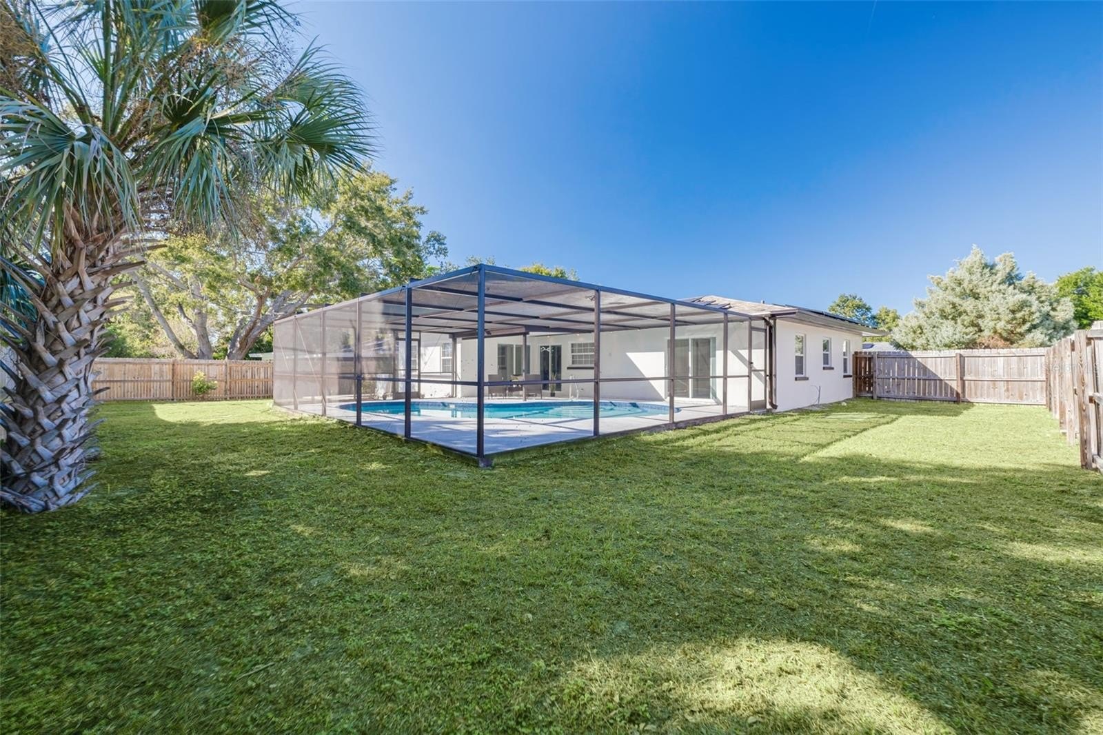 From the living room and primary bedroom, sliding glass doors open to your own tropical oasis—a screened-in, in-ground swimming pool with a covered deck and spacious, fully fenced backyard. It’s truly an entertainer’s paradise, perfect for relaxing, enjoying Gulf breezes, or hosting gatherings. There’s plenty of room for kids and pets to play.