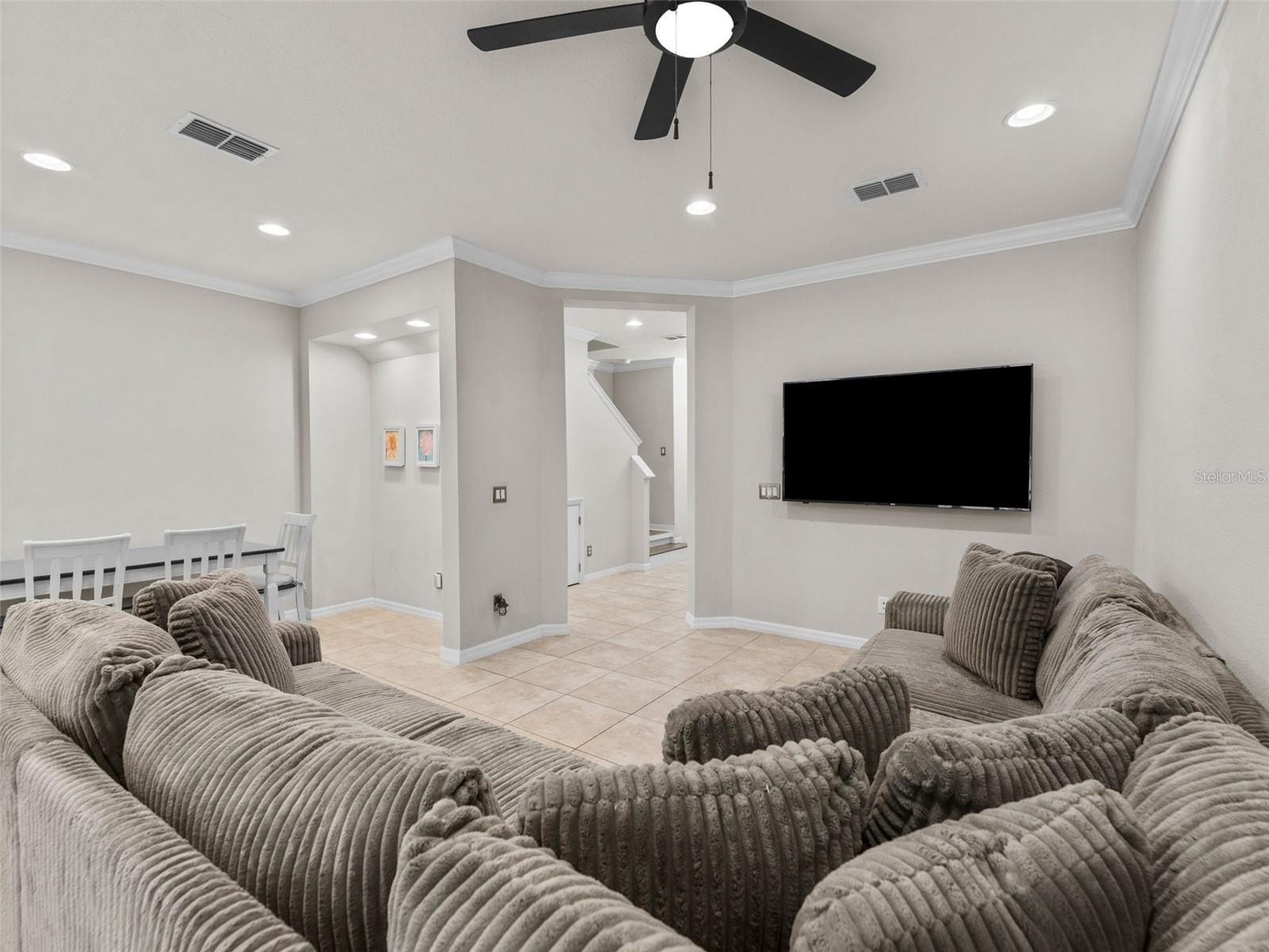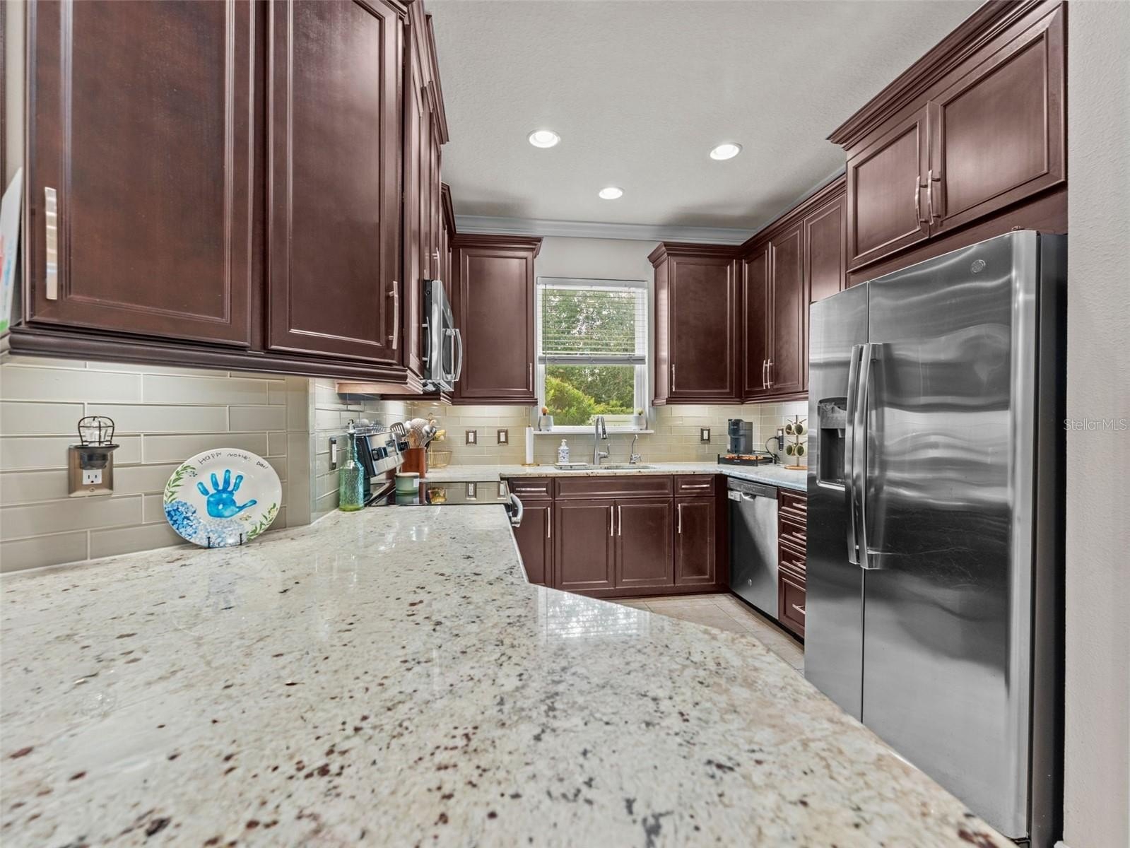 RARE FIND! LIMITED INVENTORY! SELLER'S ARE OFFERING $5,000.00 IN CONCESSIONS TO HELP BUYERS WITH CLOSING COSTS! Welcome home to this beautifully upgraded 3-bedroom, 2.5-bath townhome that blends modern comfort with timeless style. From the moment you step inside, you’ll be greeted by an open-concept floor plan filled with natural light and elegant finishes throughout. The spacious living area features upgraded flooring, recessed lighting, peaceful, private view—perfect for relaxing or entertaining. The Stunning chef’s kitchen boasts upgraded finishes, large overhang breakfast bar, stainless steel appliances, under mounted sink, top tier granite countertops, designer glass tile backsplash, 42 inch cabinetry, and cabinet under lighting! Upstairs, the primary suite offers a tranquil retreat complete with a walk-in closet and a spa-inspired ensuite bath featuring dual vanities and a glass-enclosed shower. Two additional bedrooms share a well-appointed full bath, while a convenient upstairs laundry room adds everyday ease. The stairs and second floor have been upgraded with WOOD and LUXURY Vinyl Flooring (2025). Enjoy your morning coffee or evening unwind on the private patio overlooking lush greenery—no rear neighbors for added privacy. Additional highlights include a finished garage with Epoxy glazed flooring, NEW Whole House Dehumidifier and Halo Air Purification System. Low HOA fee, with NO CDD fee, includes full-service lawn maintenance, water, trash, playground, and community reserves. Conveniently located near grocery stores, restaurants, shopping, entertainment, major highways, Tampa Premium Outlets and a NEW Magnet school is being built next door. Make your appointment today!