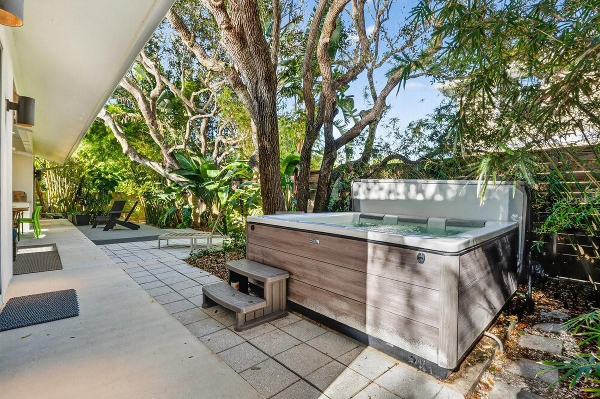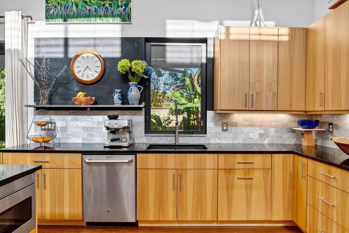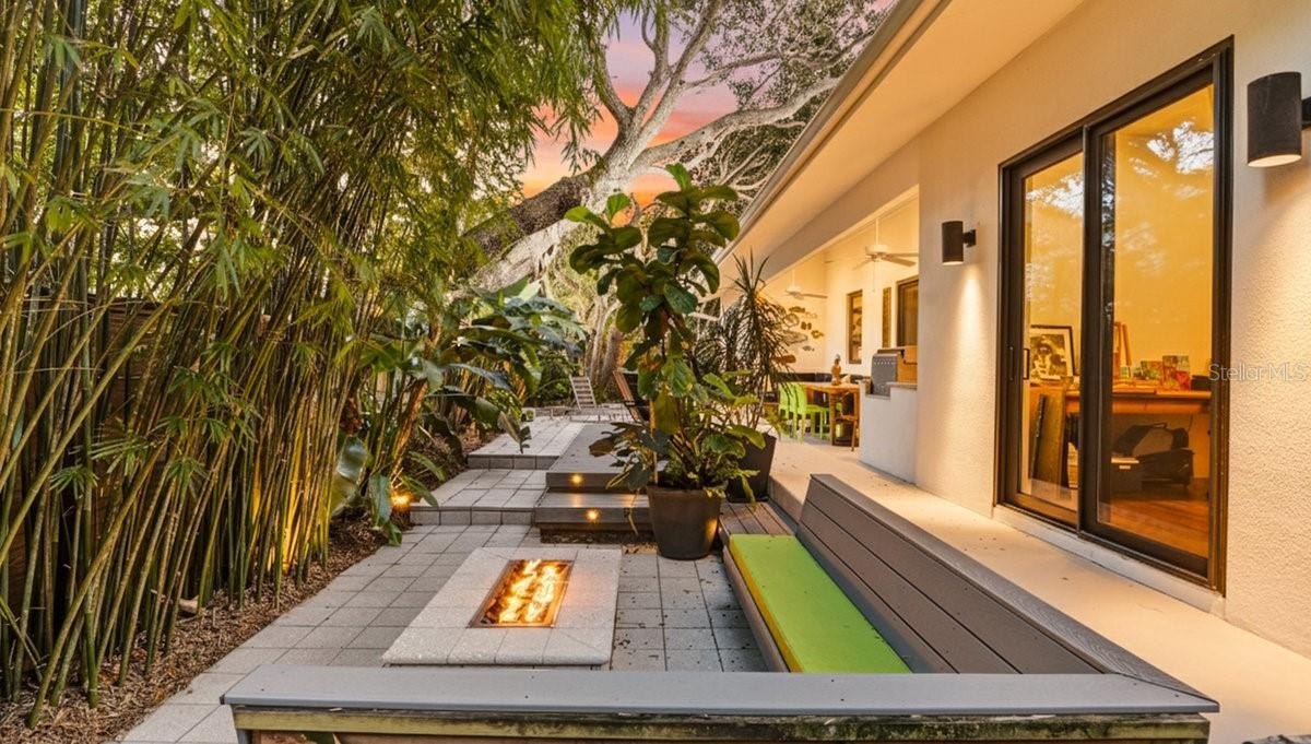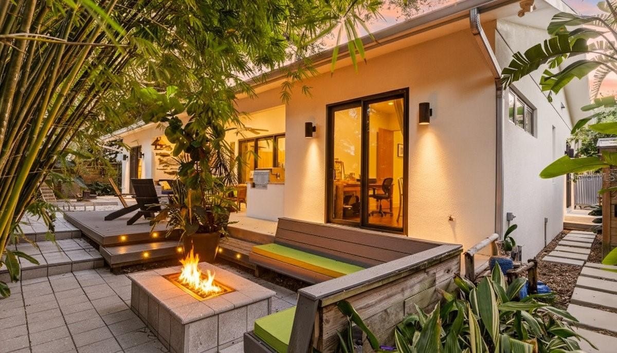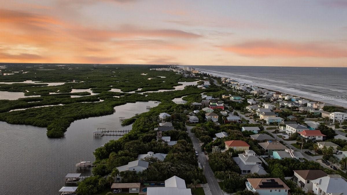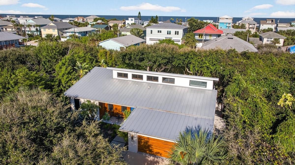 For the first time ever, this custom-built, one level modern coastal home in the desirable Bethune Beach community of New Smyrna Beach is available—just two short blocks to the beach walkover and directly across from the Intracoastal Waterway, sitting proudly on a high-elevation lot. Designed by its owners, a naval architect/engineer and an artist, in collaboration with local architect Ian Ratliff, this 2016 masterpiece embodies harmony between modern architecture and the surrounding natural landscape. Built to Miami-Dade hurricane standards, the all-block residence features a heavy-duty aluminum roof, hurricane-rated windows and doors, and an elevated, maintenance-free design. The 3BR/2BA interior showcases Brazilian Rosewood floors, 8’ solid oak doors, stainless steel hardware, soaring ceilings, custom hickory cabinetry, quartz counters, marble and ceramic tile baths, clerestory windows, and custom wood blinds, lighting and drapes. The spacious open-concept kitchen, dining, and living area features LED lighting, a tongue-and-groove ceiling, quartz counters, GE profile appliances, induction cooktop, under-cabinet lighting, and dual sliders opening to a covered lanai for seamless indoor-outdoor living. The primary suite includes direct access to the backyard hot tub and shower, a custom walk-in closet, and a luxurious marble bath with a floating vanity, quartz counters, and Kohler fixtures. Guest bedrooms offer private access to the enclosed outdoor shower, sauna, or garden, one room featuring a Murphy bed, hidden in a large closet, which can double as an office or art space. The oversized garage accommodates up to 3 vehicles with a lift (available), epoxy flooring, 200-amp service, custom steel cabinetry, a work sink, and a dual-fuel generator with a propane hookup. Off the garage, double doors open to a workbench work area with a retractable lit awning. Outdoor living shines with multiple decks and paver areas, a covered lanai with built-in grill and granite counter, Trex decking, gas firepit with custom seating, programmable lighting and irrigation, and a heavy-duty pressure treated fencing with aluminum powder coated posts. This professionally landscaped yard was chosen for the 2025 Garden Club Tour. The home also includes a new 2-stage RUUD AC with advanced filtration, SimpliSafe and Ring security systems, and drawings by Ian Ratliff for a potential second-story expansion. A rare, impeccably crafted, turn-key home that reflects thoughtful design, artistry, and engineering—perfectly blending modern comfort with the relaxed beauty of coastal living. Being sold with most furniture available with exception of a short ‘Does Not Convey’ list). SEE FEATURES LIST. ALL INFORMATION IS ASSUMED ACCURATE BUT NOT GUARANTEED. ALL MEASUREMENTS ARE APPROXIMATE. BUYERS AND THEIR AGENTS SHALL VERIFY ANY INFORMATION DEEMED IMPORTANT TO THEM.