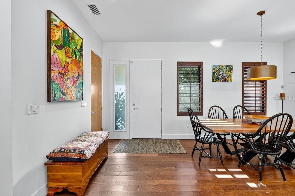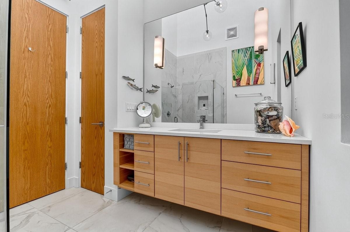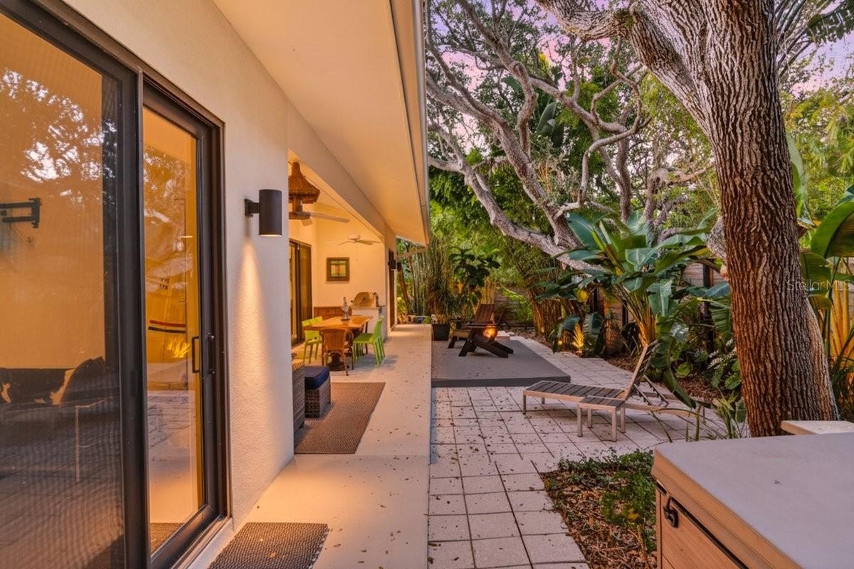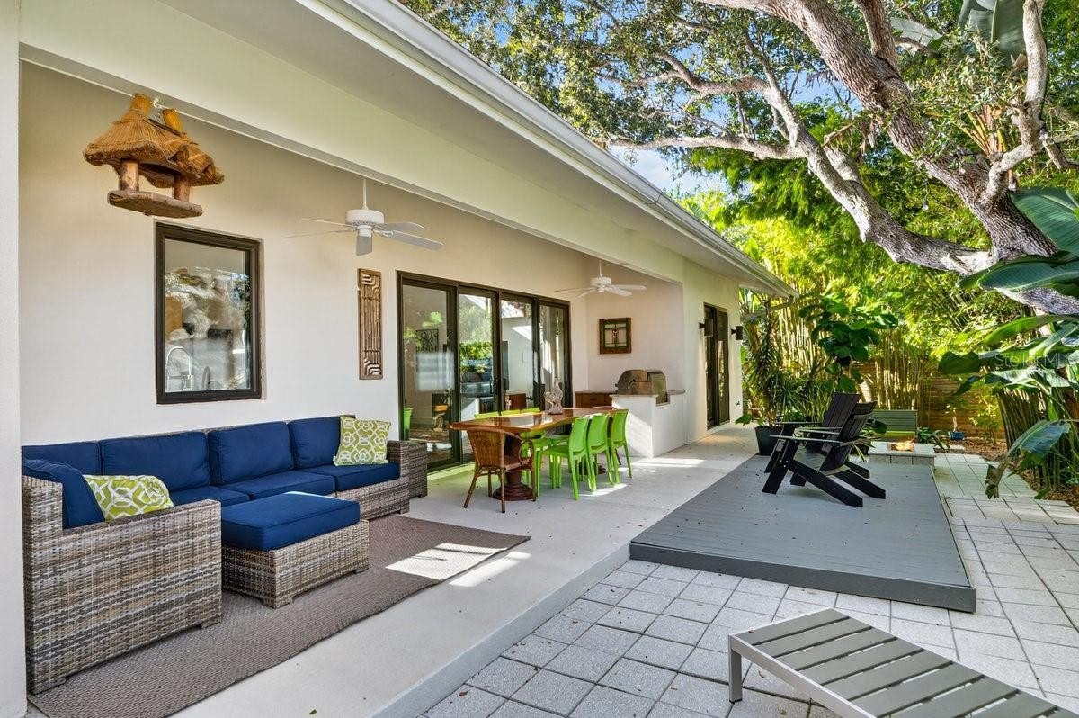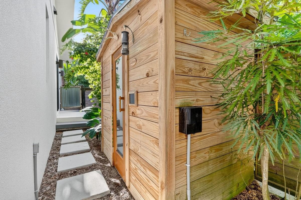 For the first time ever, this custom-built, one level modern coastal home in the desirable Bethune Beach community of New Smyrna Beach is available—just two short blocks to the beach walkover and directly across from the Intracoastal Waterway, sitting proudly on a high-elevation lot. Designed by its owners, a naval architect/engineer and an artist, in collaboration with local architect Ian Ratliff, this 2016 masterpiece embodies harmony between modern architecture and the surrounding natural landscape. Built to Miami-Dade hurricane standards, the all-block residence features a heavy-duty aluminum roof, hurricane-rated windows and doors, and an elevated, maintenance-free design. The 3BR/2BA interior showcases Brazilian Rosewood floors, 8’ solid oak doors, stainless steel hardware, soaring ceilings, custom hickory cabinetry, quartz counters, marble and ceramic tile baths, clerestory windows, and custom wood blinds, lighting and drapes. The spacious open-concept kitchen, dining, and living area features LED lighting, a tongue-and-groove ceiling, quartz counters, GE profile appliances, induction cooktop, under-cabinet lighting, and dual sliders opening to a covered lanai for seamless indoor-outdoor living. The primary suite includes direct access to the backyard hot tub and shower, a custom walk-in closet, and a luxurious marble bath with a floating vanity, quartz counters, and Kohler fixtures. Guest bedrooms offer private access to the enclosed outdoor shower, sauna, or garden, one room featuring a Murphy bed, hidden in a large closet, which can double as an office or art space. The oversized garage accommodates up to 3 vehicles with a lift (available), epoxy flooring, 200-amp service, custom steel cabinetry, a work sink, and a dual-fuel generator with a propane hookup. Off the garage, double doors open to a workbench work area with a retractable lit awning. Outdoor living shines with multiple decks and paver areas, a covered lanai with built-in grill and granite counter, Trex decking, gas firepit with custom seating, programmable lighting and irrigation, and a heavy-duty pressure treated fencing with aluminum powder coated posts. This professionally landscaped yard was chosen for the 2025 Garden Club Tour. The home also includes a new 2-stage RUUD AC with advanced filtration, SimpliSafe and Ring security systems, and drawings by Ian Ratliff for a potential second-story expansion. A rare, impeccably crafted, turn-key home that reflects thoughtful design, artistry, and engineering—perfectly blending modern comfort with the relaxed beauty of coastal living. Being sold with most furniture available with exception of a short ‘Does Not Convey’ list). SEE FEATURES LIST. ALL INFORMATION IS ASSUMED ACCURATE BUT NOT GUARANTEED. ALL MEASUREMENTS ARE APPROXIMATE. BUYERS AND THEIR AGENTS SHALL VERIFY ANY INFORMATION DEEMED IMPORTANT TO THEM.
