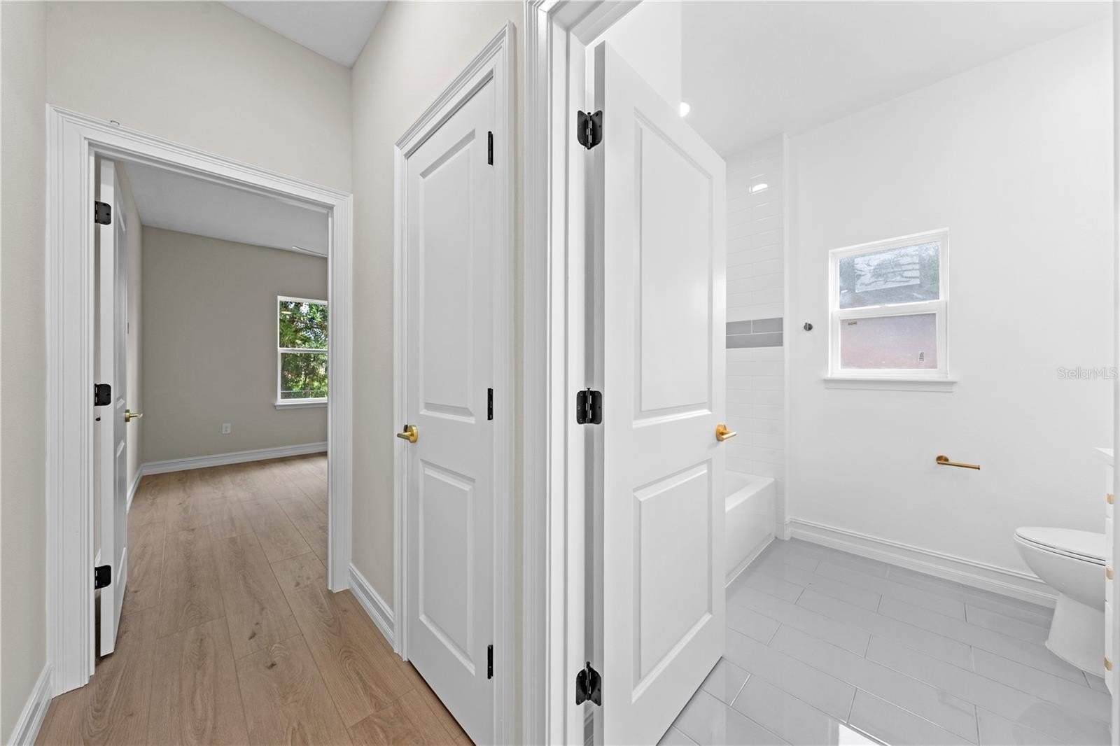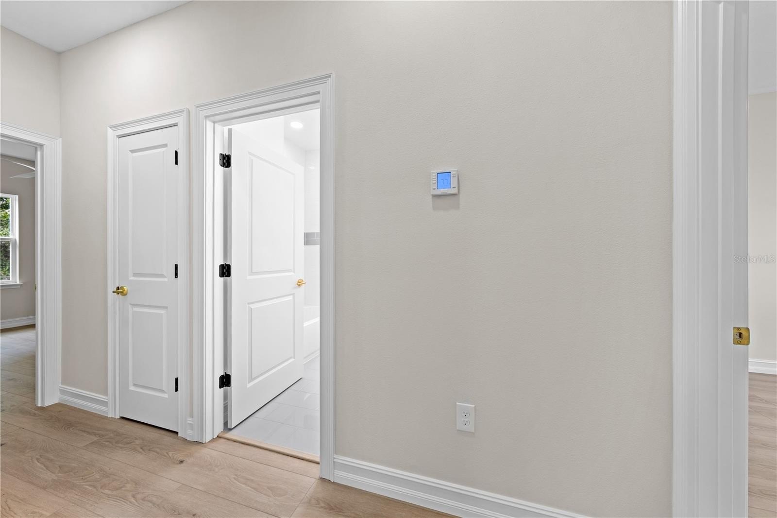 linen closets, one in the master and one in the hallway where the guest bath is. The Primary suite features a 5 x 13 walk in closet, a