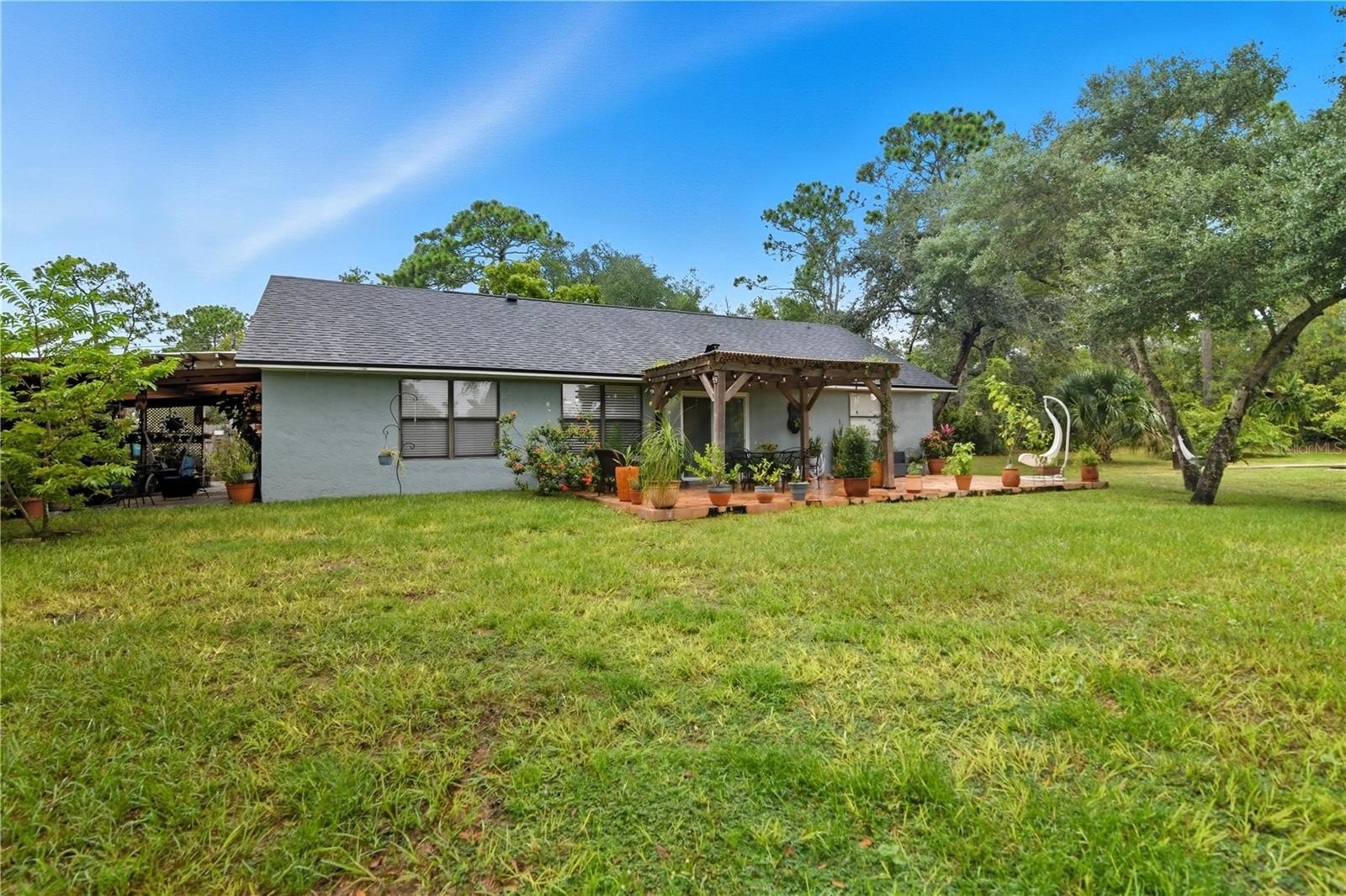 Welcome to this charming family home tucked away at the end of a quiet dead-end street! You’ll love the beautifully updated kitchen with new cabinets, granite countertops, and smart Samsung appliances — perfect for family meals and gatherings. The home features tile floors throughout, including brand-new tiles in all bedrooms, plus remodeled guest bathroom for a fresh, modern touch. Enjoy peace of mind with a new roof, new A/C, new water heater (2025), and a paid-off home water system. The oversized lot offers plenty of room to play, pets to run around, and parking for extra vehicles, a boat, or toys. zoned for chickens or farm animals. The fenced backyard includes a garden lanai ideal for relaxing or entertaining and fruit trees and more. Additional perks include a survey, recently pumped septic system, and a permitted oversized port structure ready to be built out for more living space. The adjacent lot is also available if you’d like to expand your property. A wonderful home with space, updates, and comfort for the whole family!