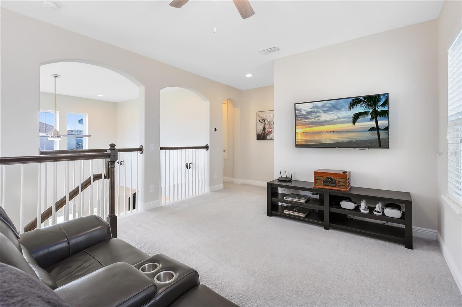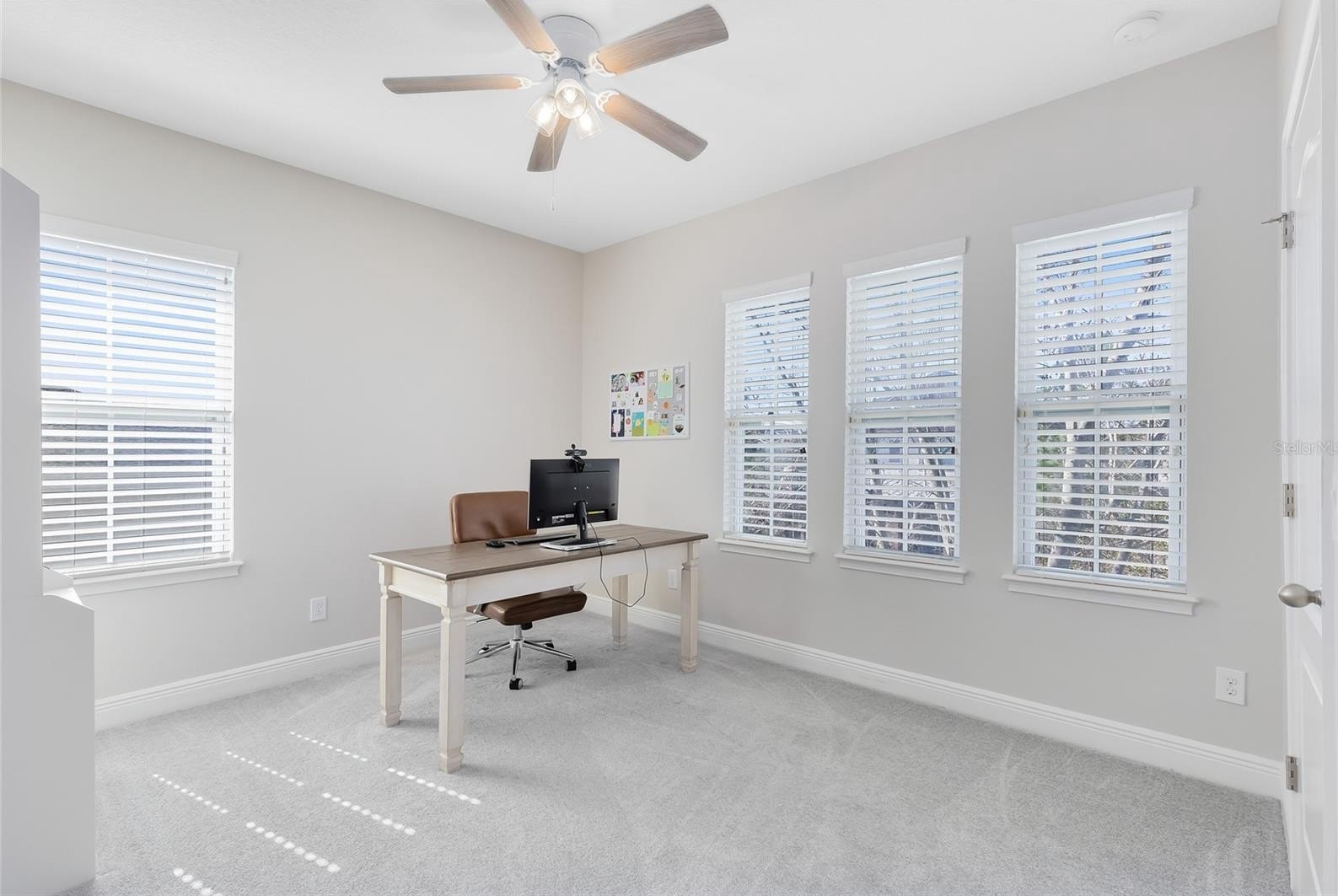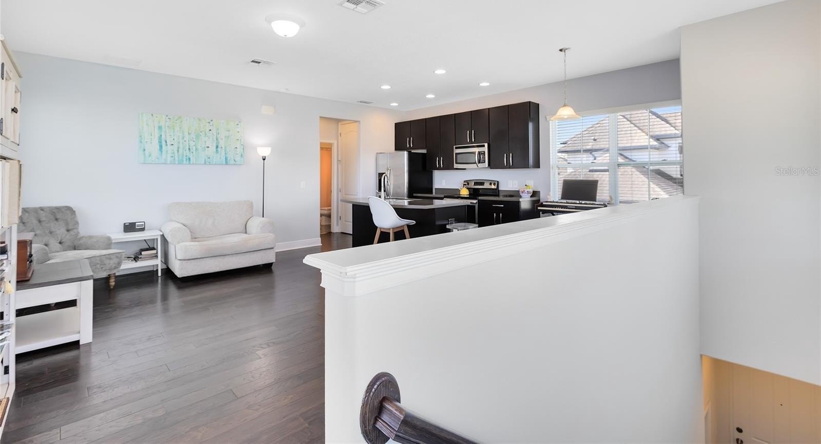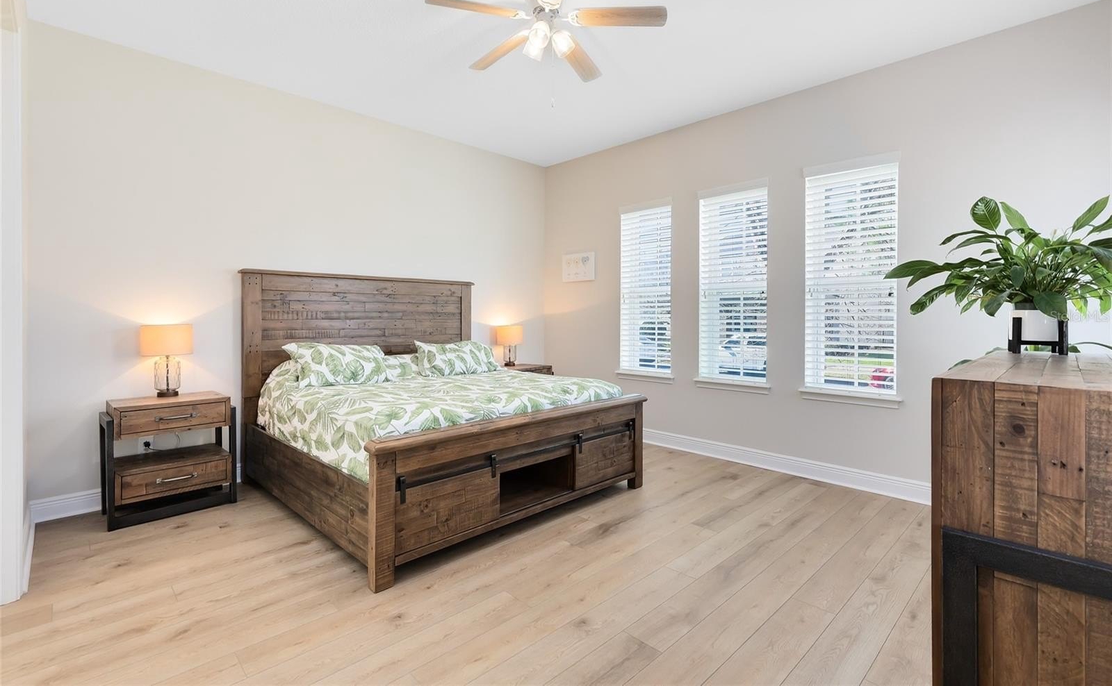 Inside, a fresh, modern palette and white oak-style LVP flooring flow seamlessly throughout the first floor, complementing the open-concept layout and upgraded finishes. The ground-level primary suite enhances accessibility and comfort, while the sun-filled two-story great room impresses with large windows that bathe the space in natural light. The chef’s kitchen showcases pristine quartz countertops, a spacious island, a gourmet wall oven, and designer lighting—ideal for both casual meals and formal entertaining.