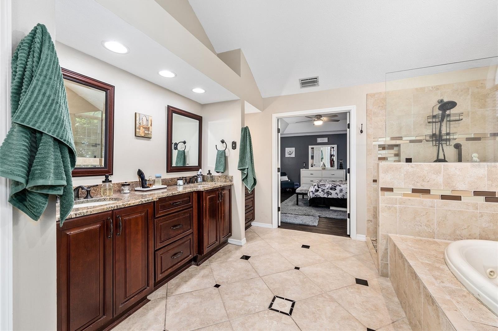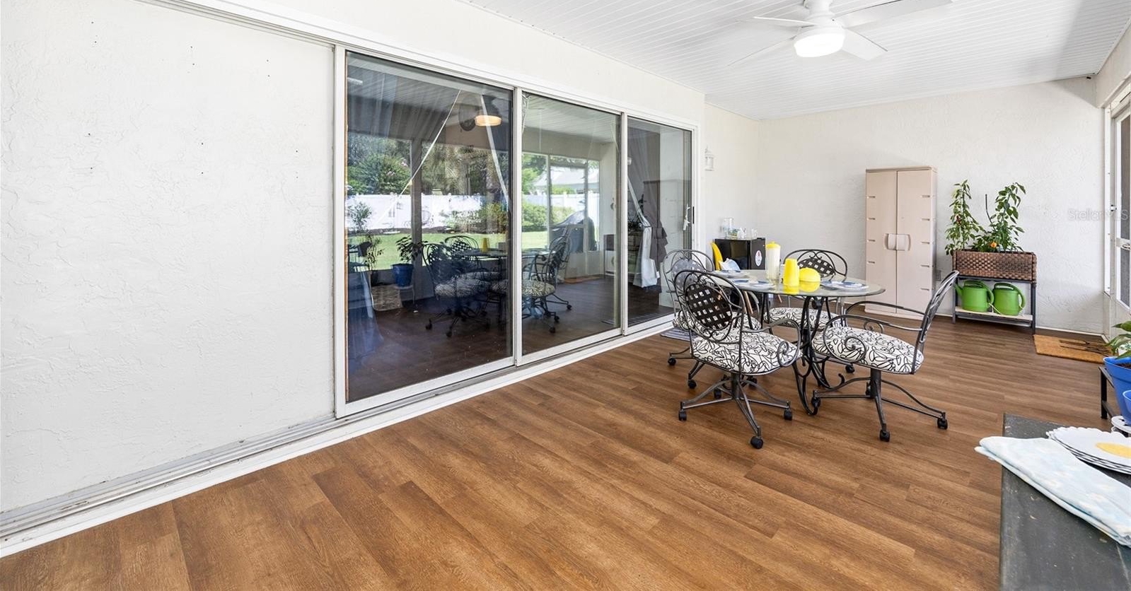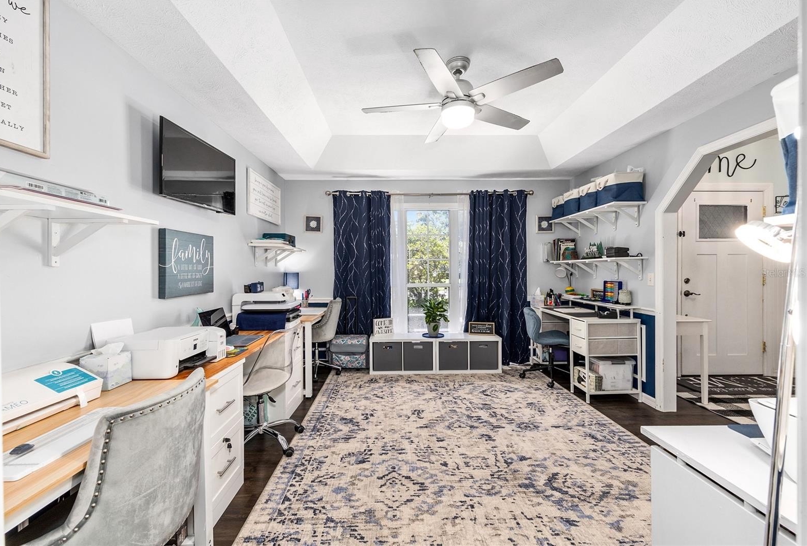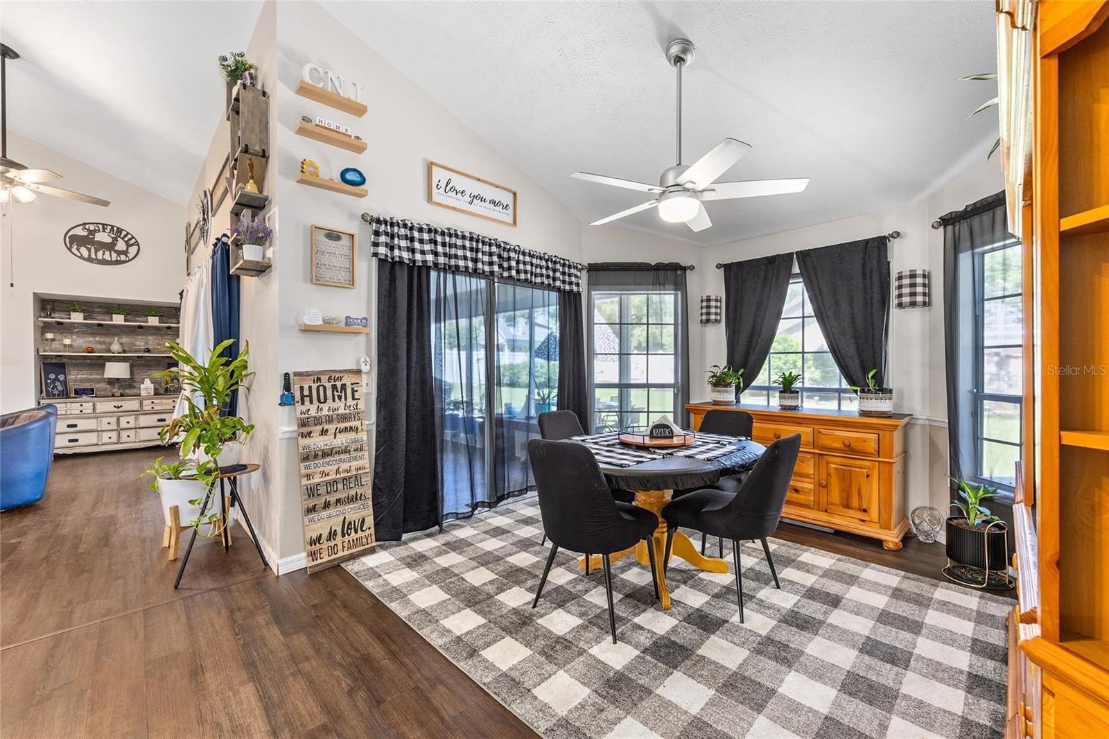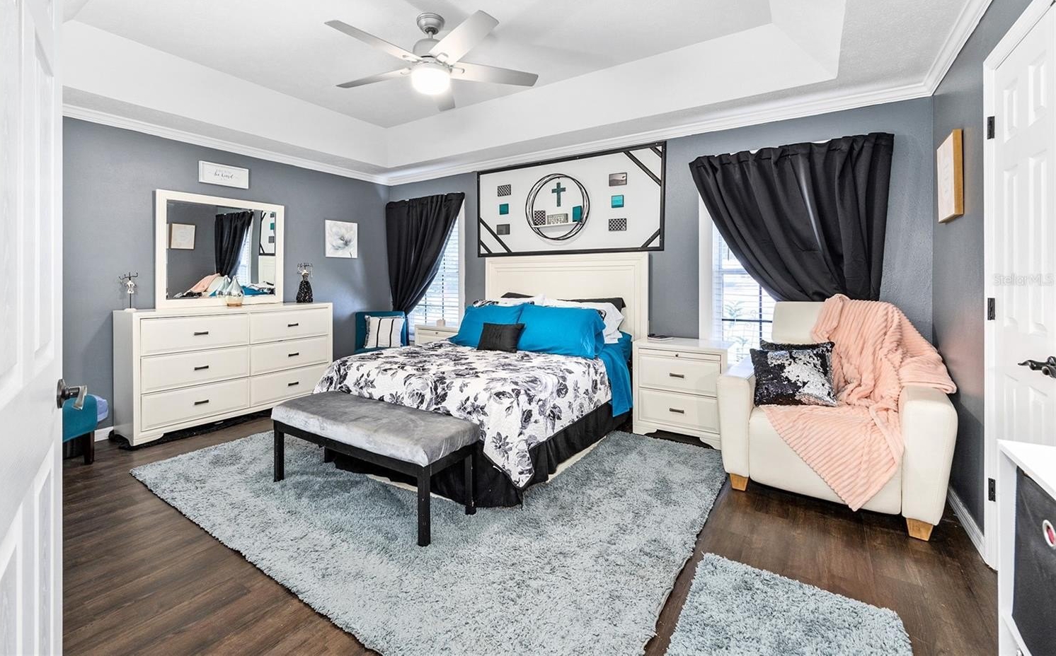 Stylish and spacious 4-bedroom, 3-bath home on a landscaped corner lot with vinyl fencing, offering both comfort and function. Inside, enjoy soaring ceilings, a decorative fireplace, and an open-concept design that flows seamlessly from the granite kitchen with double oven into the living and dining areas. A versatile bonus room makes the perfect game room, theater, or flex space, while the large dining room is currently set up as an office. The primary suite features tray ceilings, a walk-in tiled shower, makeup vanity, and a private water closet. Accessibility is thoughtfully designed with wider doors and upgraded toilets. Recent updates include a new roof, HVAC, and water heater (all 2023) plus a UV air filtration system for peace of mind. Relax year-round in the screened lanai overlooking the backyard. Beautifully maintained with hardwood beneath vinyl plank, this home blends modern updates with timeless charm.
