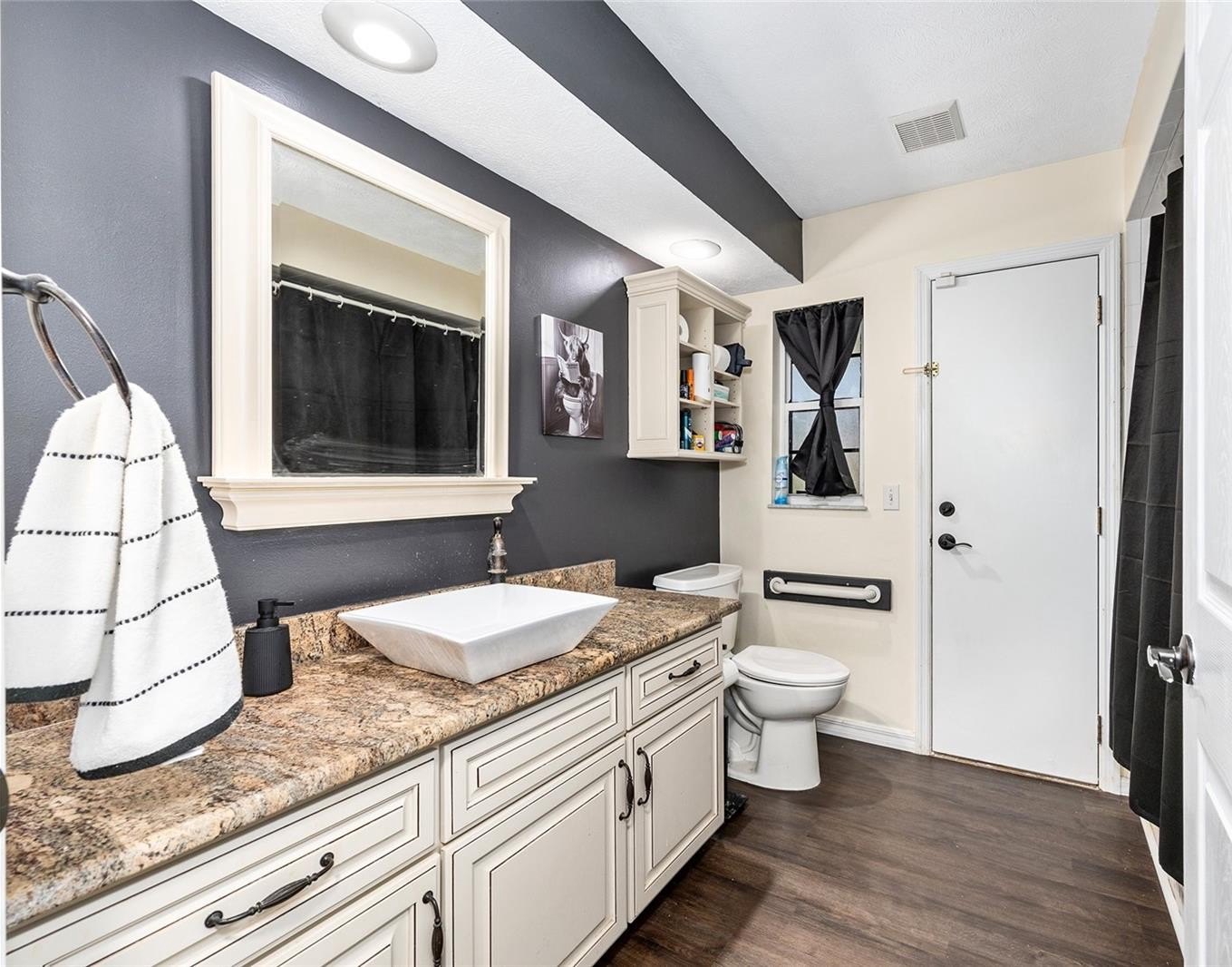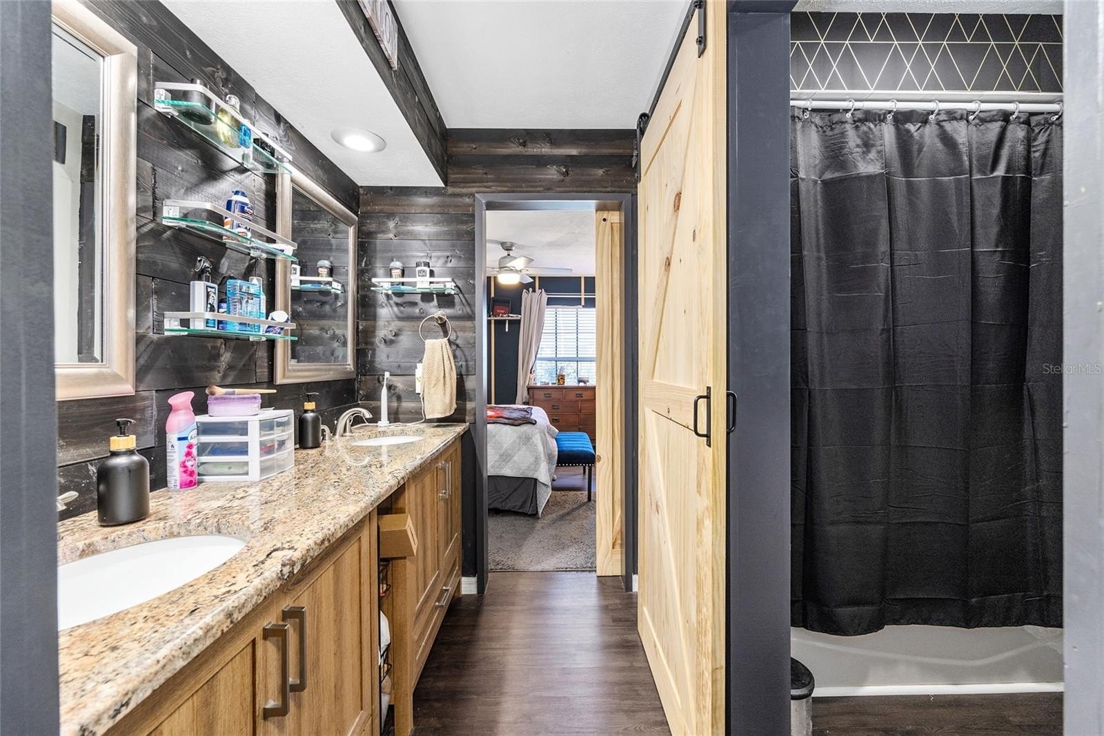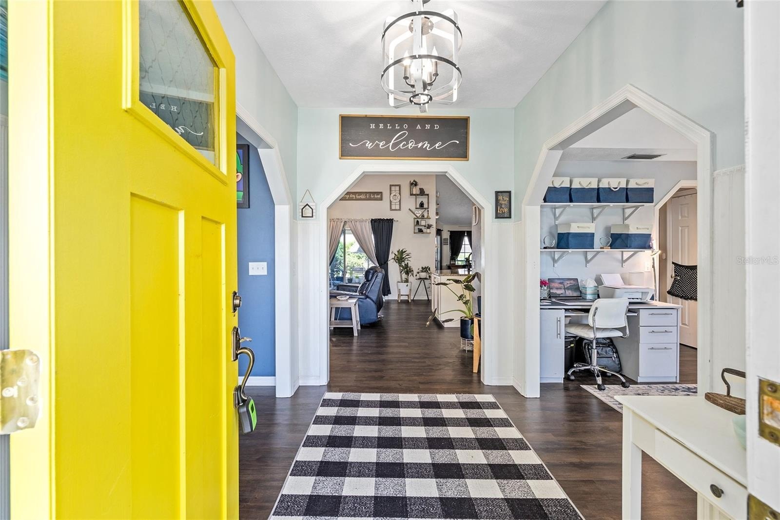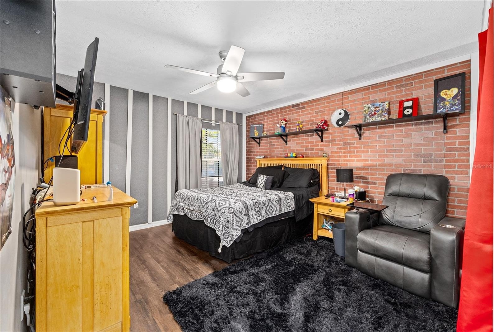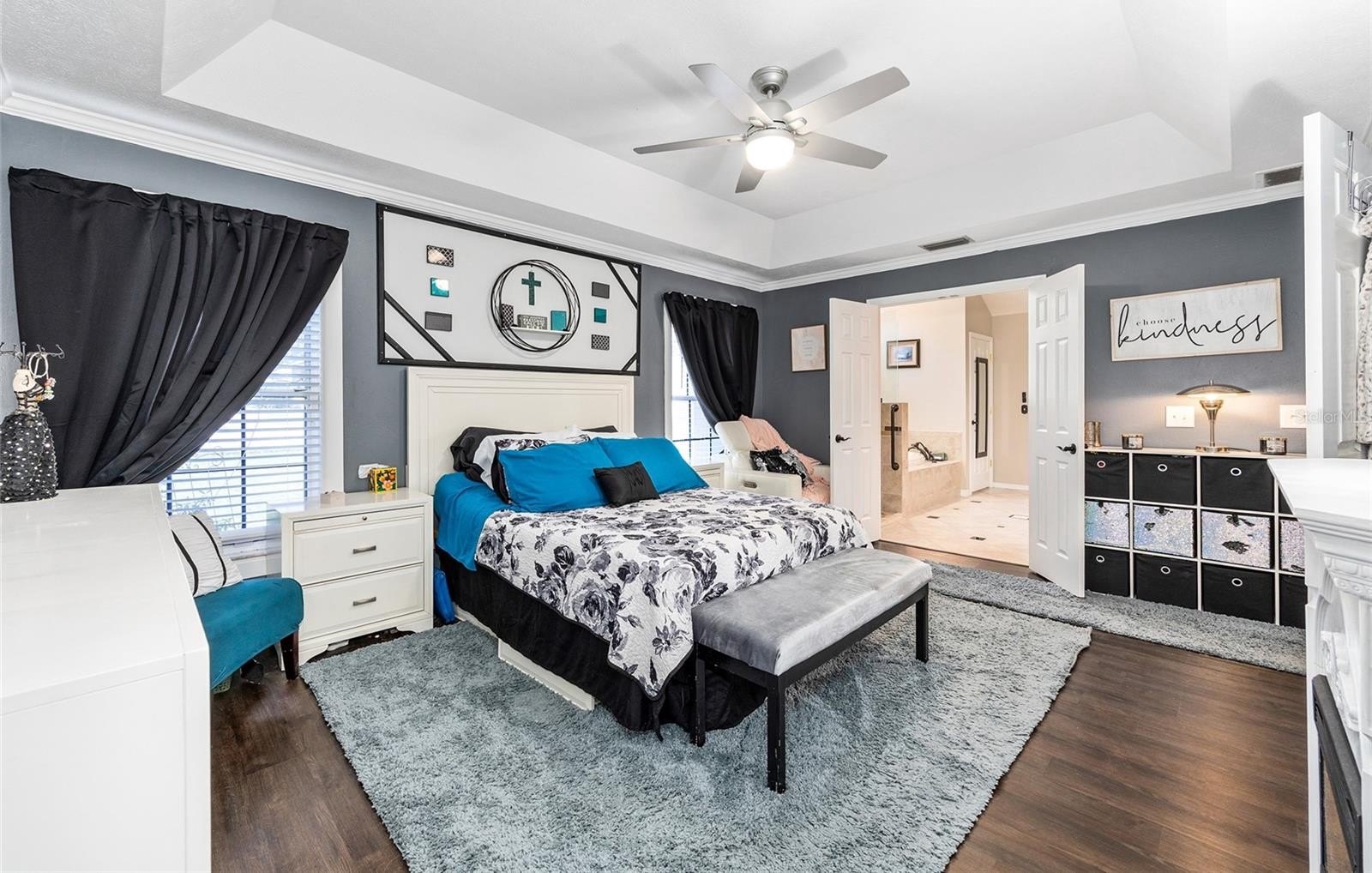 Stylish and spacious 4-bedroom, 3-bath home on a landscaped corner lot with vinyl fencing, offering both comfort and function. Inside, enjoy soaring ceilings, a decorative fireplace, and an open-concept design that flows seamlessly from the granite kitchen with double oven into the living and dining areas. A versatile bonus room makes the perfect game room, theater, or flex space, while the large dining room is currently set up as an office. The primary suite features tray ceilings, a walk-in tiled shower, makeup vanity, and a private water closet. Accessibility is thoughtfully designed with wider doors and upgraded toilets. Recent updates include a new roof, HVAC, and water heater (all 2023) plus a UV air filtration system for peace of mind. Relax year-round in the screened lanai overlooking the backyard. Beautifully maintained with hardwood beneath vinyl plank, this home blends modern updates with timeless charm.