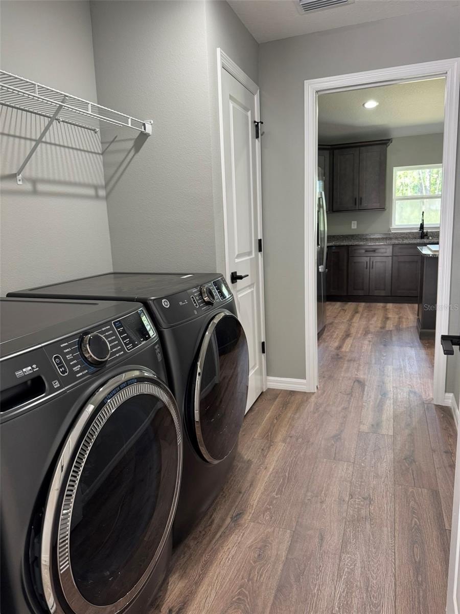 Luxury vinyl tile flooring extends throughout the home, providing low-maintenance durability. Additional features include a well-appointed interior laundry room complete with a linen closet and brand-new front loader GE washer and dryer, a generously sized two-car garage for added convenience, and a hard to find standard septic system - not an aerobic septic system! This home is ready to welcome its first owners!