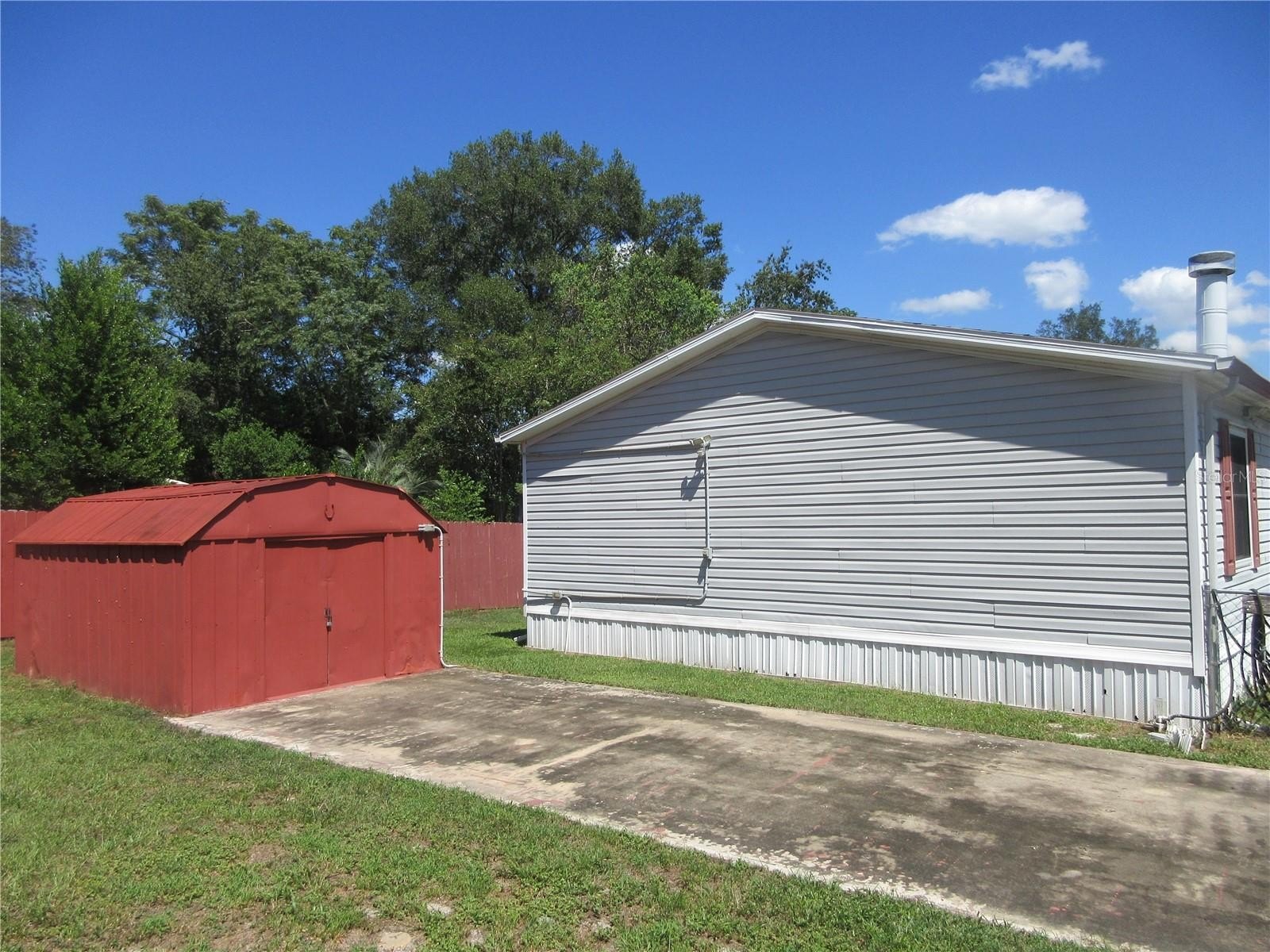 Bright, Cheerful, and Fabulous light throughout! That best describes this mint condition spacious 3/2 2006 Fleetwood 27x48 Doublewide Mobile Home sitting on a beautiful fenced corner paved road .23 acre lot in the Ocala National Forest. Outside features a 2024 entrance ramp, concrete drive, breezy 7x31 covered patio, 11x14 sundeck, 10x14 shed, 2006 central A/C heat unit, community water, septic pumped in 2024 and a new 2024 shingle 30-year roof! Inside, it features a huge country kitchen with a tile counter backsplash, tiled eat-in kitchen Island with front and side storage, pantry,dining area, and laundry area with a shelved closet. Inside it also features an 18x21 living room with a cozy 7-foot wide stone wood burning fireplace and built-in entertainment center. The master bedroom features a 7x7 walk-in closet with a huge 10x12 master bath including a walk-in shower with twin sinks, 2024 tile floor and 6 foot dressing mirror. The guest bath tub includes a handicap grab bar , range, refrigerator, dishwasher, entertainment center, folding table, 3 2024 ceiling fans, chandelier, desk, all blinds & curtains , outdoor table and 6 chairs, ego push mower, weed-eater and 6 batteries. This home is move-in ready. A great home at a great price of just $170,000! Hurry! The seller will pay a portion of the buyers' closing cost. The amount to be determined. Home is located in the Ocala National Forest which affords you almost a ½ million acres of Forest to roam, 600 lakes, 2 rivers, Juniper Springs, Silver Glen Springs, Salt Springs, Swimming, Skiing, Big BASS Fishing, Boating, Camping, Hiking, Horse back riding and some of the best ATV riding anywhere. Daytona Beach is just 1 hour away. Let the fun begin! You need it!