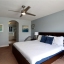 offers panoramic views of the sparkling pool and water beyond. Two bedrooms are on the first floor, ideal for guests or family members seeking easy access. As well as a