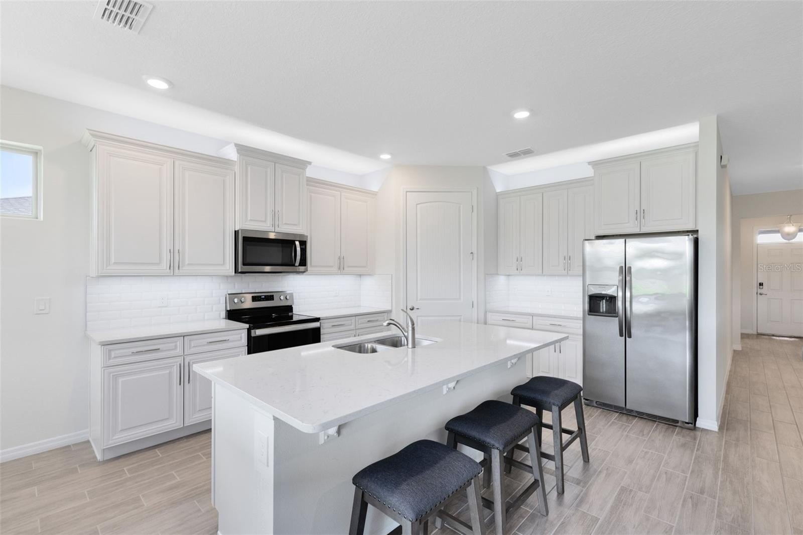 Welcome to 1456 Hopedale Place, where the seller is offering to pay 1% of the purchase price towards buyers’ closing costs. This stunning 4-bedroom, 2-bathroom home located in the highly sought-after gated community of Rosecrest in Seminole County is a move-in ready home offering an open-concept floor plan centered around a beautifully designed kitchen featuring quartz countertops, upgraded 42” upper cabinets with crown molding, under-cabinet and upper lighting, and stainless-steel appliances. The kitchen flows seamlessly into the spacious family room and dining area, with sliding glass doors that open to a covered porch overlooking a serene pond—providing tranquil views both inside and out. The versatile three-way split floor plan is ideal for a variety of living arrangements, offering both functionality and privacy. Rosecrest is a gated community that features a resort-style pool with shaded cabanas, and lawn maintenance is included—offering ease and comfort for homeowners. Just a short drive away, you'll find the charming historic district of Sanford, home to one of the area’s largest lakes, a scenic 5-mile boardwalk, a marina, and waterfront dining at upscale restaurants. Downtown Sanford also boasts a lively farmers market, unique boutique shops, art studios, and a performing arts theater.