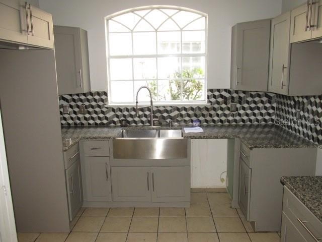 Step inside to find all-tile flooring throughout, offering both style and easy maintenance. The kitchen features granite countertops, a stainless steel sink, and ample cabinetry—ideal for home cooking and entertaining. The spacious master suite includes a walk-in closet, while the en suite bathroom boasts dual sinks and a tub/shower combo for added convenience.