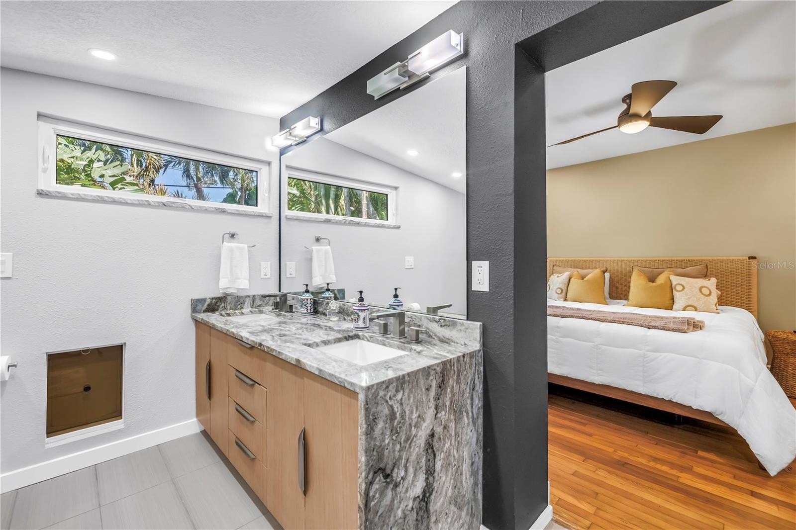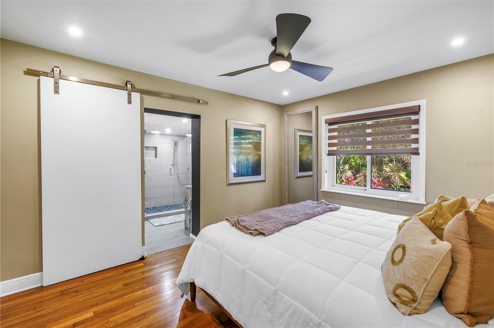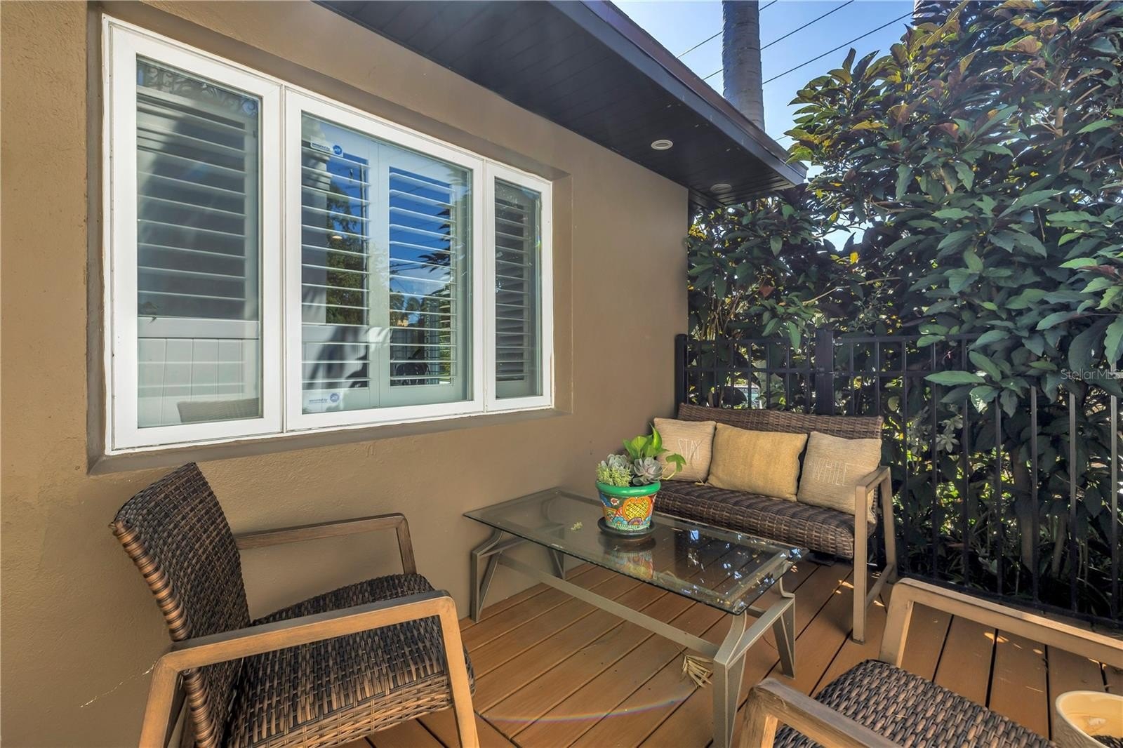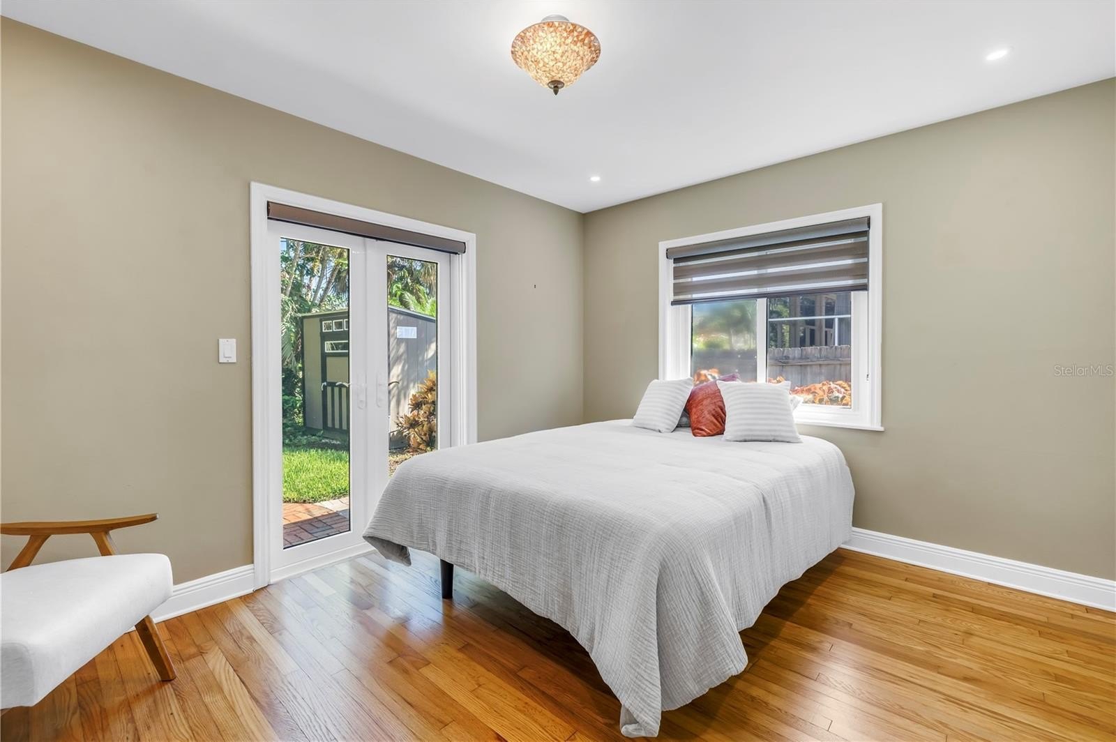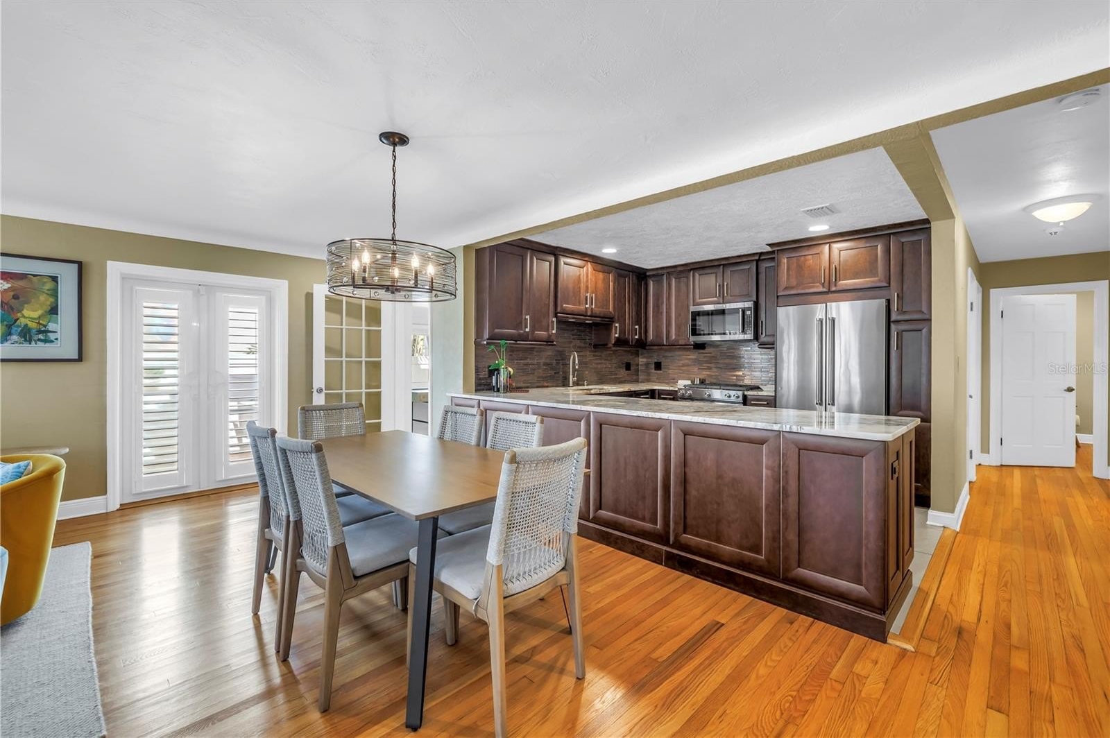 Welcome to this beautifully updated 2-bedroom, 2-bath residence in the heart of highly sought-after Snell Isle, just one block from Coffee Pot Bayou and minutes from vibrant downtown St. Petersburg. Inside, you'll find a light-filled open-concept floor plan with gleaming oak hardwood floors and custom plantation shutters throughout. The spacious living area flows seamlessly into a chef-inspired kitchen fully renovated in 2020, featuring KraftMaid soft-close shaker cabinetry, granite countertops, stainless steel appliances, and recessed lighting, perfect for entertaining or everyday living. Both bedrooms offer generous space and include cedar-lined closets with custom California Closet systems. The primary suite boasts a luxurious en-suite bath with a dual-sink waterfall-edge vanity, an oversized walk-in shower, and an additional custom walk-in closet for ample storage.