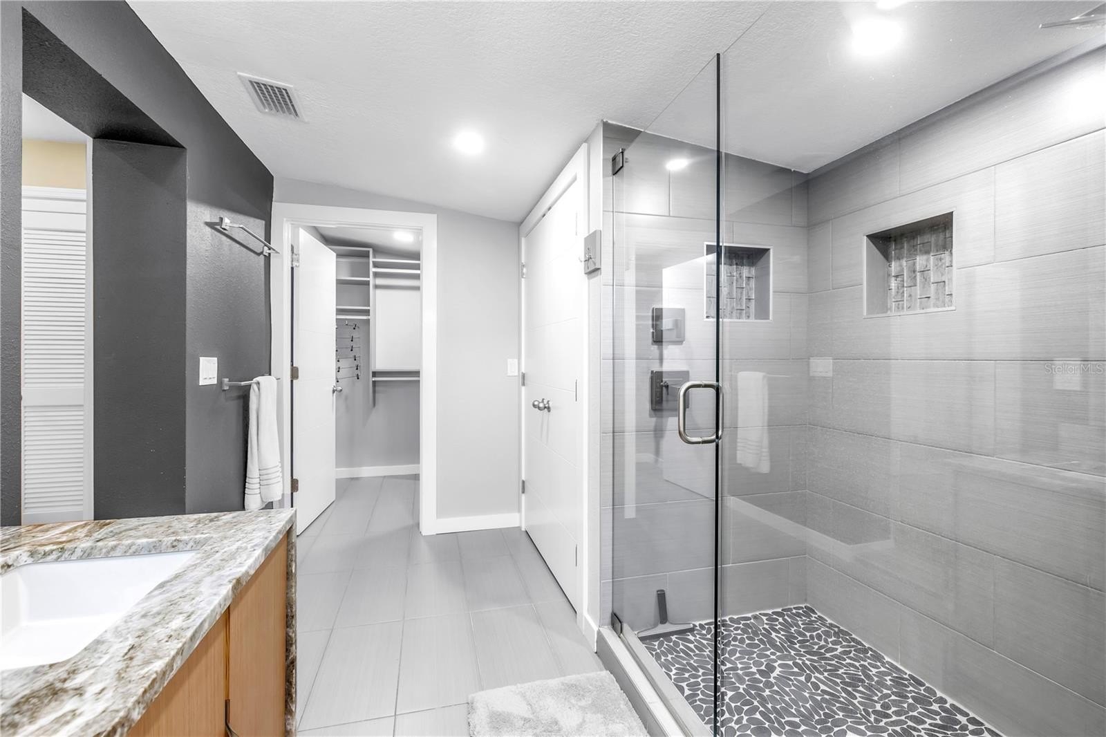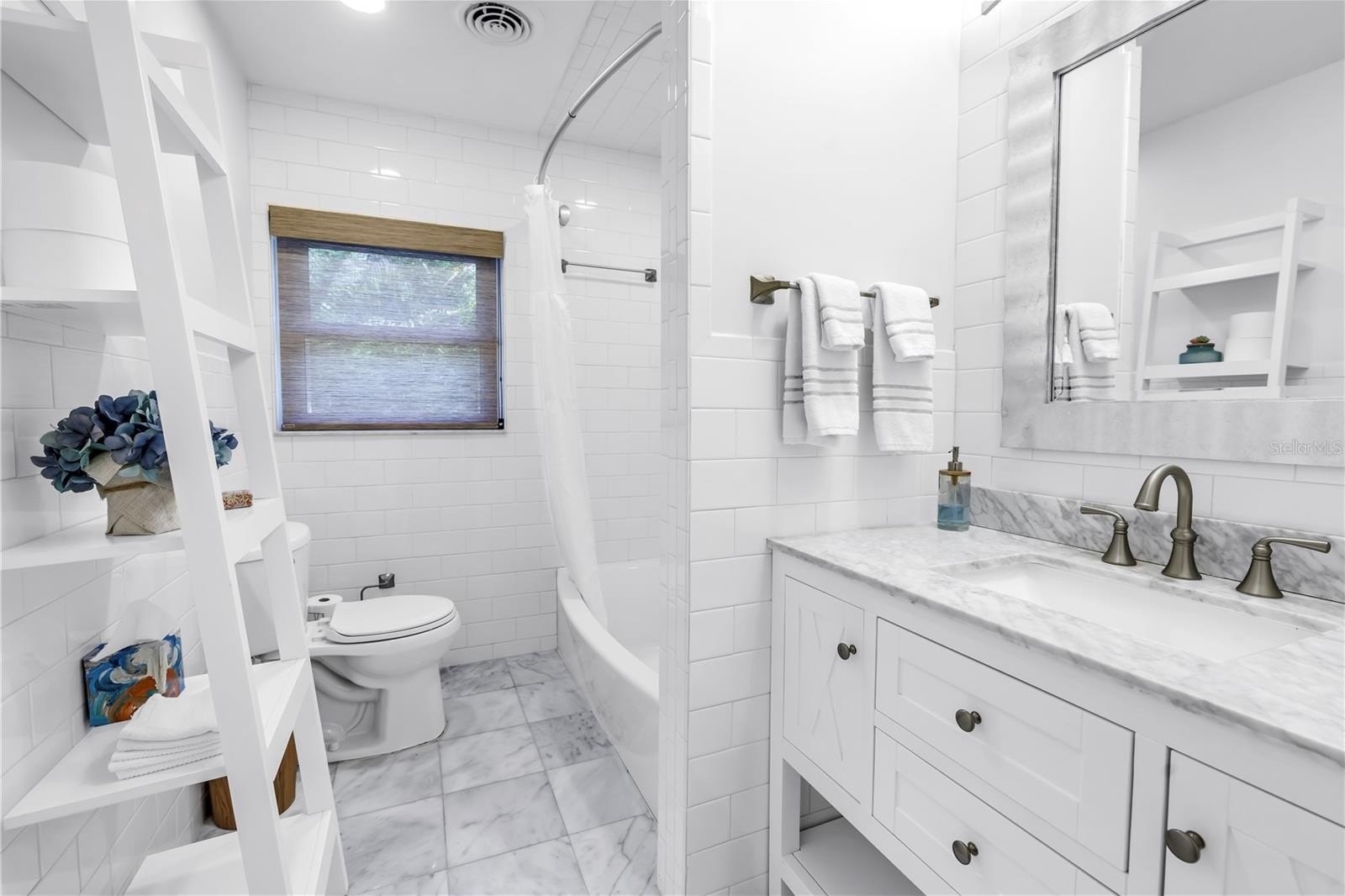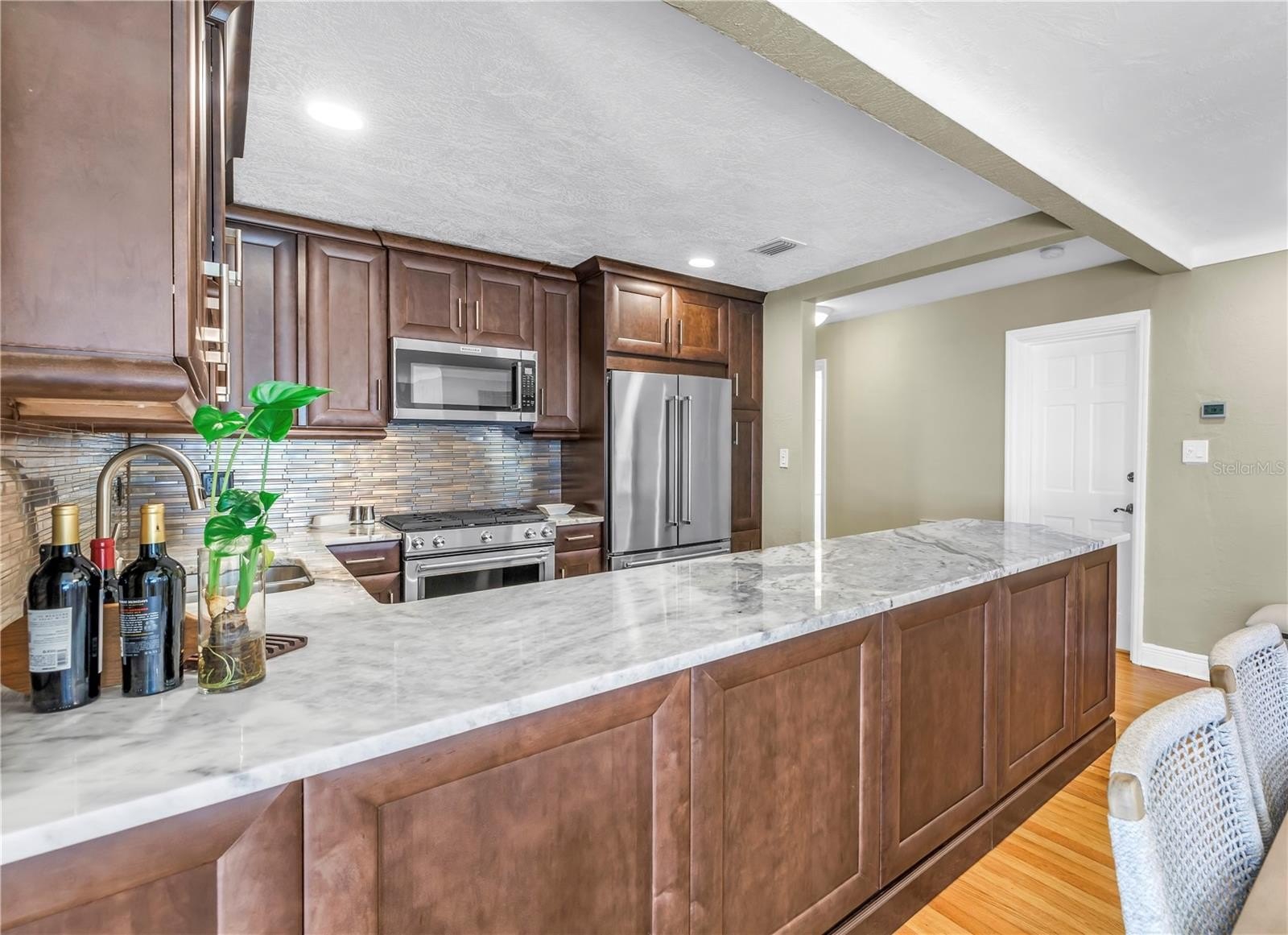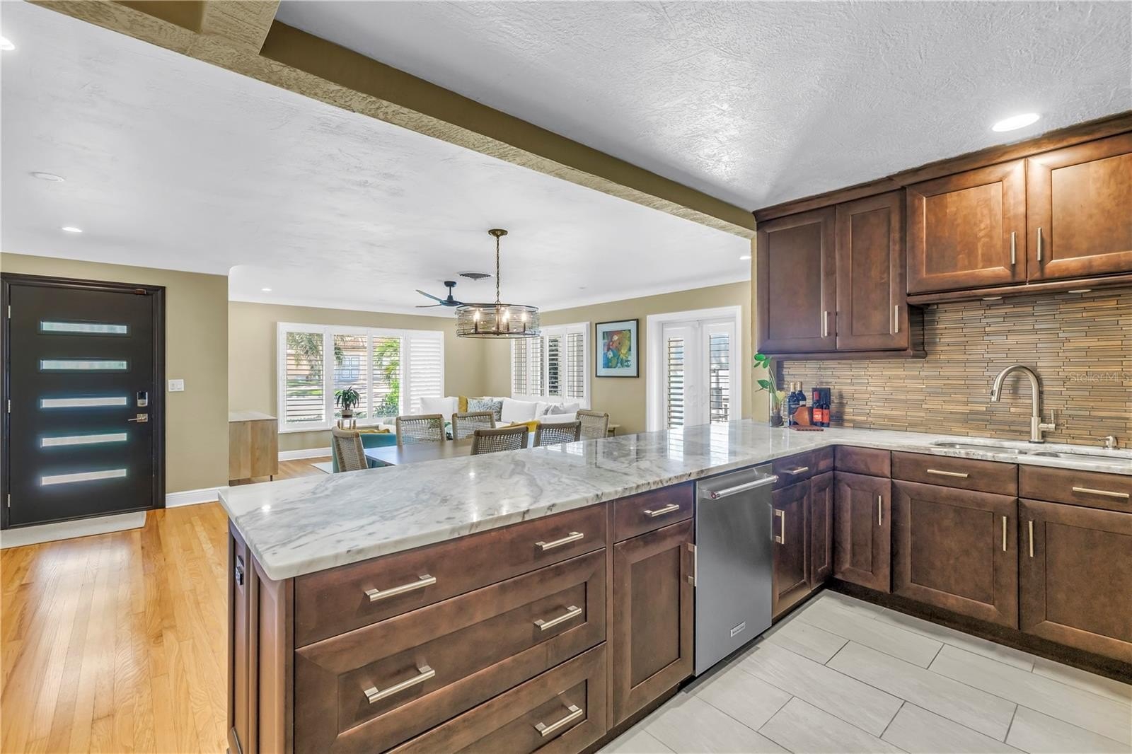 Welcome to this beautifully updated 2-bedroom, 2-bath residence in the heart of highly sought-after Snell Isle, just one block from Coffee Pot Bayou and minutes from vibrant downtown St. Petersburg. Inside, you'll find a light-filled open-concept floor plan with gleaming oak hardwood floors and custom plantation shutters throughout. The spacious living area flows seamlessly into a chef-inspired kitchen fully renovated in 2020, featuring KraftMaid soft-close shaker cabinetry, granite countertops, stainless steel appliances, and recessed lighting, perfect for entertaining or everyday living. Both bedrooms offer generous space and include cedar-lined closets with custom California Closet systems. The primary suite boasts a luxurious en-suite bath with a dual-sink waterfall-edge vanity, an oversized walk-in shower, and an additional custom walk-in closet for ample storage.