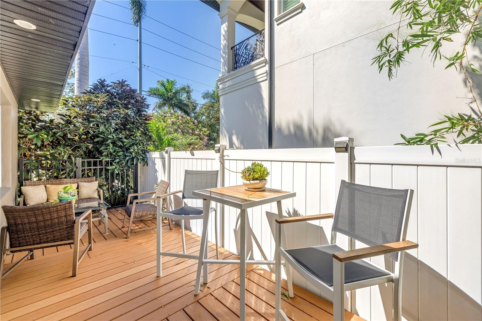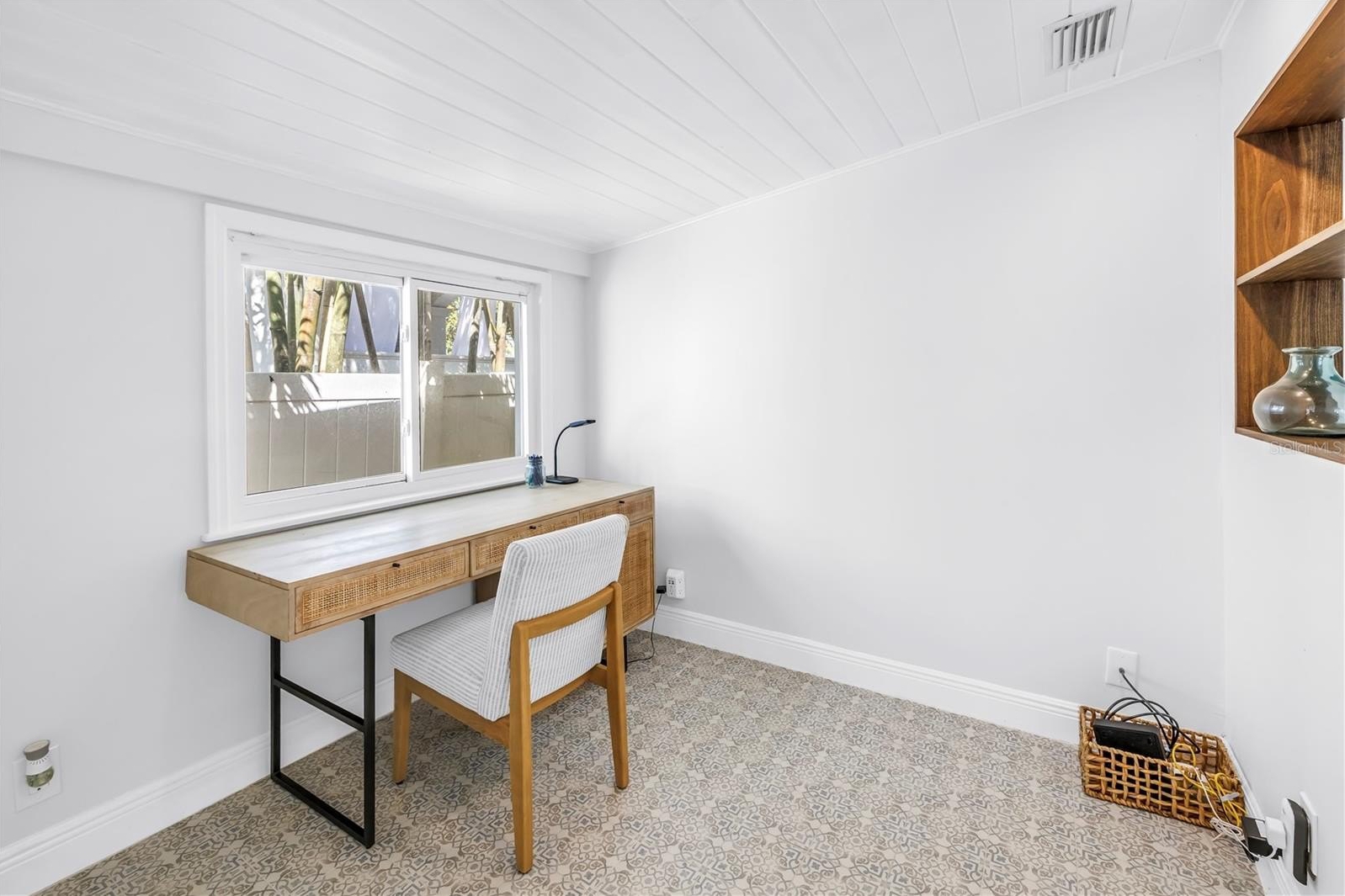 A versatile office nook just off the living room is ideal for remote work or reading. French doors open to a private, shaded side porch, the perfect spot for your morning coffee or evening glass of wine. The fully fenced backyard includes a brick paver patio and space for a small spa, creating a serene outdoor retreat. Additional upgrades include a new roof (2024), tankless water heater (2019), HVAC (2018) and a 240 Volt outlet in garage for an EV.